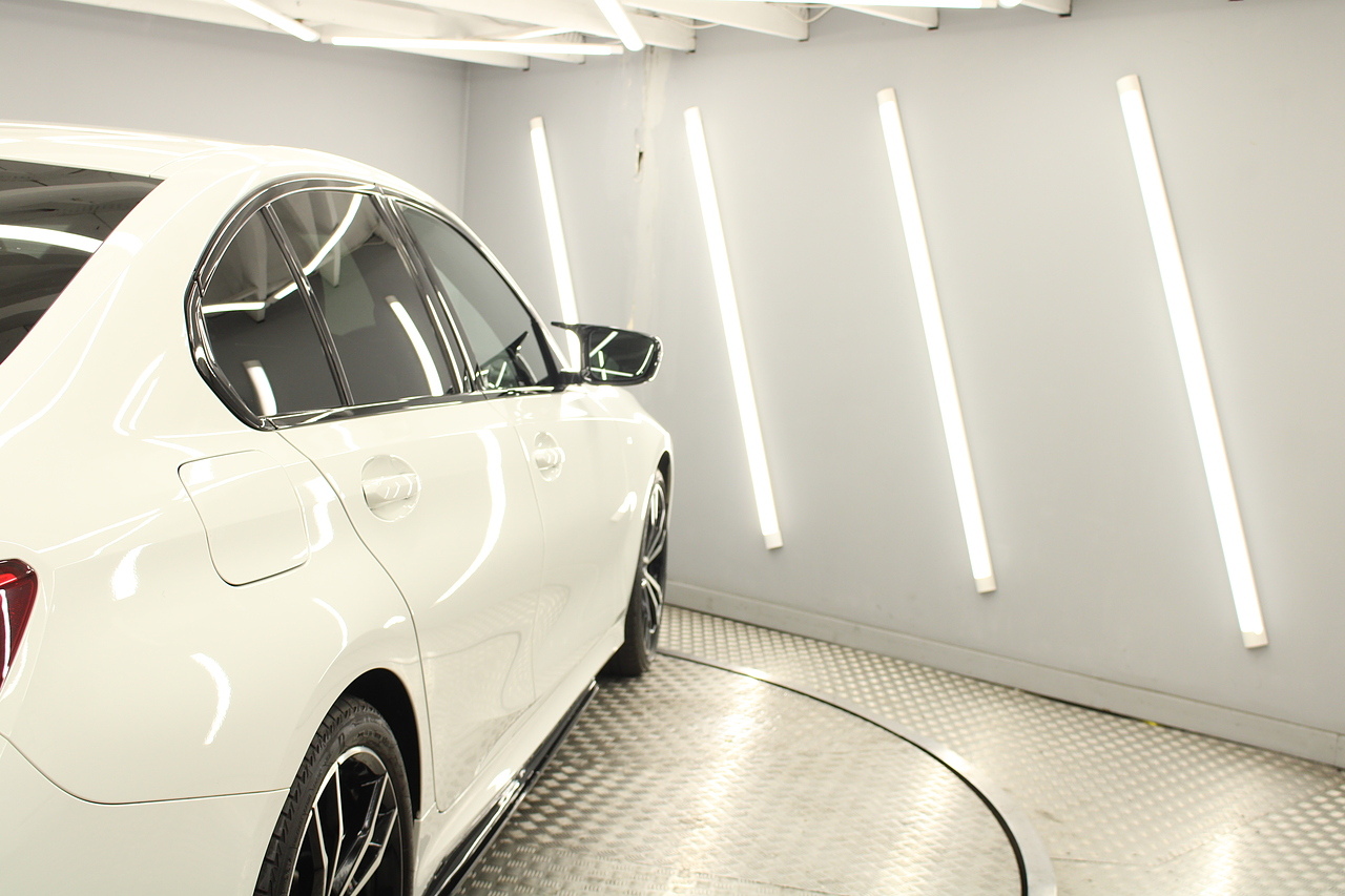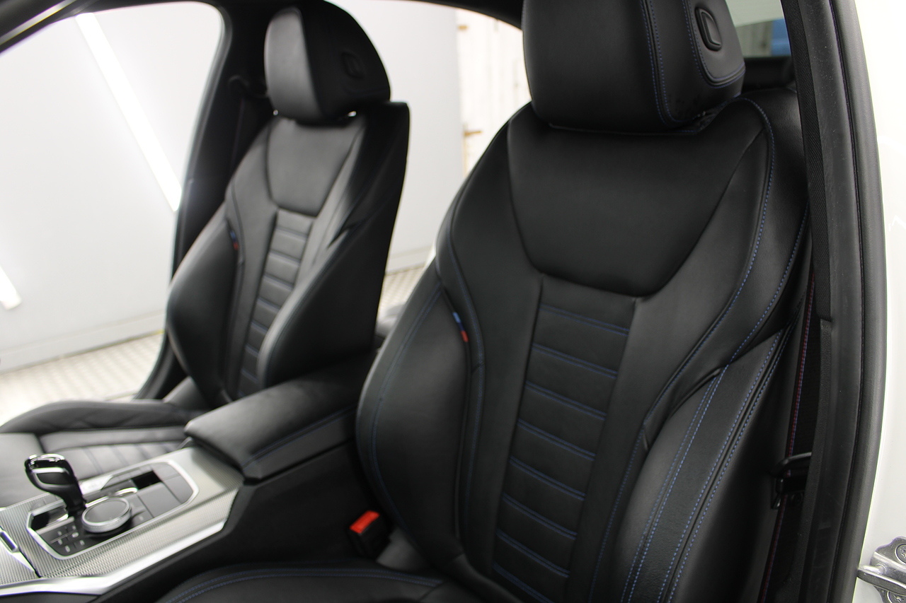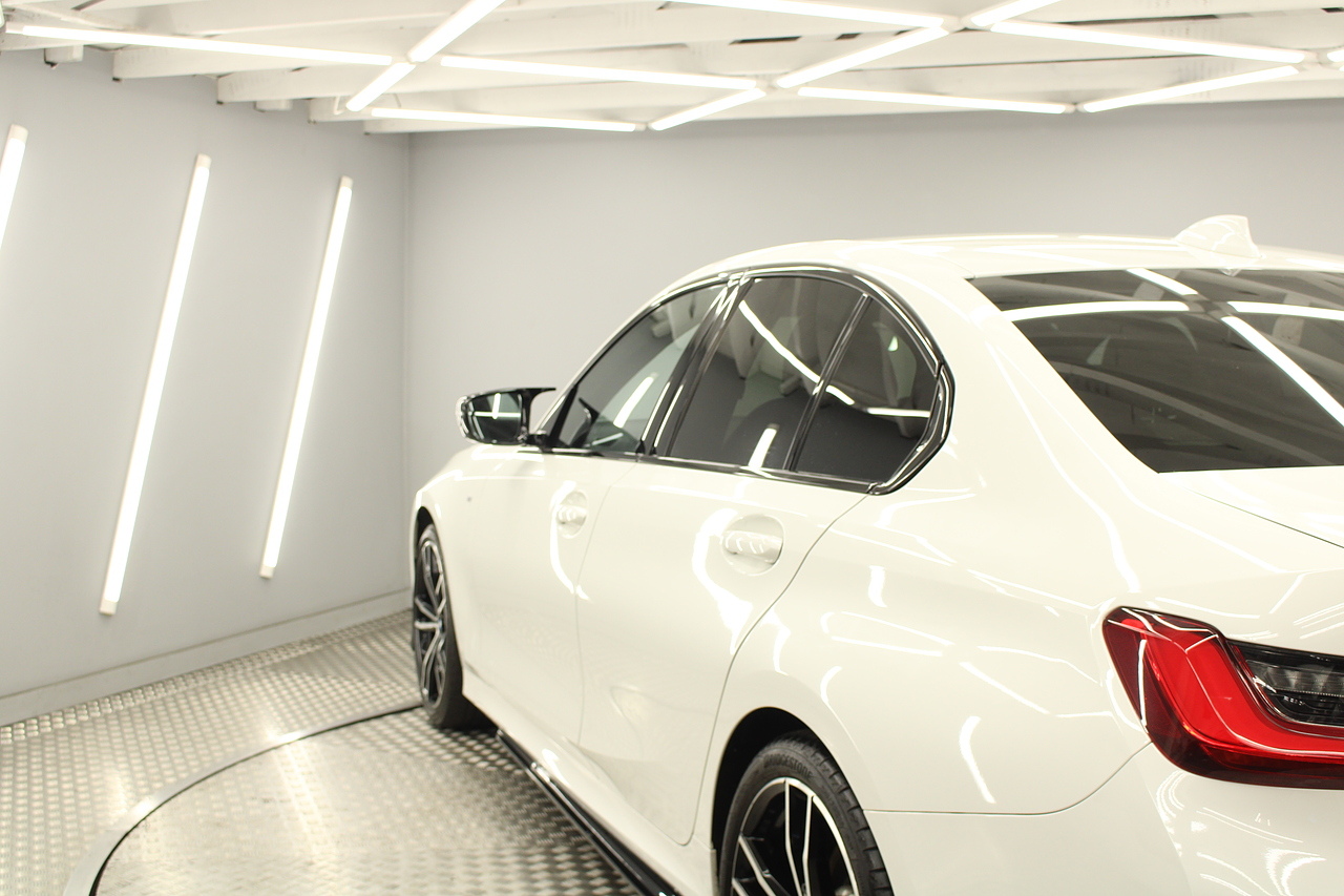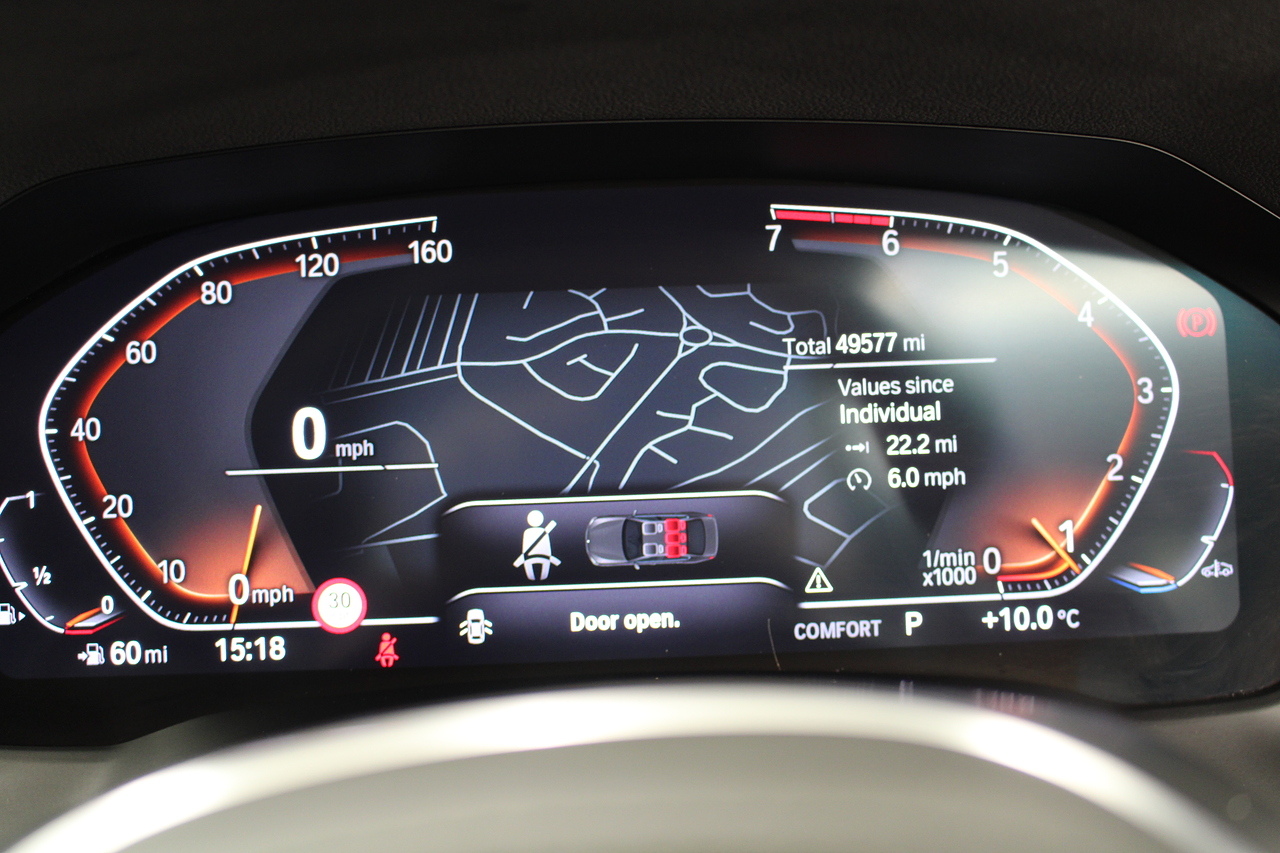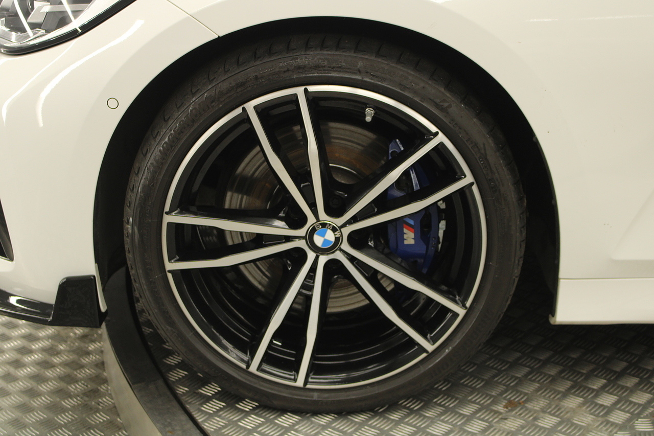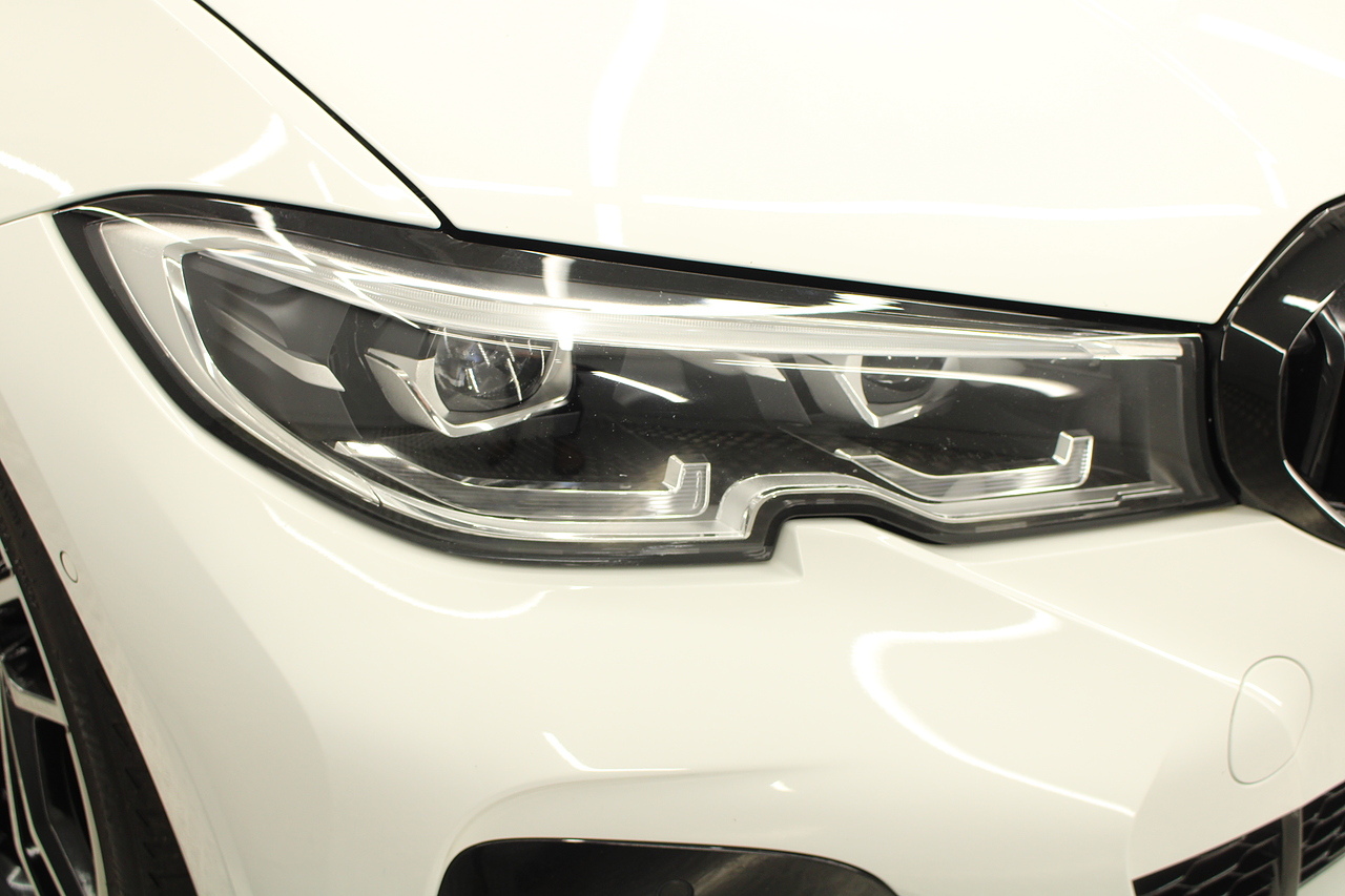 The interior comes trimmed in black vernasca leather, virtual cockpit display, head up display, dual zone climate control, cruise control, parking sensors front and rear with rear facing camera, DAB radio with professional satellite navigation, MP3 functionality, heated and electric door mirrors, steering wheel mounted controls, Bluetooth connectivity, tinted windows and ISOFIX anchorage points. This is the seventh generation of the BMW 3 Series. The German four-door has been dominating the premium saloon and estate market for some time now and this latest version, has all the ingredients to do the same. This car has far more to boast about than ever before. It is more spacious than its predecessor with a bigger boot and load space, the interior feel classier than ever with a driver-focused cabin and high-end materials, while the handling is better too which is no mean feat.