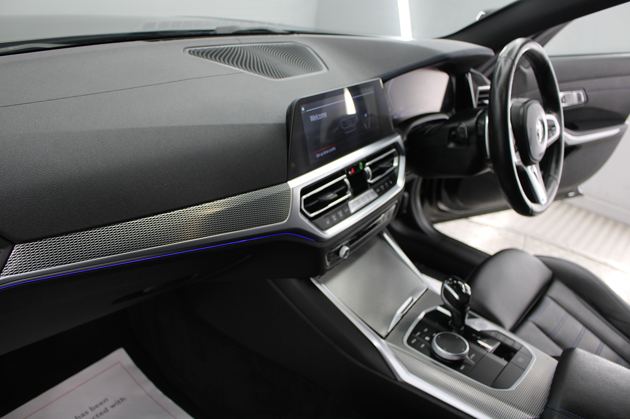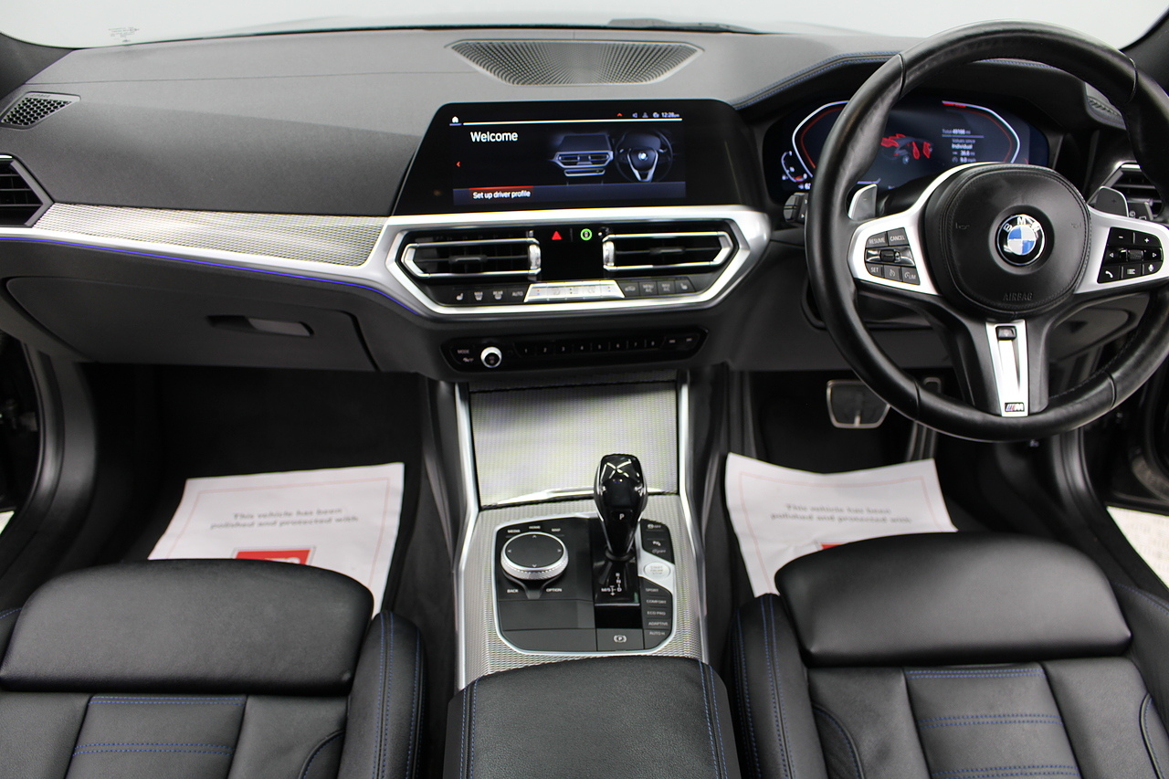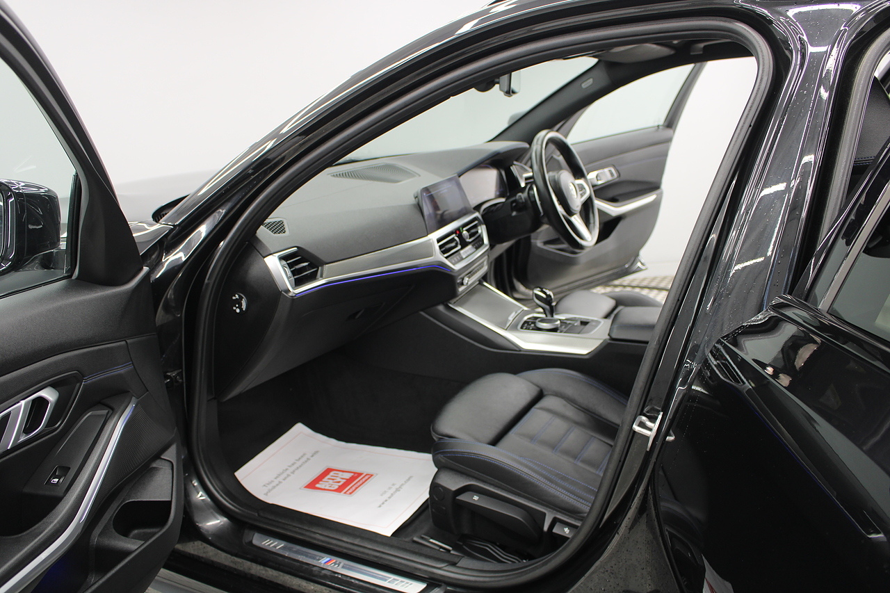 The specifications of this lovely BMW are brilliant, with the sought after M-sport pro package and comfort package. The interior comes trimmed in black vernasca leather, virtual cockpit display, dual zone climate control, cruise control, parking sensors front and rear with rear facing camera, DAB radio with professional satellite navigation, MP3 functionality, heated and electric door mirrors, steering wheel mounted controls, Bluetooth connectivity, tinted windows and ISOFIX anchorage points. This is the seventh generation of the BMW 3 Series. The German four-door has been dominating the premium saloon and estate market for some time now and this latest version, has all the ingredients to do the same. This car has far more to boast about than ever before. It is more spacious than its predecessor with a bigger boot and load space, the interior feel classier than ever with a driver-focused cabin and high-end materials, while the handling is better too which is no mean feat.