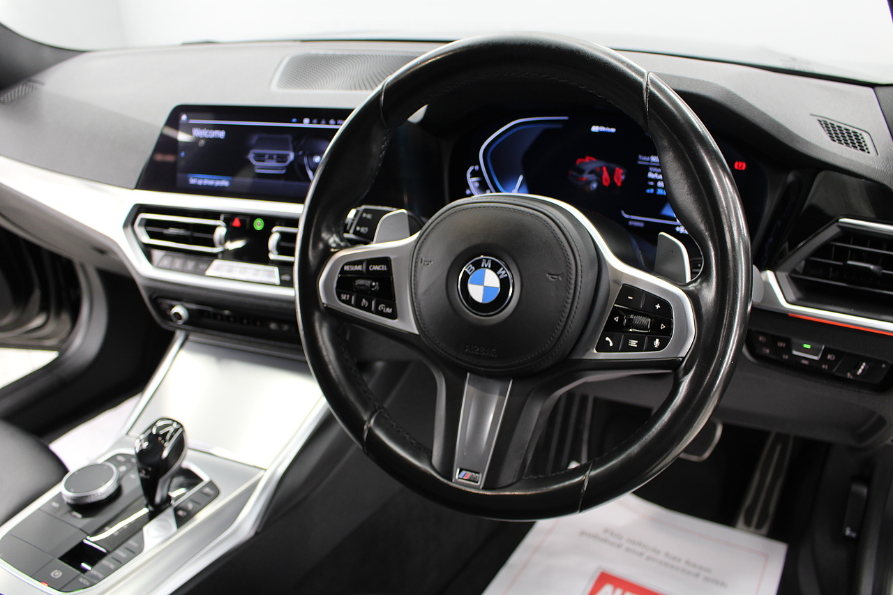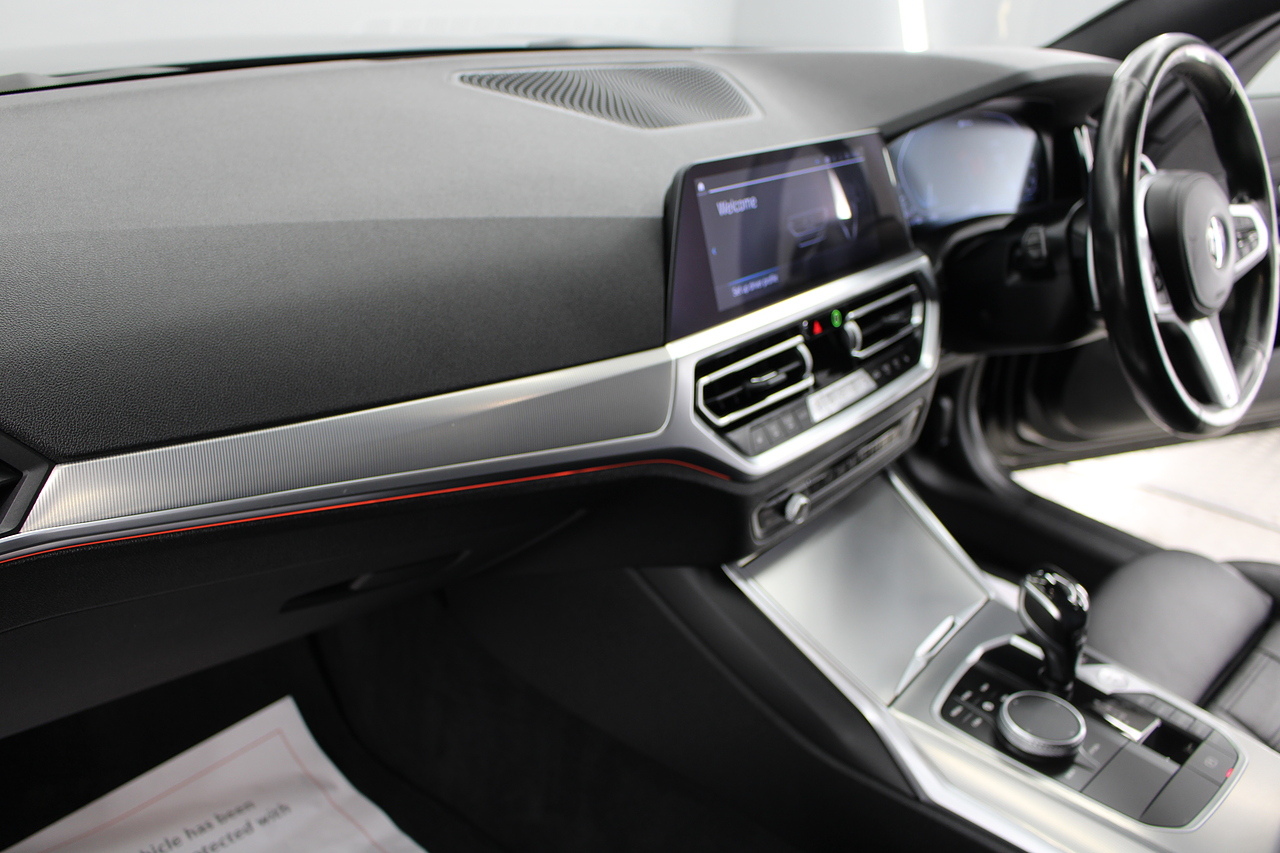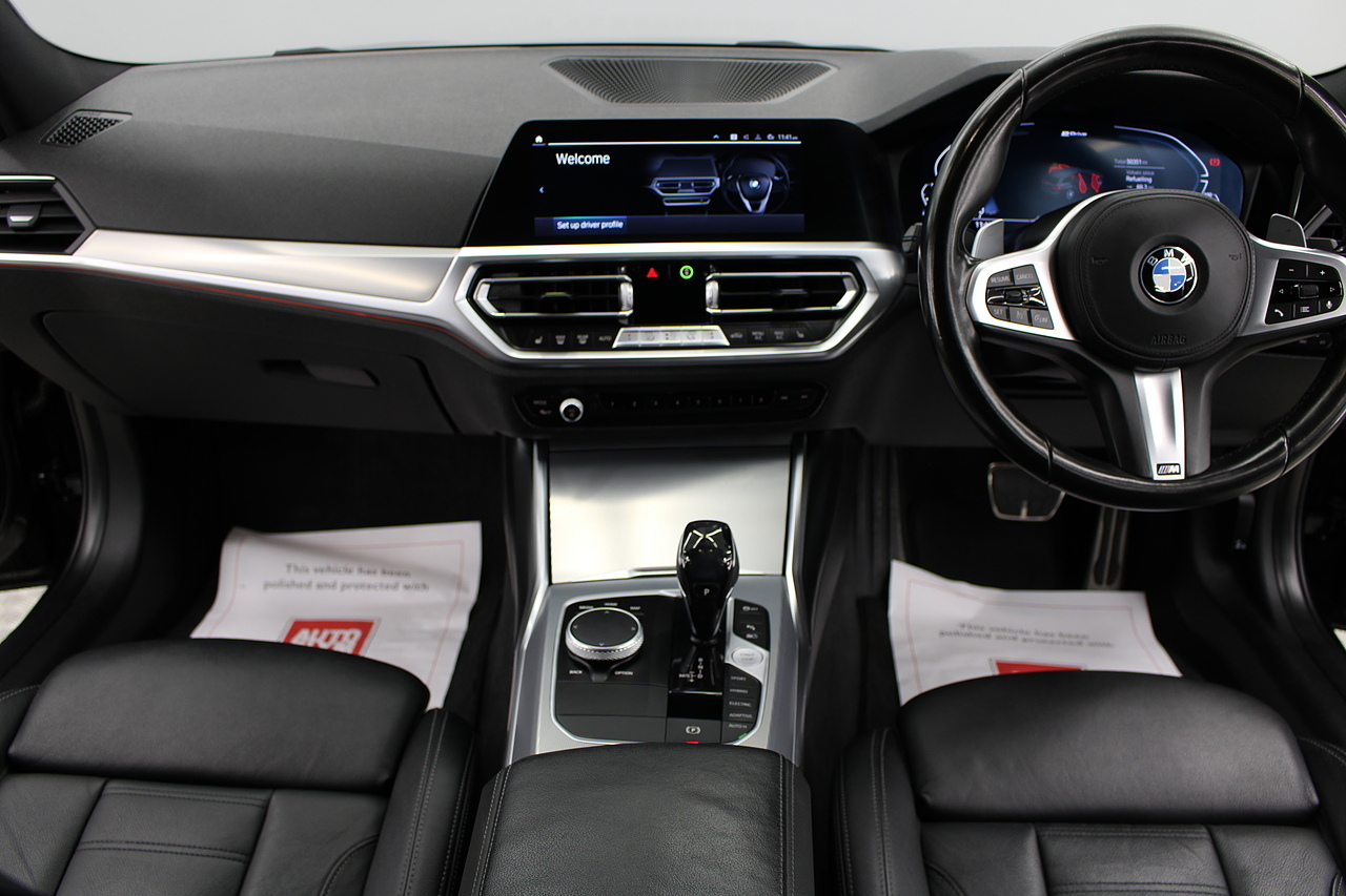 The specifications of this lovely BMW are, black vernasca leather, virtual cockpit display, dual zone climate control, cruise control, parking sensors front and rear with rear facing camera, DAB radio with professional satellite navigation, heated and electric door mirrors, steering wheel mounted controls, Bluetooth connectivity, tinted windows and ISOFIX anchorage points. This is the seventh generation of the BMW 3 Series. The German four-door has been dominating the premium saloon and estate market for some time now and this latest version, has all the ingredients to do the same. This car has far more to boast about than ever before. It is more spacious than its predecessor with a bigger boot and load space, the interior feel classier than ever with a driver-focused cabin and high-end materials, while the handling is better too which is no mean feat.