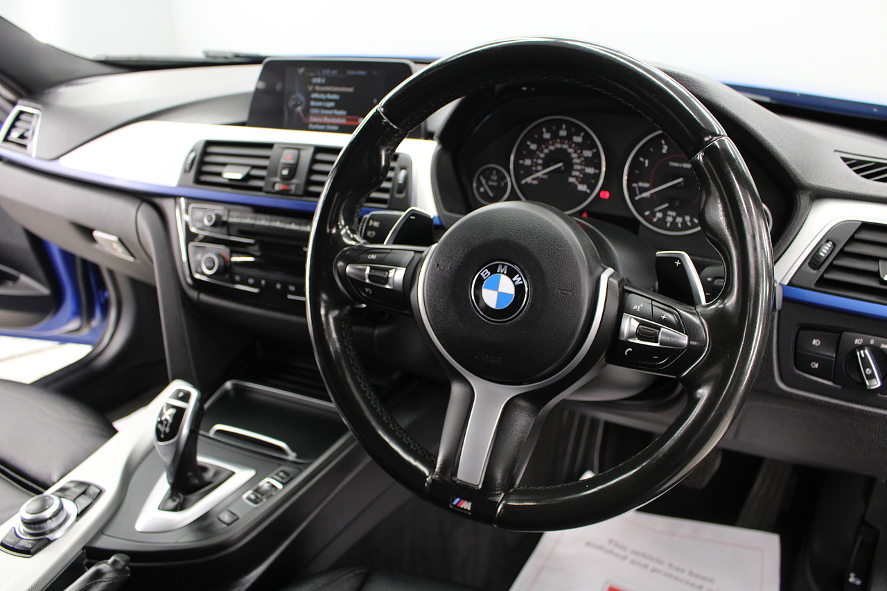 The interior is trimmed in black dakota leather interior, DAB radio with professional satellite navigation, MP3 functionality, heated and electric door mirrors, steering wheel mounted controls, Bluetooth connectivity, cruise control, parking sensors with rear camera, tinted windows and ISOFIX anchorage points. This is the sixth generation of the BMW 3 Series. The German four-door has been dominating the premium saloon and estate market for some time now and this latest version, has all the ingredients to do the same. This car has far more to boast about than ever before. It is more spacious than its predecessor with a bigger boot and load space, the interior feel classier than ever with a driver-focused cabin and high-end materials, while the handling is better too which is no mean feat.