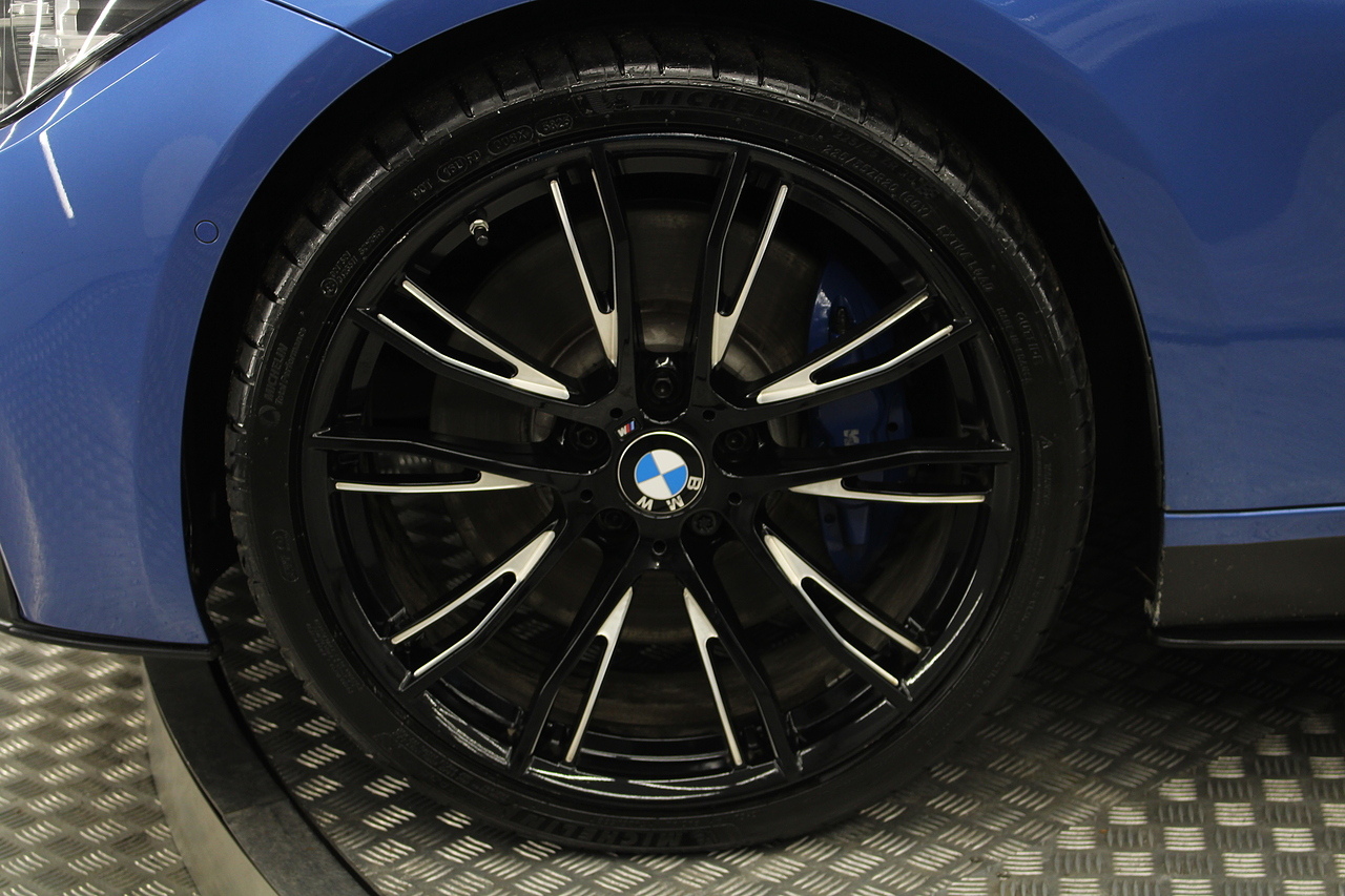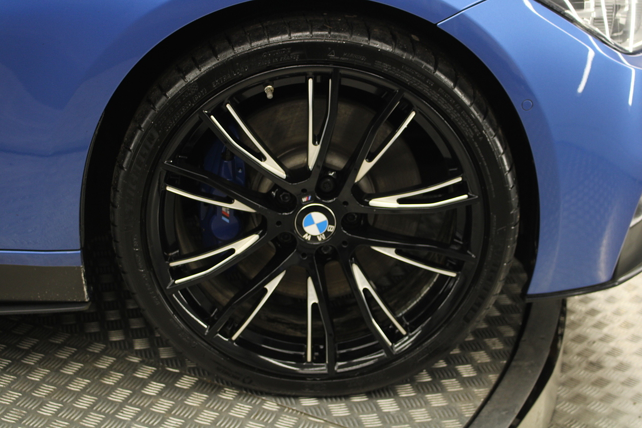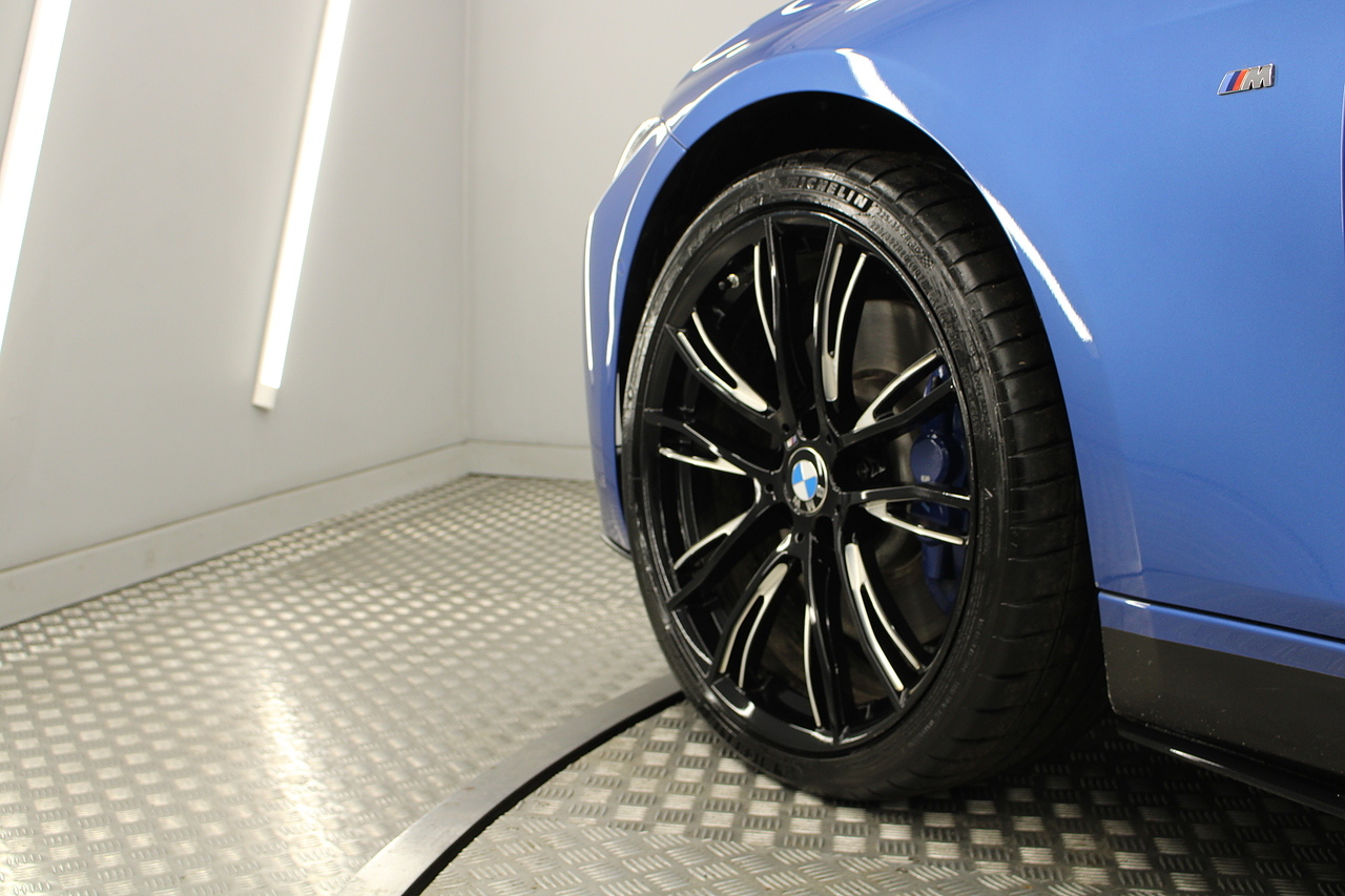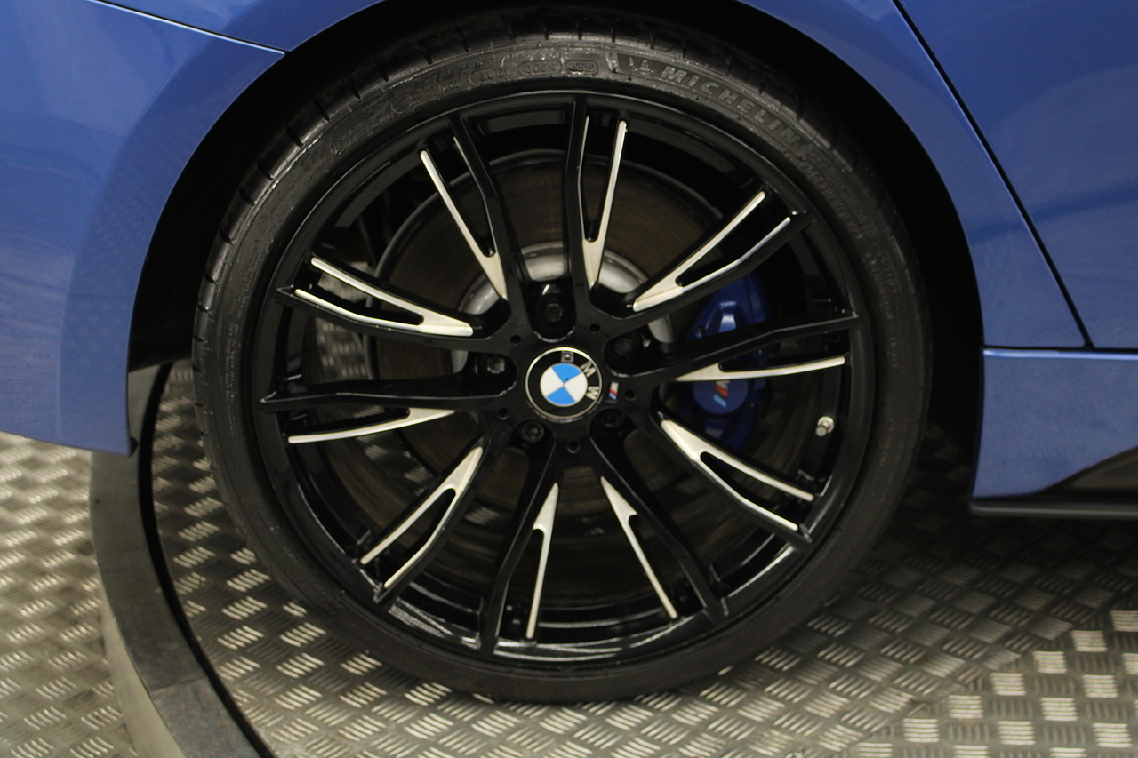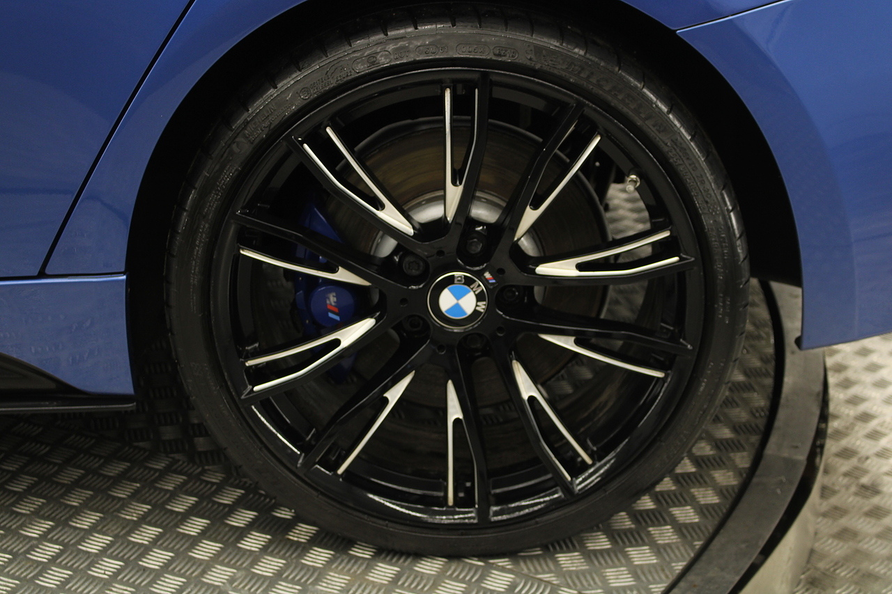 Starting with the exterior which is finished in the beautiful estoril blue with M-sport styling, all finished off with the black and diamond cut 20'' wheels with the m-sport braking system behind and sun protection privacy glass.
