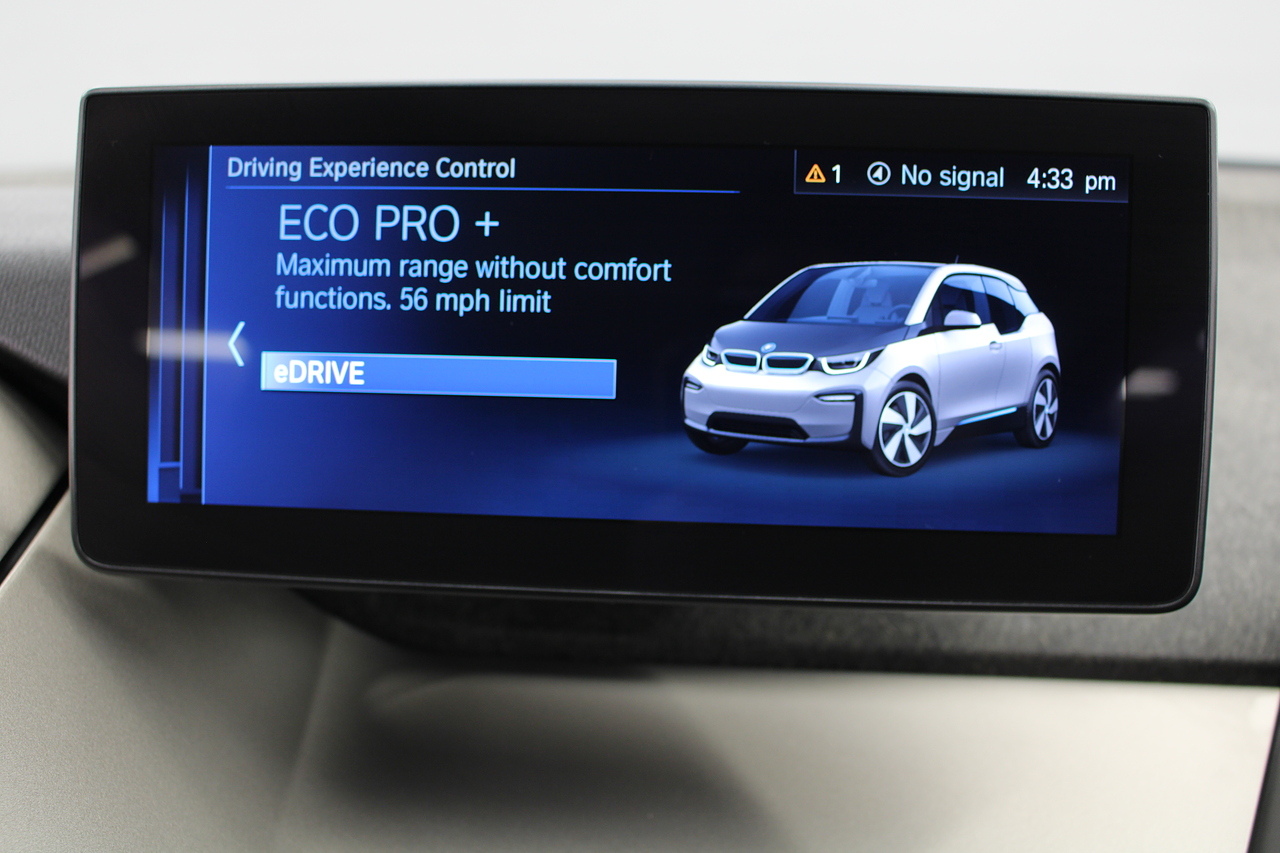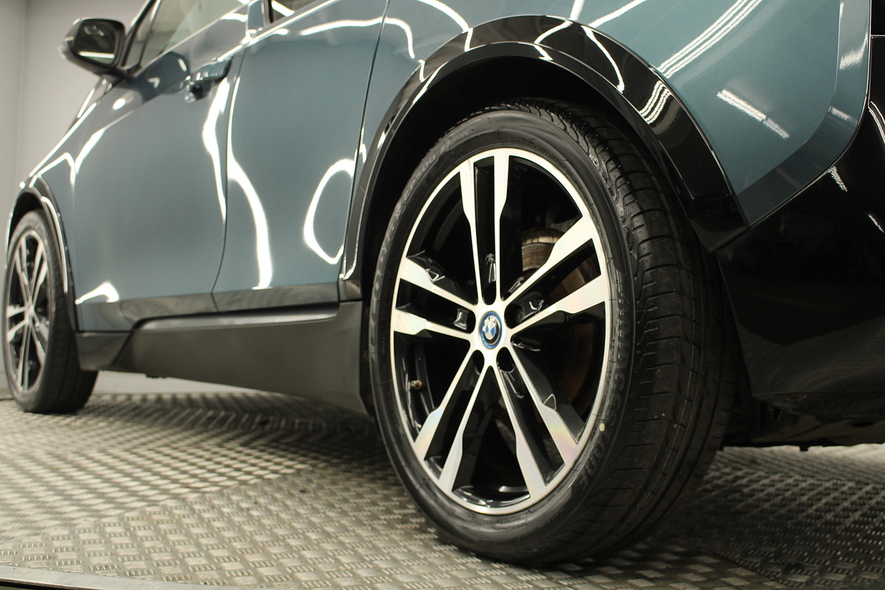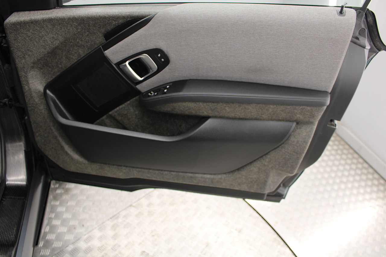 To the interior finished in grey cloth with heated front seats, a large touch screen display and control unit incorporating satellite navigation, DAB radio, bluetooth telephone, climate control and with handy driver aids such as adjustable driving nodes, front and rear parking sensors, cruise control, isofix child seat anchor points. In summary the i3 is a very modern looking practical electric car with cutting edge looks and packed full of up to date technology.