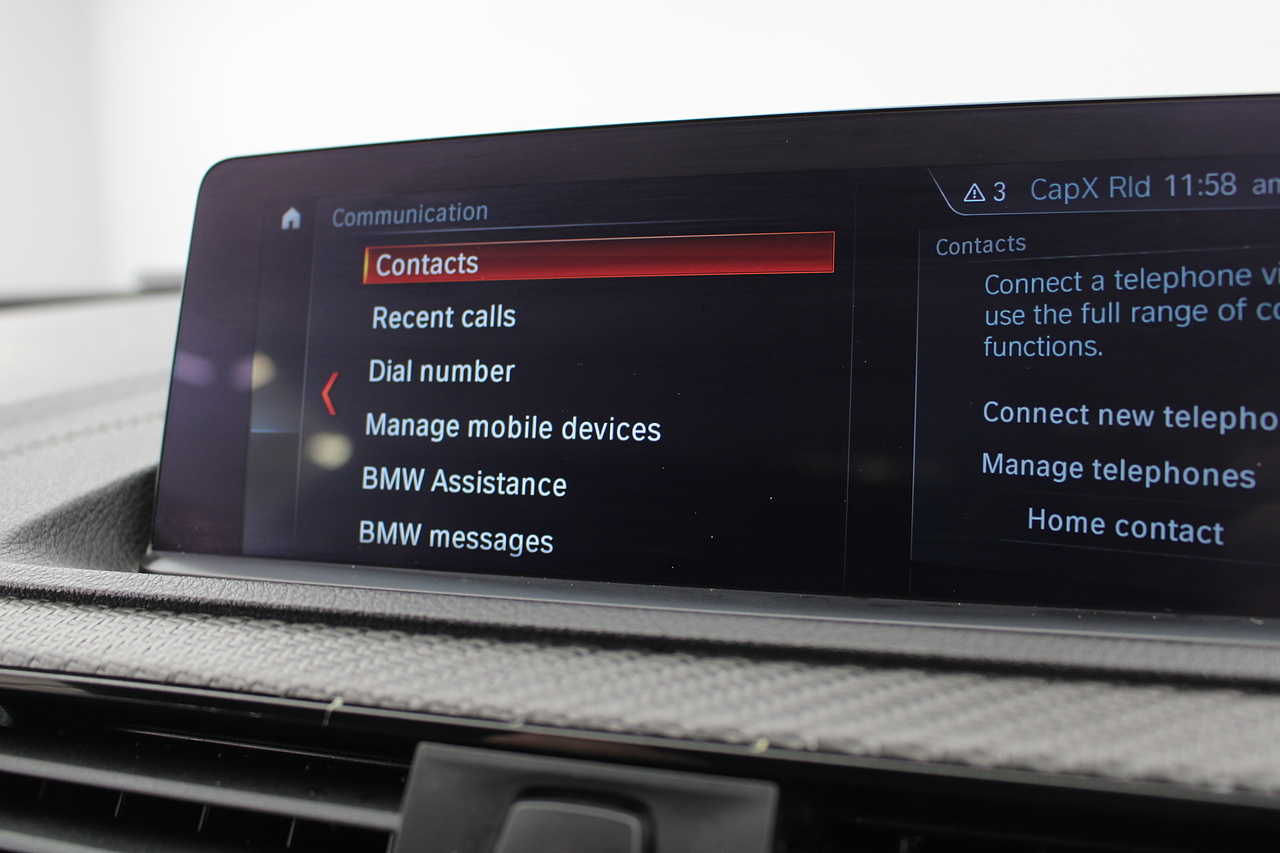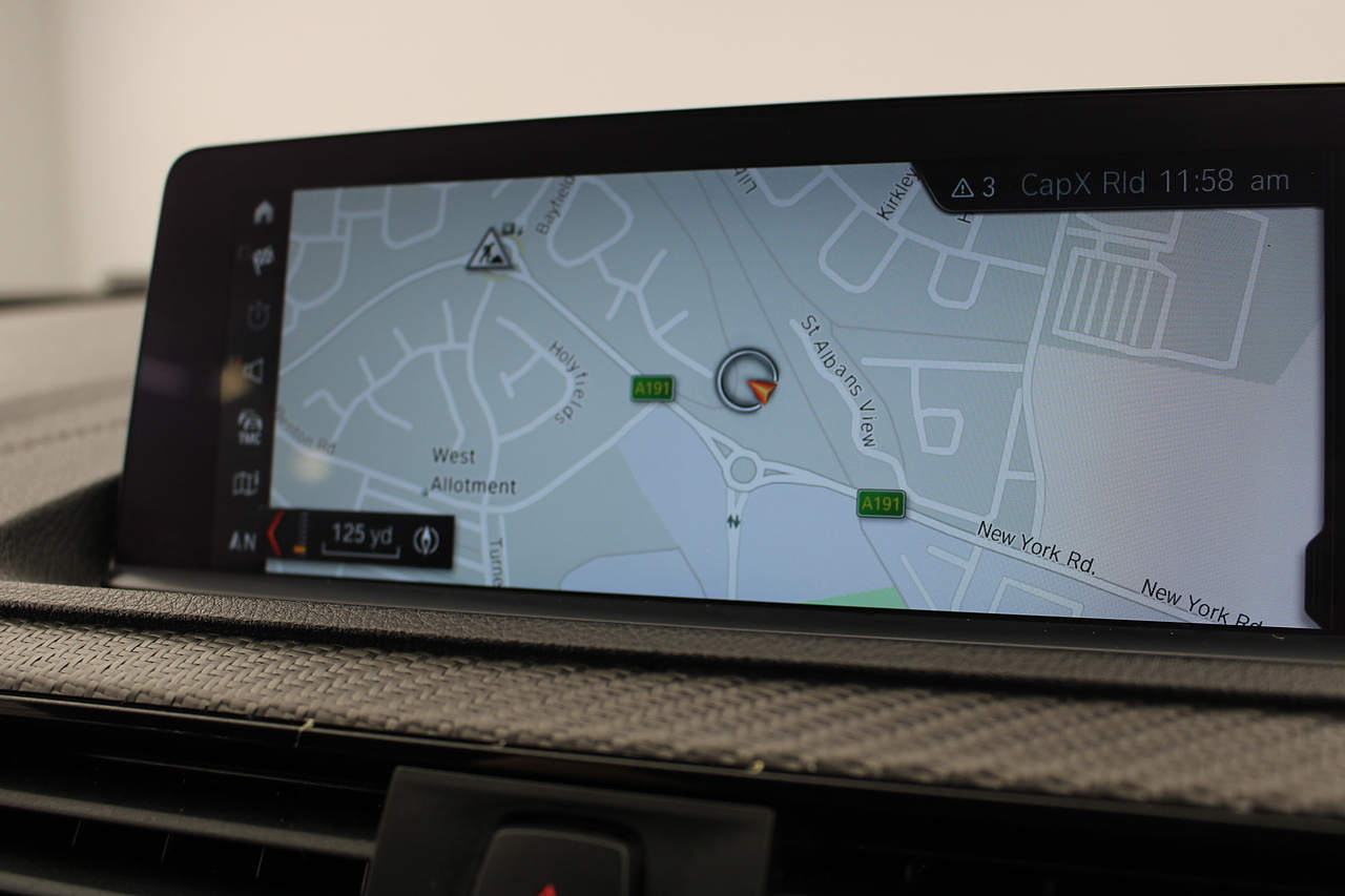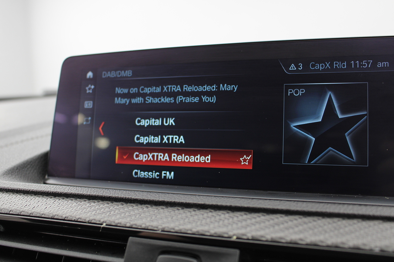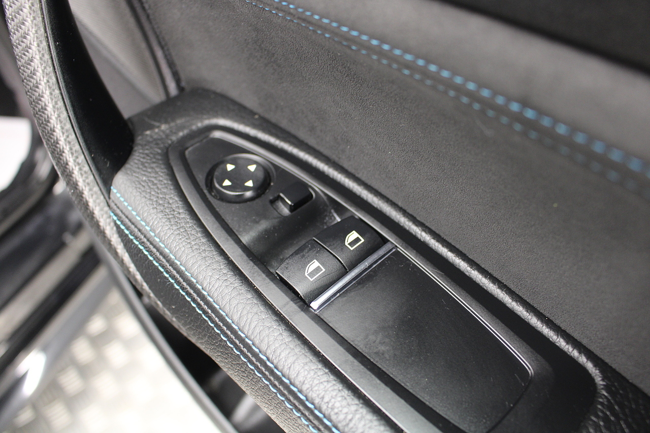 The interior is trimmed in black Dakota leather with blue highlights, blue stitching and perforations, there is also the competition badged steering wheel again with blue and red stitching with carbon fibre trims around the cockpit. The centre of the dashboard houses a large display unit with satellite navigation, dab radio, bluetooth.