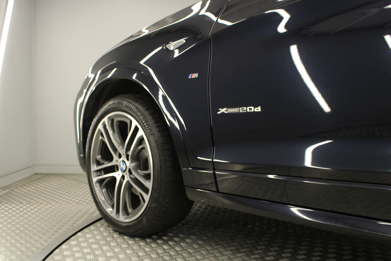 This BMW is finished in carbon black with the 20'' M-Sport wheels, Sporty M-sport styling and dark tinted rear windows both looking good yet also keeping the interior nice and cool Our X3 is a real head turner.