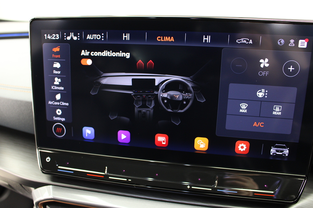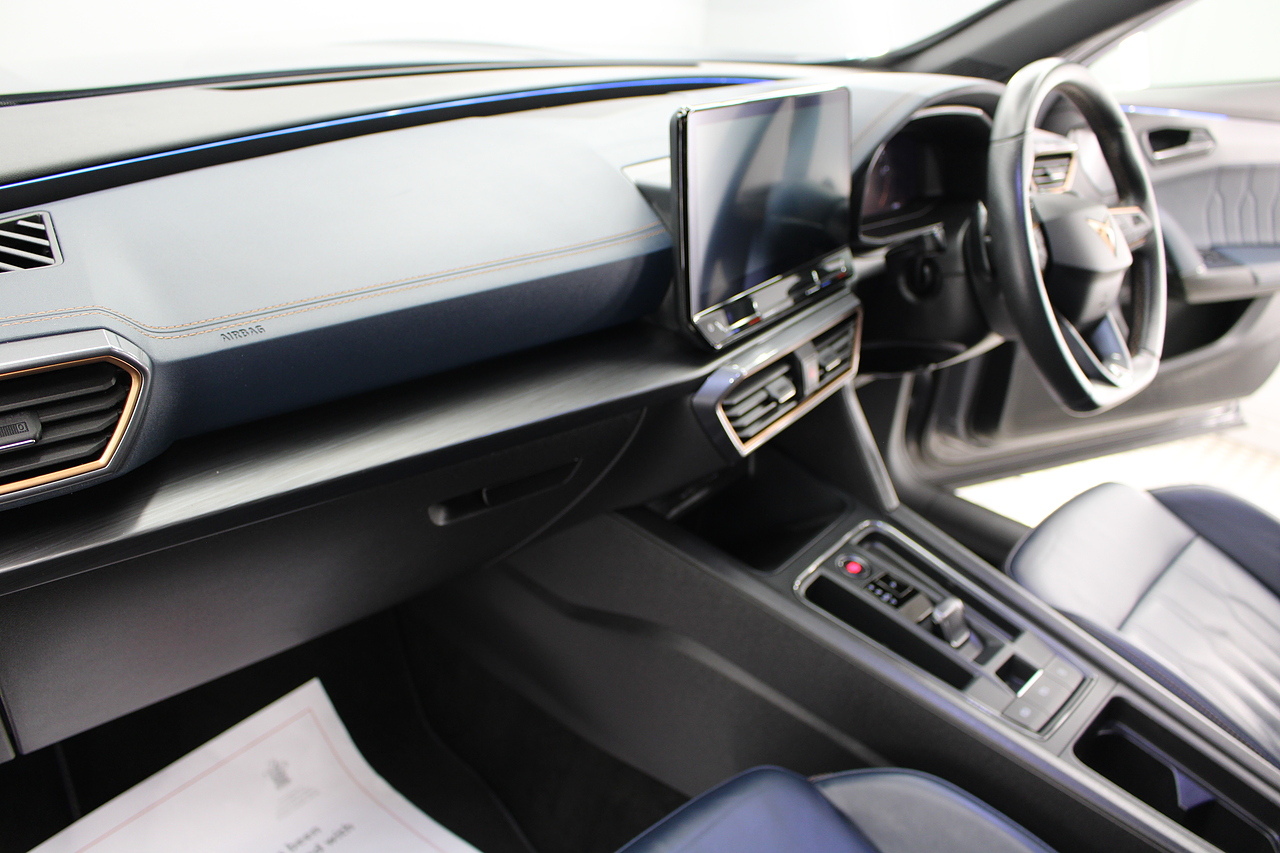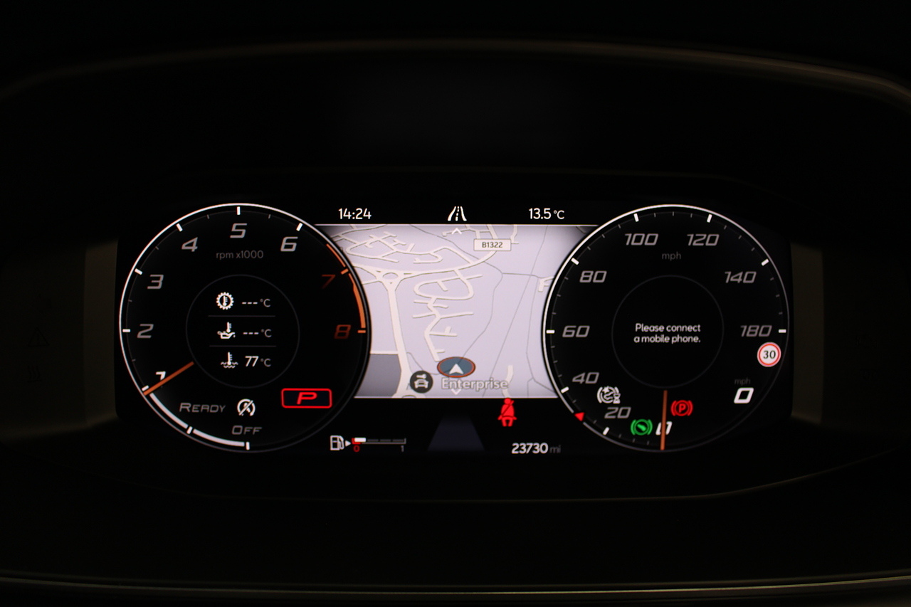 The specifications of this particular example include, supra sports seats trimmed in petrol blue nappa leather with copper stitching, heated front seat option, large touch screen display with satellite navigation, DAB radio, bluetooth connectivity and apple car play, front and rear park sensors, the switchable virtual cockpit display, parking cameras with rear and 360 degree views, dual zone air conditioning and Bluetooth telephone connectivity. This is Seat's offering for a small SUV rivalling the BMW X2, Audi’s Q3 and VW’s T-Roc, non however are as exciting as the the Cupra.