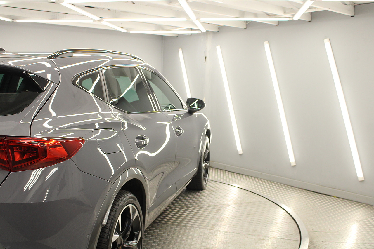 Finished in the gorgeous graphene grey with sporty Cupra styling, privacy glass and beautiful 19'' matte black and diamond cut wheels, this is a great looking sporty SUV.