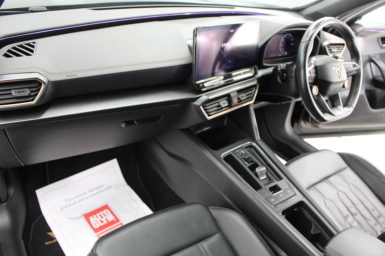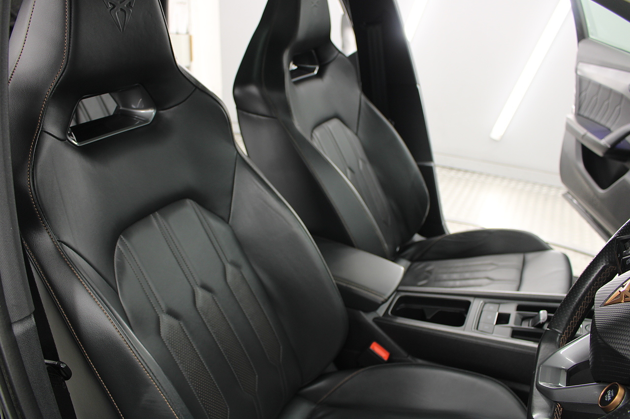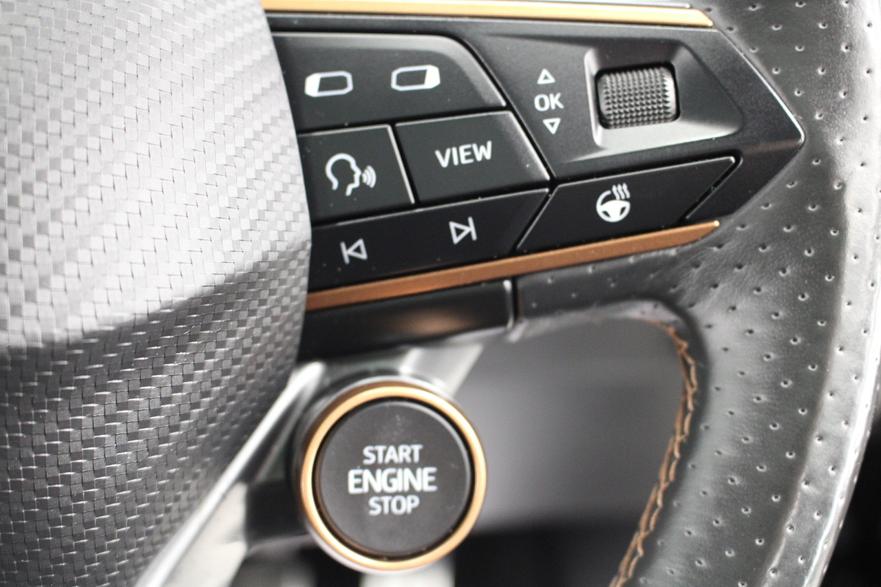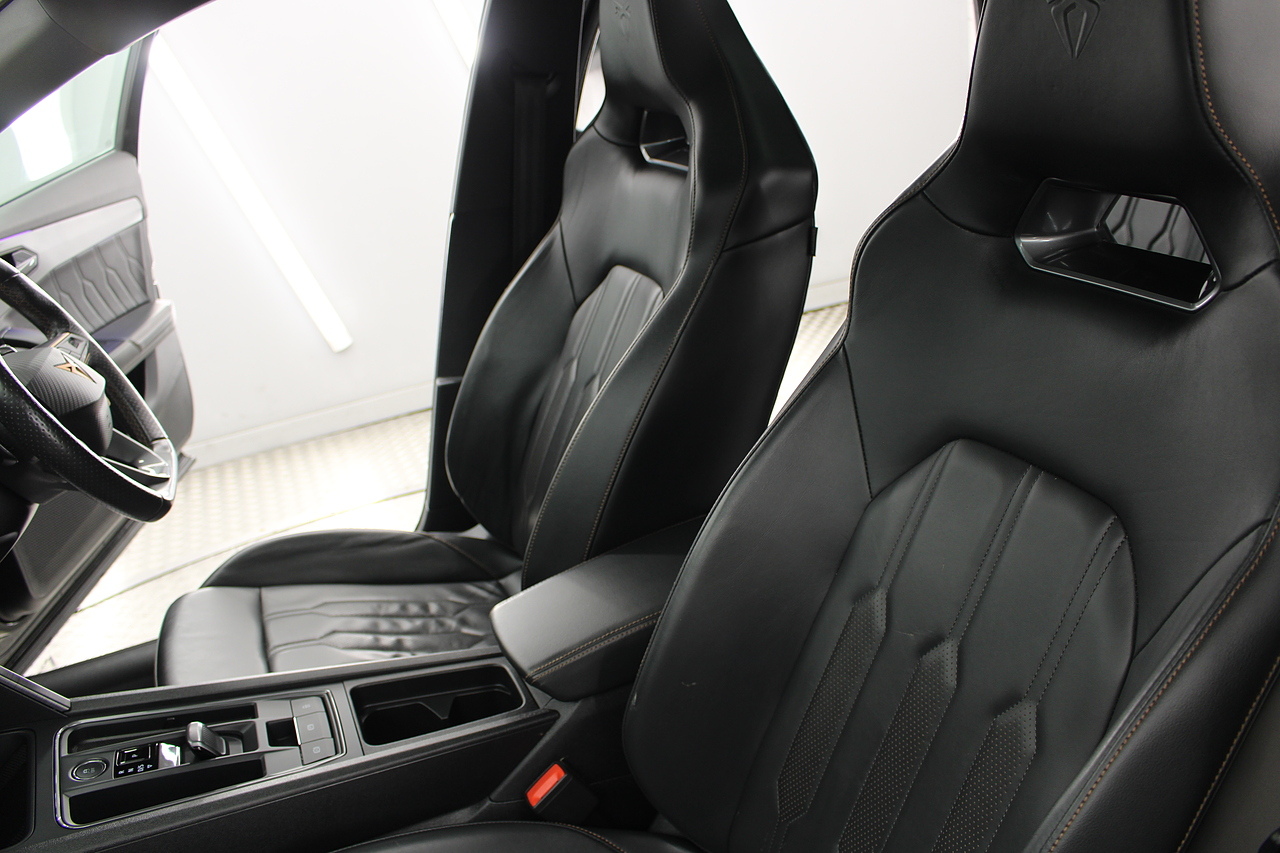 The interior comes with sports Cupra seats trimmed in black leather interior with the seats being power adjustable with memory settings and heated. In addition to full colour screen and premium sound system, DAB Radio, Satellite navigation, Bluetooth, apple car play and android auto, heated steering wheel, virtual cockpit display, handy driver aids such as rear parking camera and adaptive cruise control. And with premium and modern extras such as air conditioning and climate control, DAB radio with MP3 functionality, steering wheel mounted controls, giving it a modern look and feel inside the cabin.