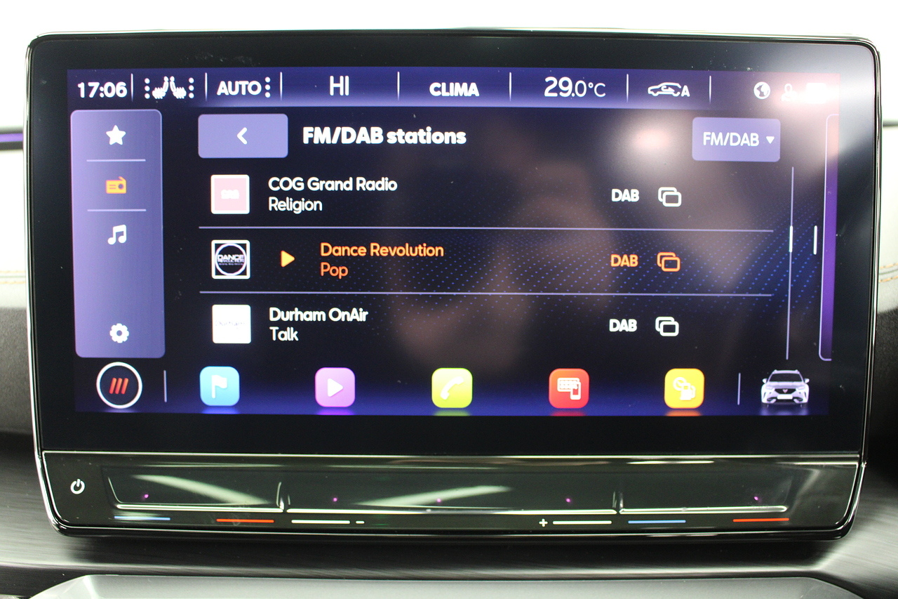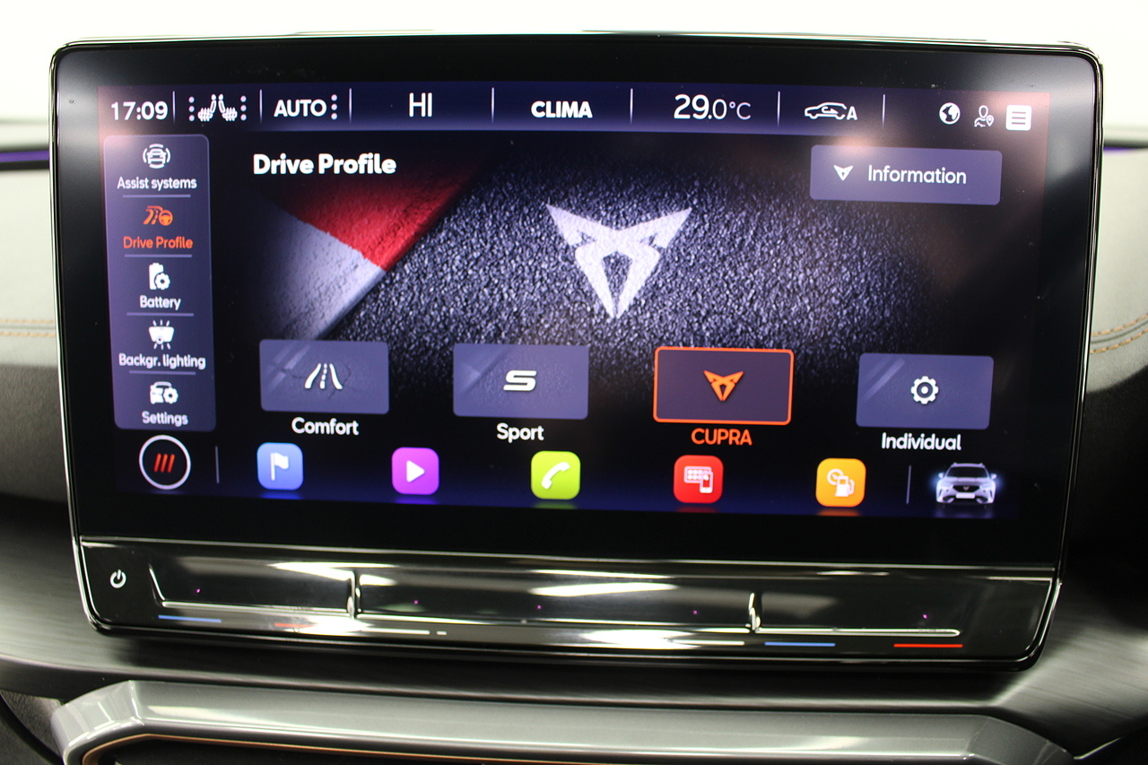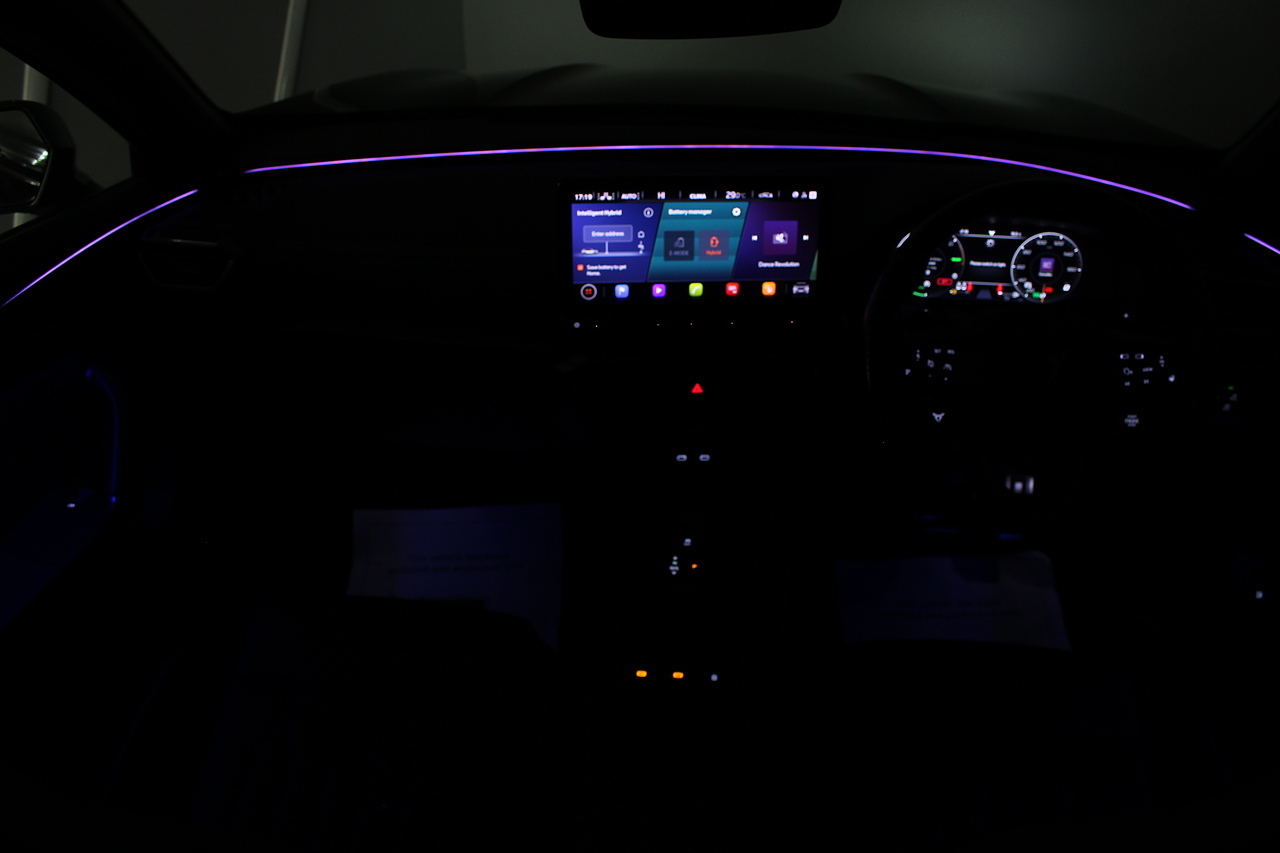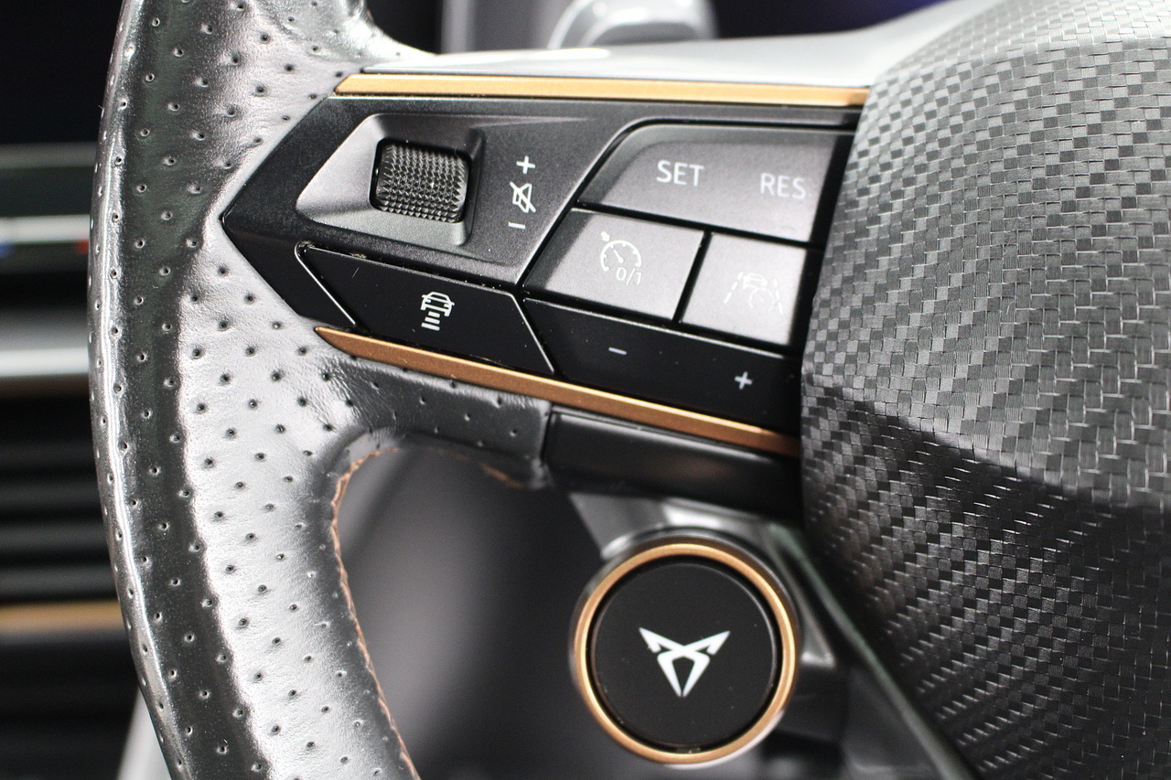 The interior comes with sports Cupra seats trimmed in black leather interior with the seats being power adjustable with memory settings and heated. In addition to full colour screen and premium sound system, DAB Radio, Satellite navigation, Bluetooth, apple car play and android auto, heated steering wheel, virtual cockpit display, handy driver aids such as rear parking camera and adaptive cruise control. And with premium and modern extras such as air conditioning and climate control, DAB radio with MP3 functionality, steering wheel mounted controls, giving it a modern look and feel inside the cabin.