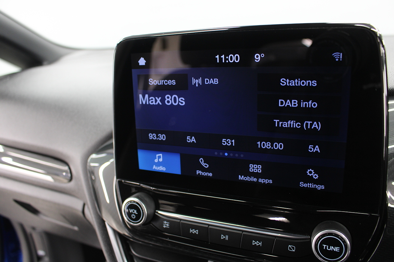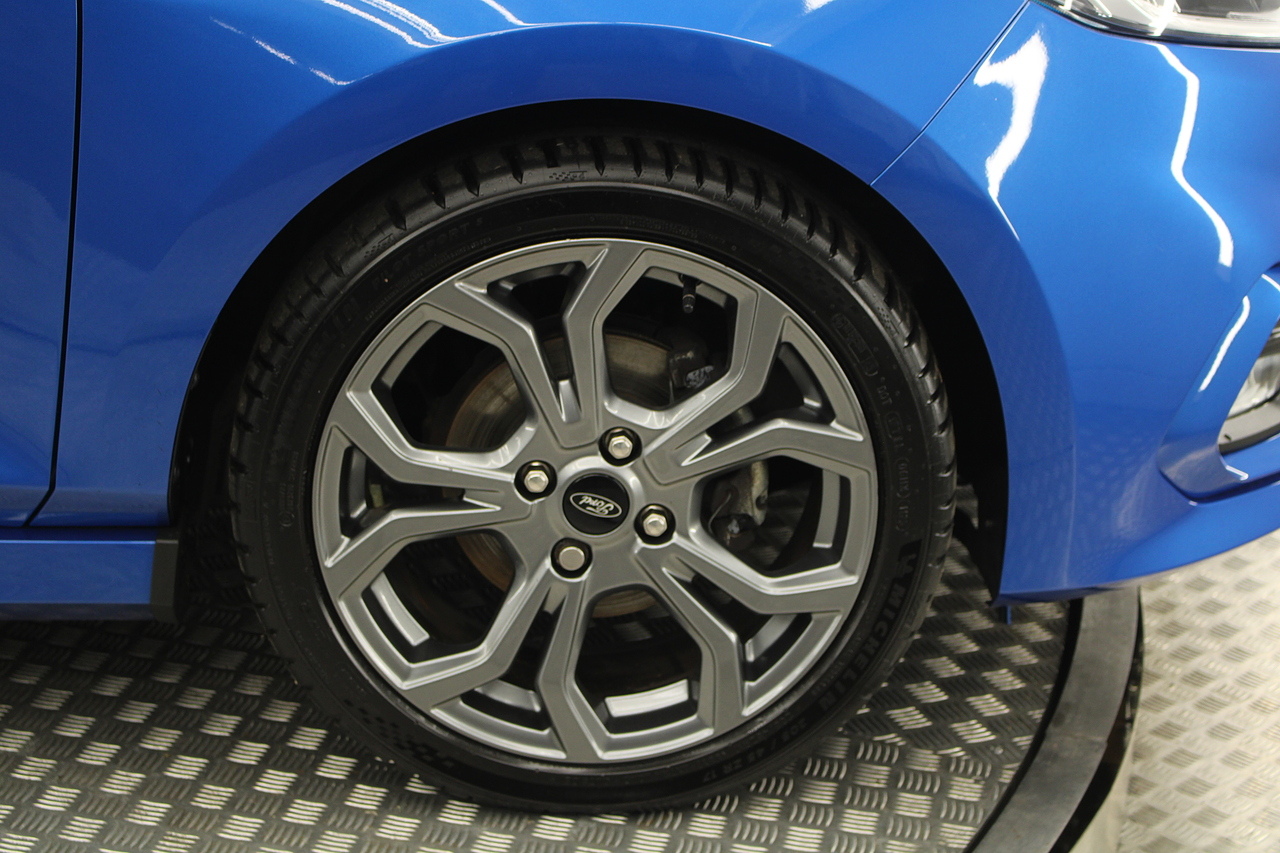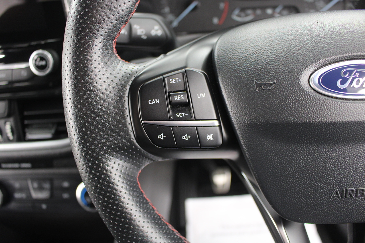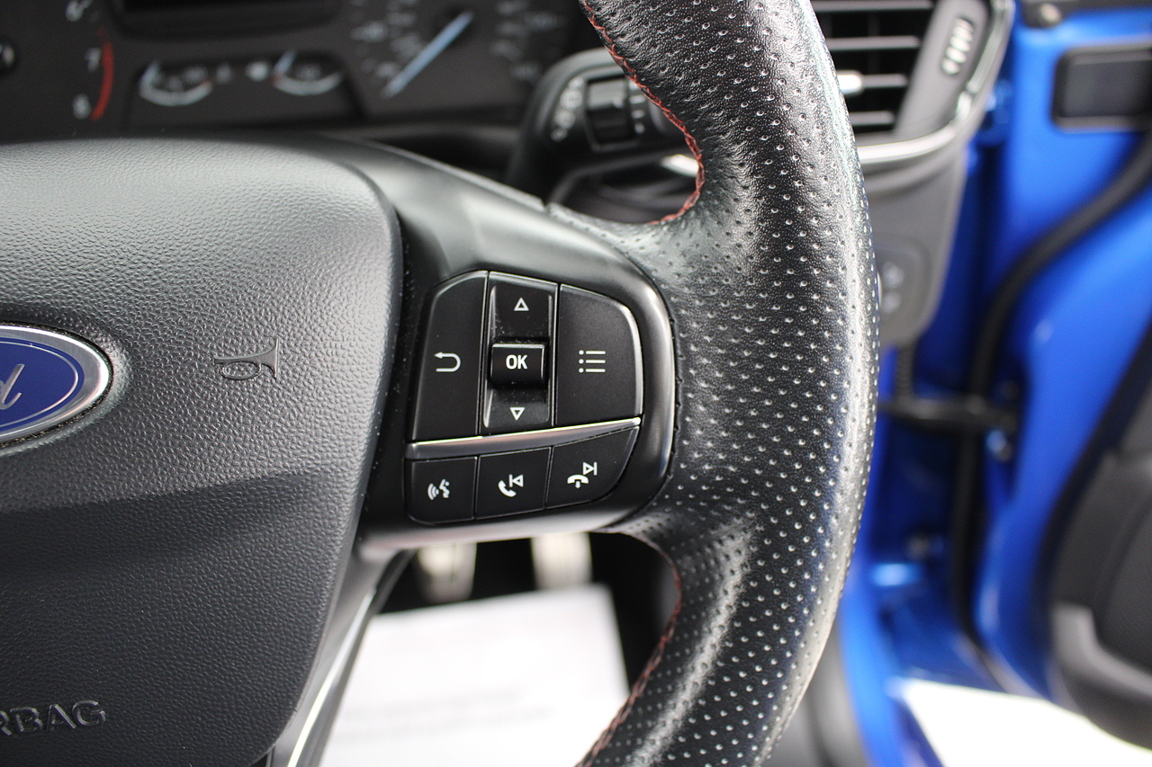 The ST-line X comes with with sporty ST styling, 17'' alloy wheels finished in Anthracite, sports seats trimmed in dark cloth, a fantastic central touch screen display with Satellite navigation, DAB radio, apple car play, android auto, bluetooth telephone functionality and Ford Sync, cruise control, air conditioning, electric front windows, electric and heated door mirrors, steering wheel mounted controls, remote central locking and child ISOFIX anchorage points.