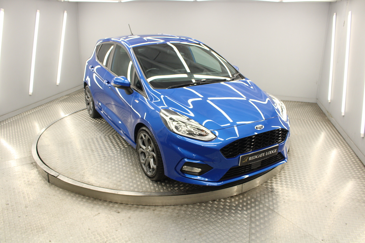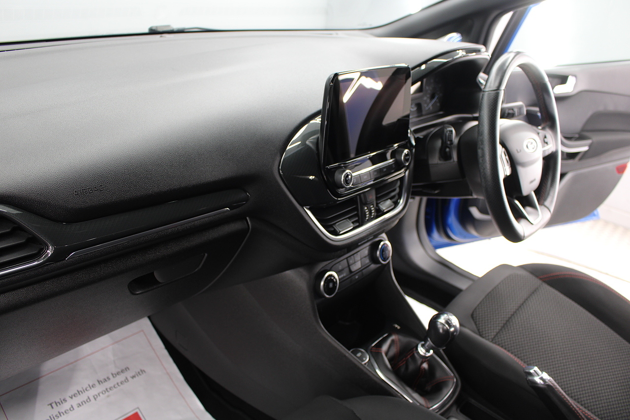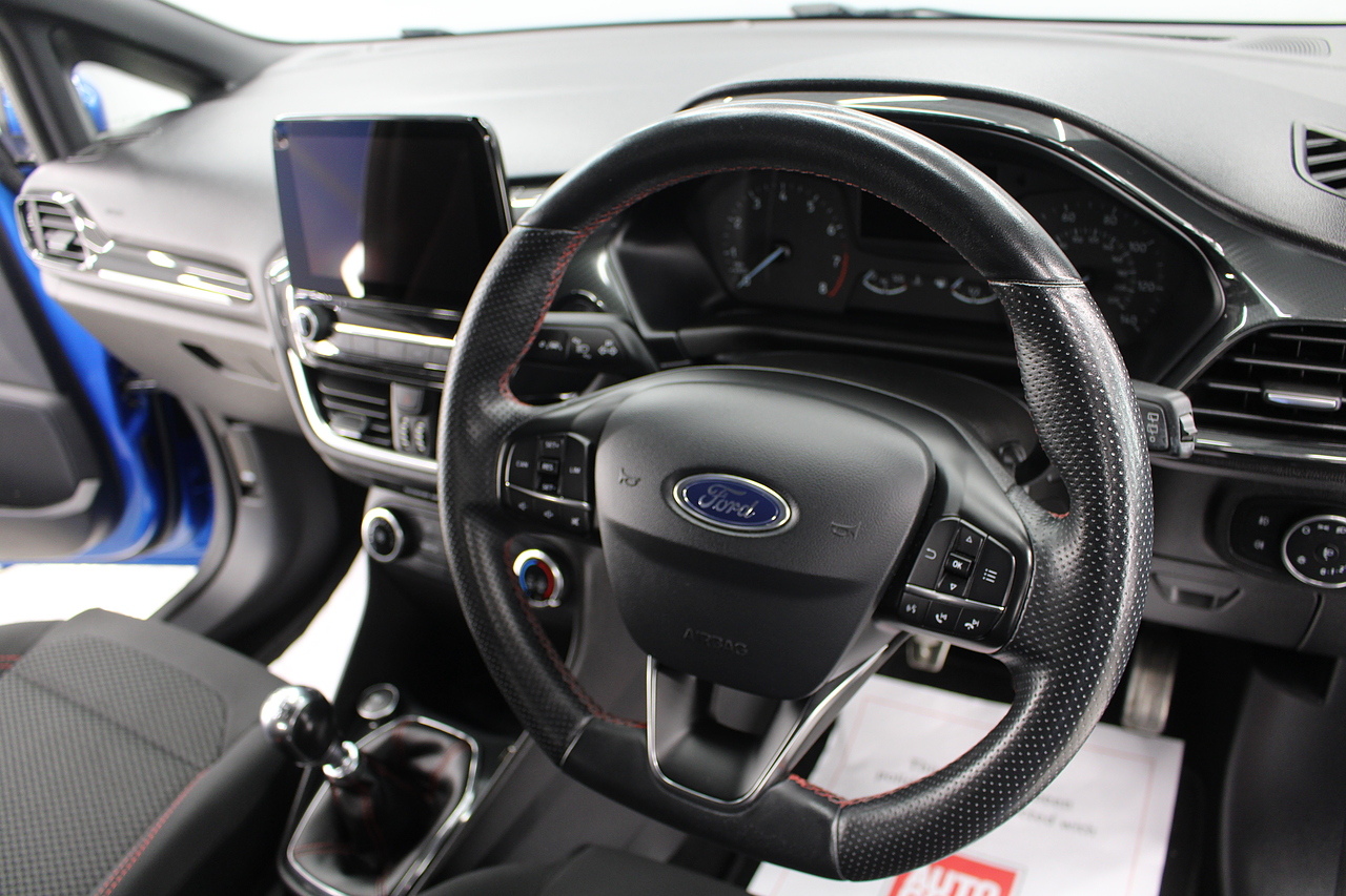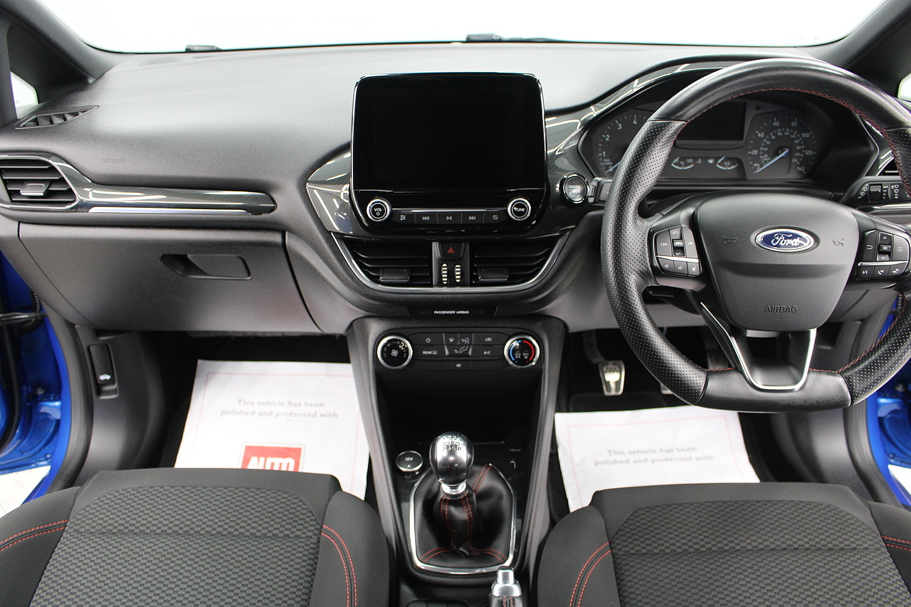 This is our stunning 2019 Ford Fiesta ST Line, finished in the beautiful desert island blue. this car does look fantastic. Powered by the 1.0 petrol engine, making this fiesta very economical.
