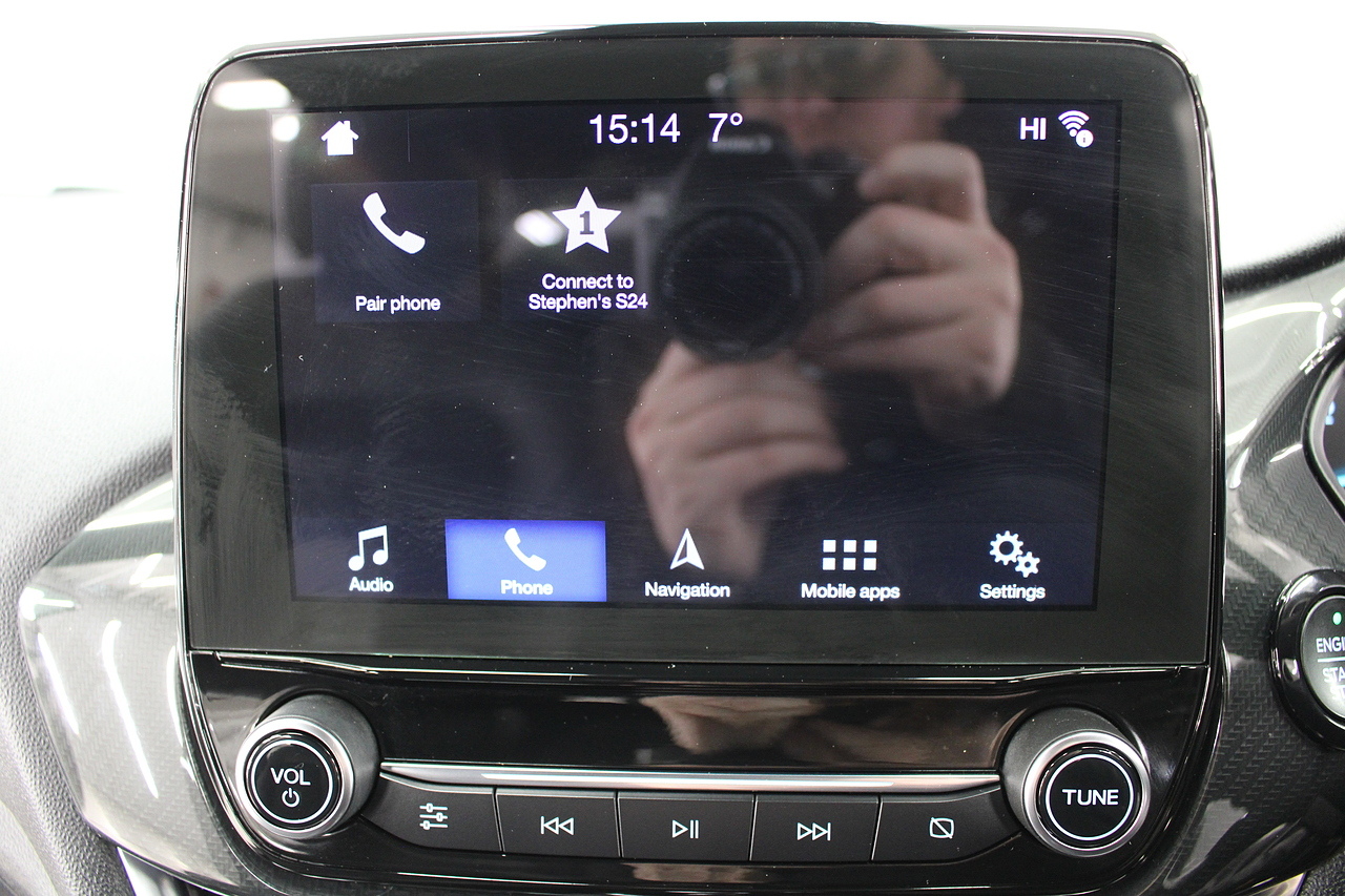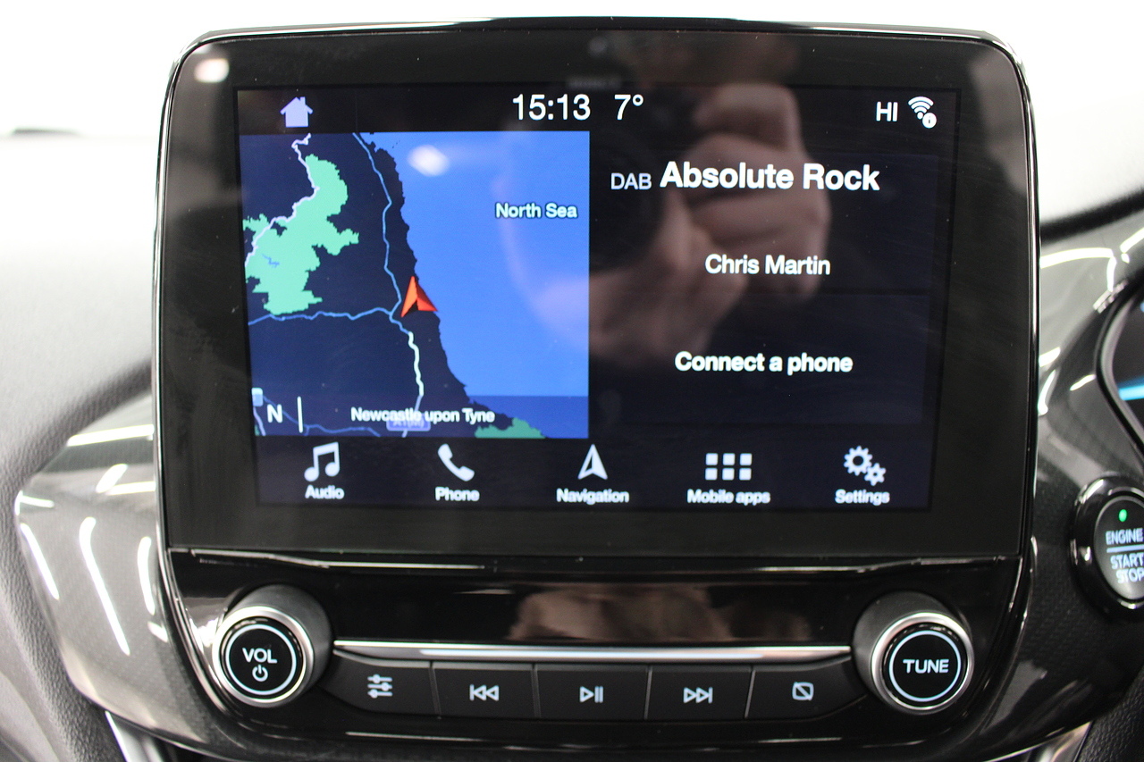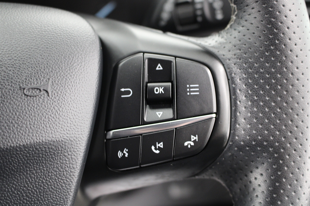 The ST-line X comes with with sporty ST styling, 17''multi-spoke alloy wheels finished in Anthracite, sports seats trimmed in dark cloth, a fantastic central touch screen display with Satellite navigation, DAB radio, apple car play, android auto, bluetooth telephone functionality and Ford Sync, cruise control, air conditioning, electric front windows, electric and heated door mirrors, steering wheel mounted controls, remote central locking and child ISOFIX anchorage points.