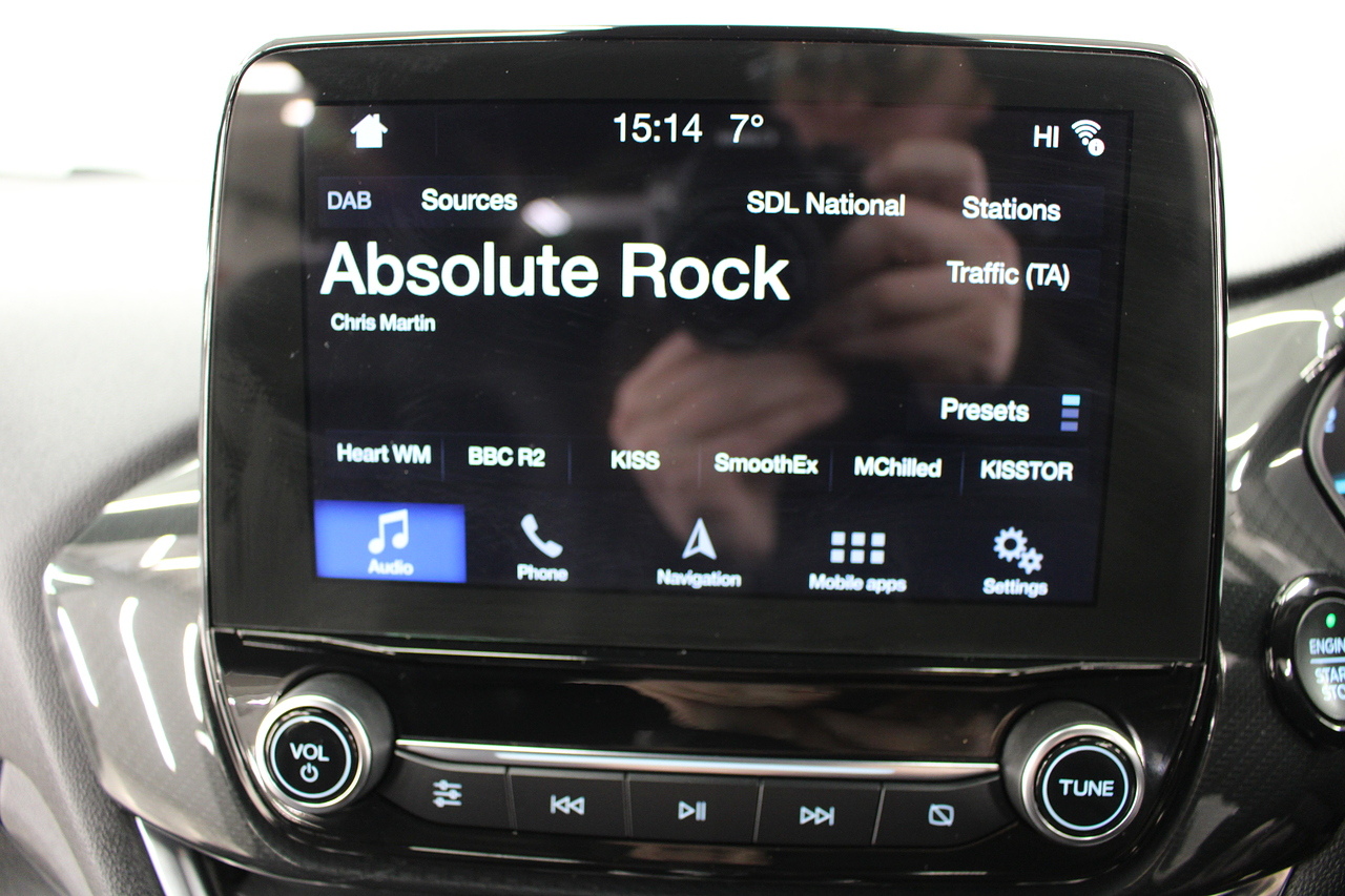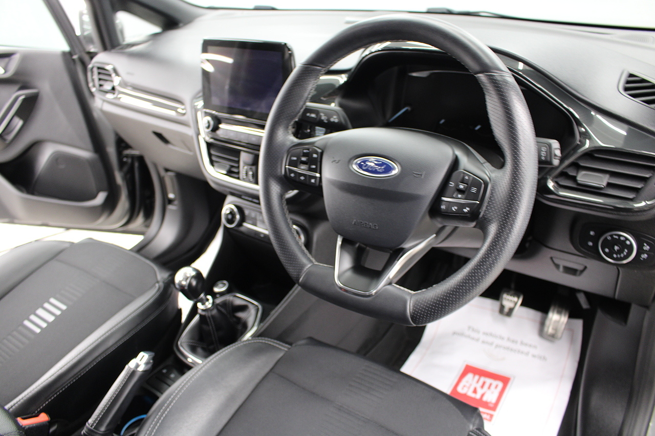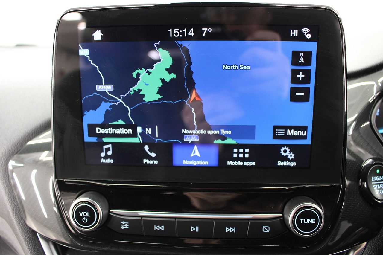 The ST-line X comes with with sporty ST styling, 17''multi-spoke alloy wheels finished in Anthracite, sports seats trimmed in dark cloth, a fantastic central touch screen display with Satellite navigation, DAB radio, apple car play, android auto, bluetooth telephone functionality and Ford Sync, cruise control, air conditioning, electric front windows, electric and heated door mirrors, steering wheel mounted controls, remote central locking and child ISOFIX anchorage points.