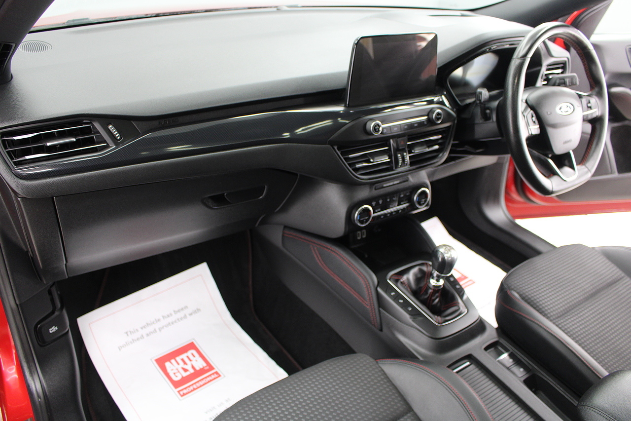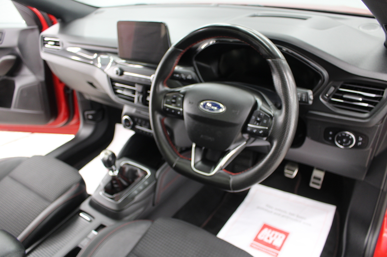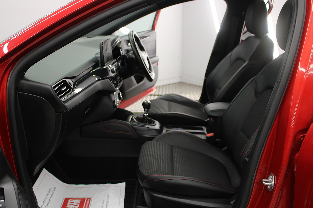 This is our great looking 2021 Ford Focus ST Line X, finished in the gorgeous 'fantastic red' metallic looks great with the ST styling and diamond cut wheels. Fitted with the 1.0 petrol engine this Focus is extremely frugal to run with fantastic MPG figures of 54 on average.