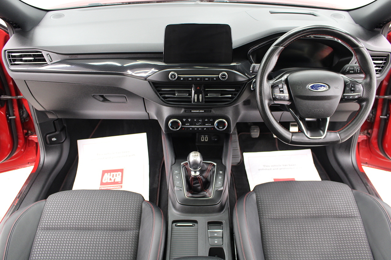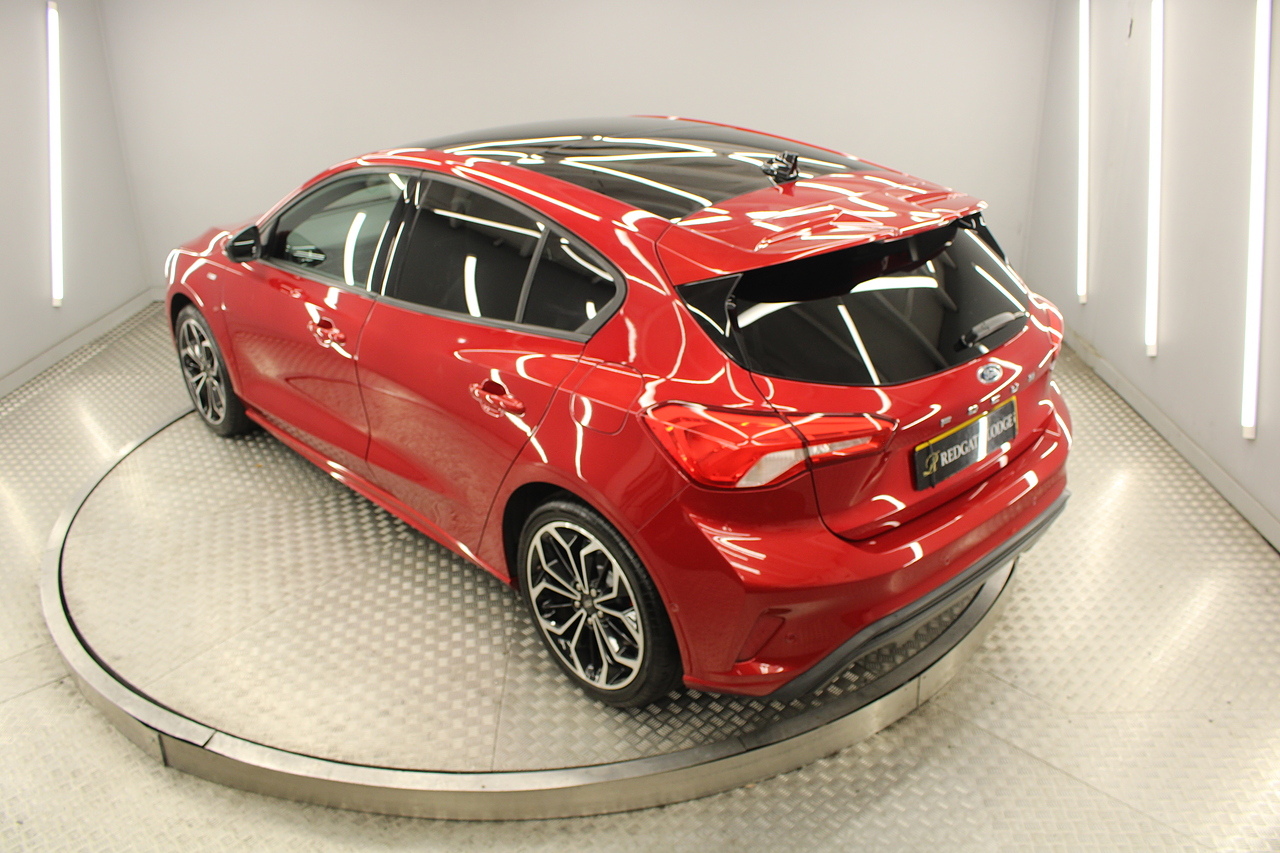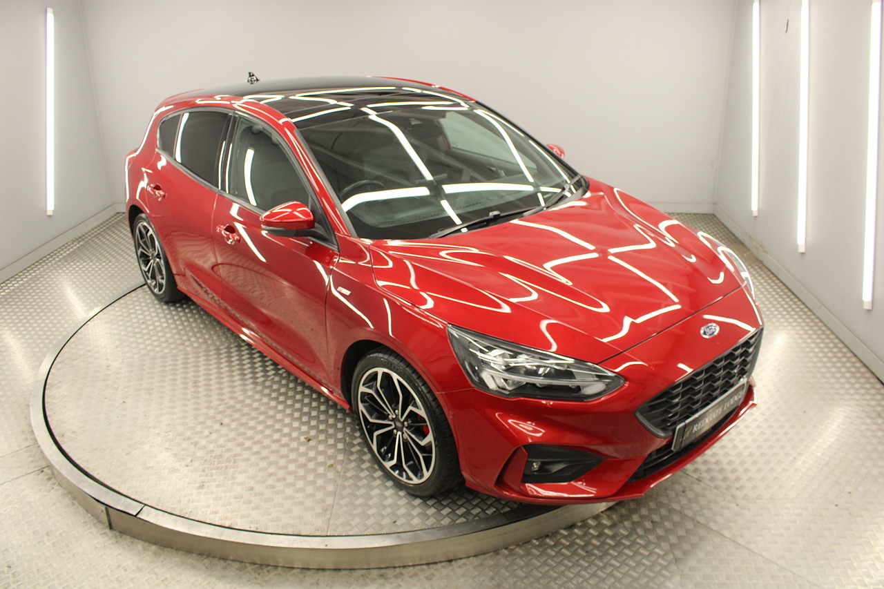 This is our great looking 2021 Ford Focus ST Line X, finished in the gorgeous 'fantastic red' metallic looks great with the ST styling and diamond cut wheels. Fitted with the 1.0 petrol engine this Focus is extremely frugal to run with fantastic MPG figures of 54 on average.