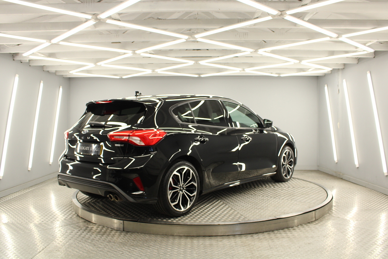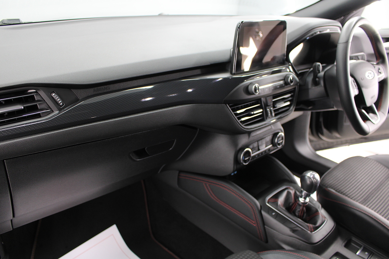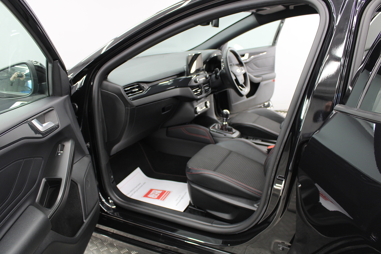 This is our great looking 2021 Ford Focus ST Line X Edition, finished in agate black metallic looks great with the ST styling and diamond cut wheels. Fitted with the 1.0 petrol hybrid engine this Focus is extremely frugal to run with fantastic MPG figures.