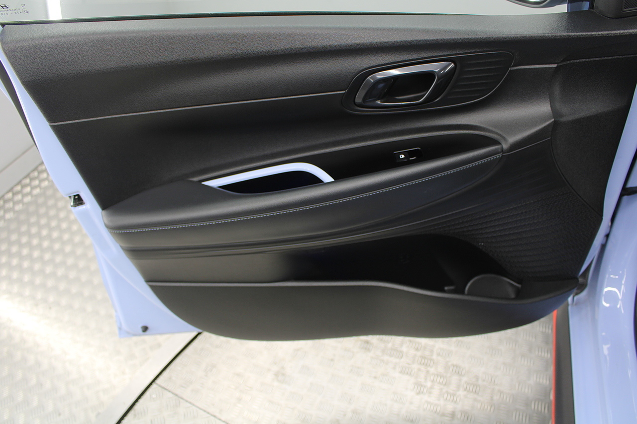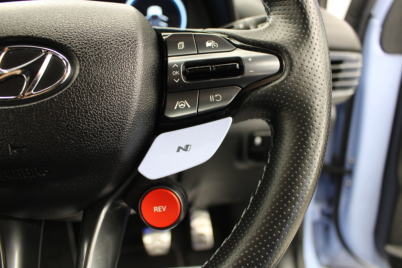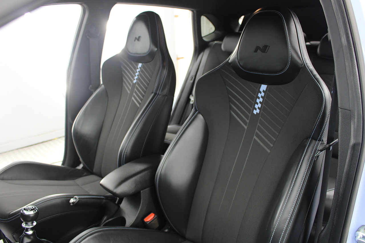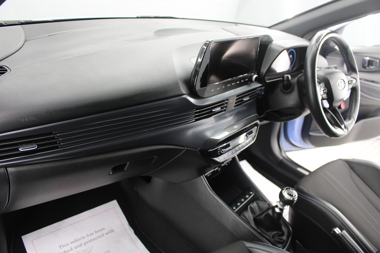 To the interior, you'll see the very comfortable and supportive half leather sports seats which are heated along with the heated steering wheel Bluetooth connectivity, Sat Nav, full colour touch screen with DAB radio with Apple Car Play and Android Auto, as well as also benefitting from front and rear parking sensors and full colour reverse camera heated front seats and of course the adjustable driving modes N-mode and rev matching, The i20N It's also quite a lot faster on the road than offerings from other manufacturers plus offers a lot more spec and tech for the price.