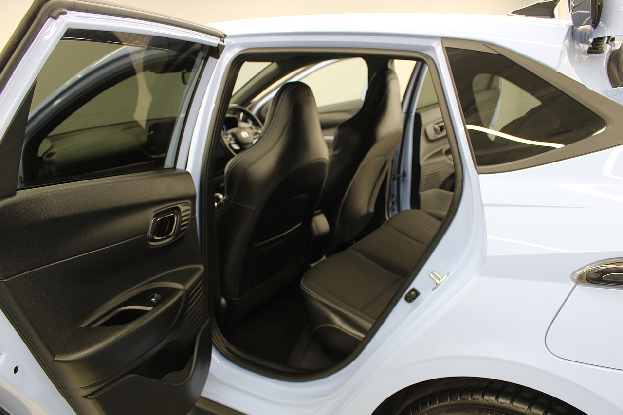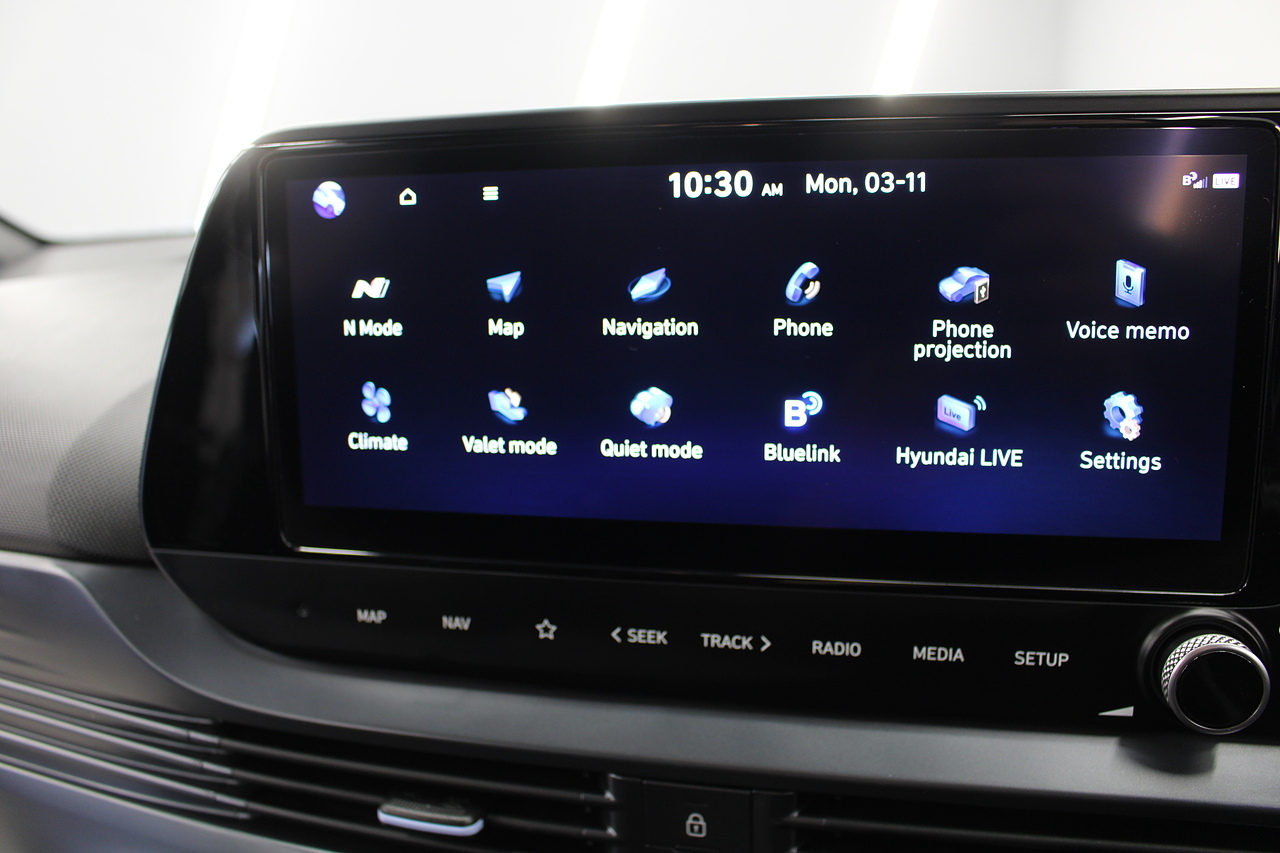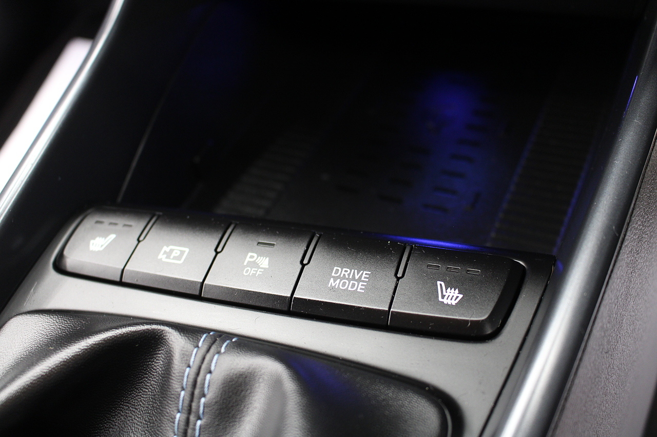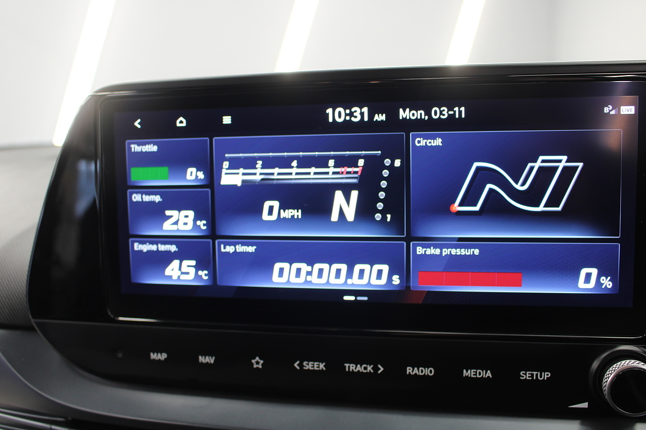 To the interior, you'll see the very comfortable and supportive half leather sports seats which are heated along with the heated steering wheel Bluetooth connectivity, Sat Nav, full colour touch screen with DAB radio with Apple Car Play and Android Auto, as well as also benefitting from front and rear parking sensors and full colour reverse camera heated front seats and of course the adjustable driving modes N-mode and rev matching, The i20N It's also quite a lot faster on the road than offerings from other manufacturers plus offers a lot more spec and tech for the price.