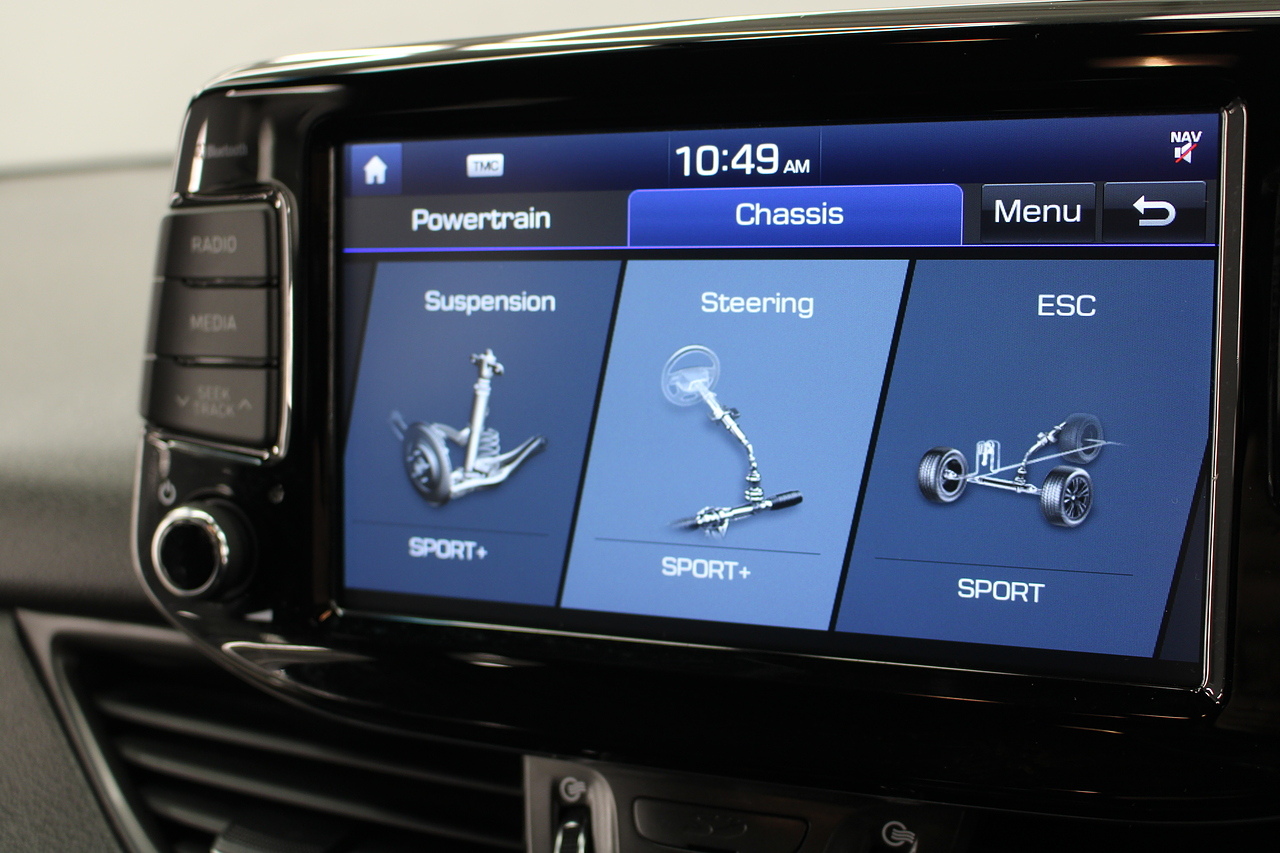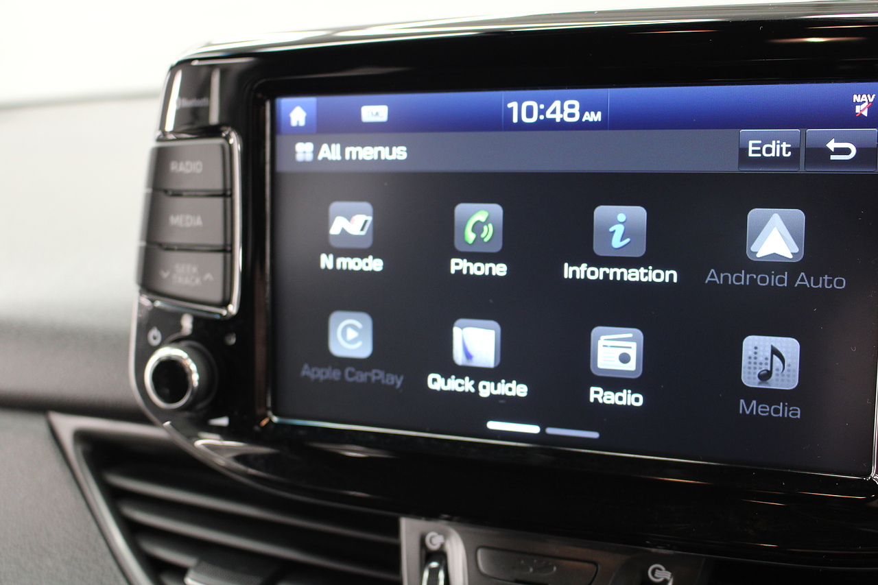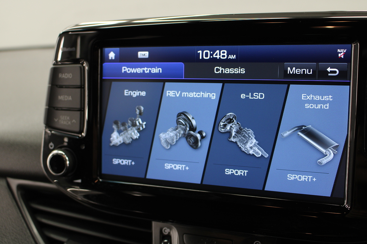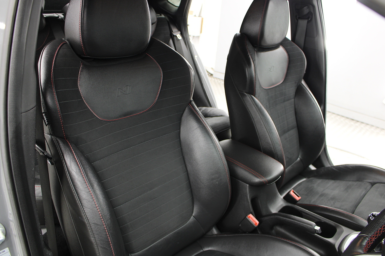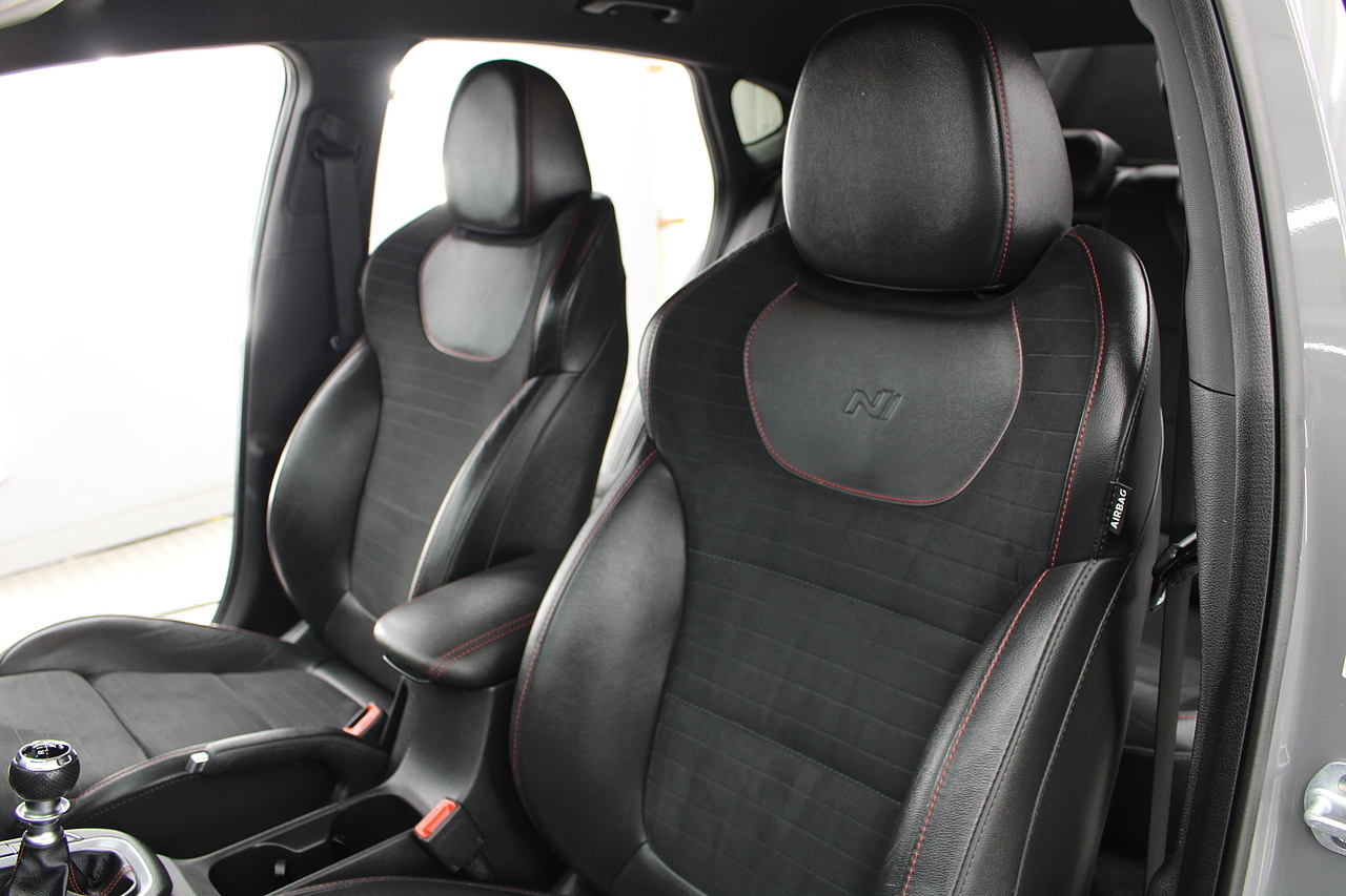 To the interior, you'll see the very comfortable and supportive sport styled half leather and alcantara seats which are power adjustable with memory settings, heated seats and steering wheel, beautiful touches of piano black across the centre console, Bluetooth connectivity, Sat Nav, full colour touch screen with DAB radio with Apple Car Play and Android Auto, as well as also benefitting from front and rear parking sensors and full colour reverse camera and of course the adjustable driving modes where everything from throttle response, rev matching, the LSD and exhaust note all can be set up the way you like it, it is a real clever bit of kit! The i30 N Performance. It's also quite a lot faster on the road than offerings such as the Ford Focus ST, and comfier and more accessible than all of the above plus offers a lot more spec and tech for the money.