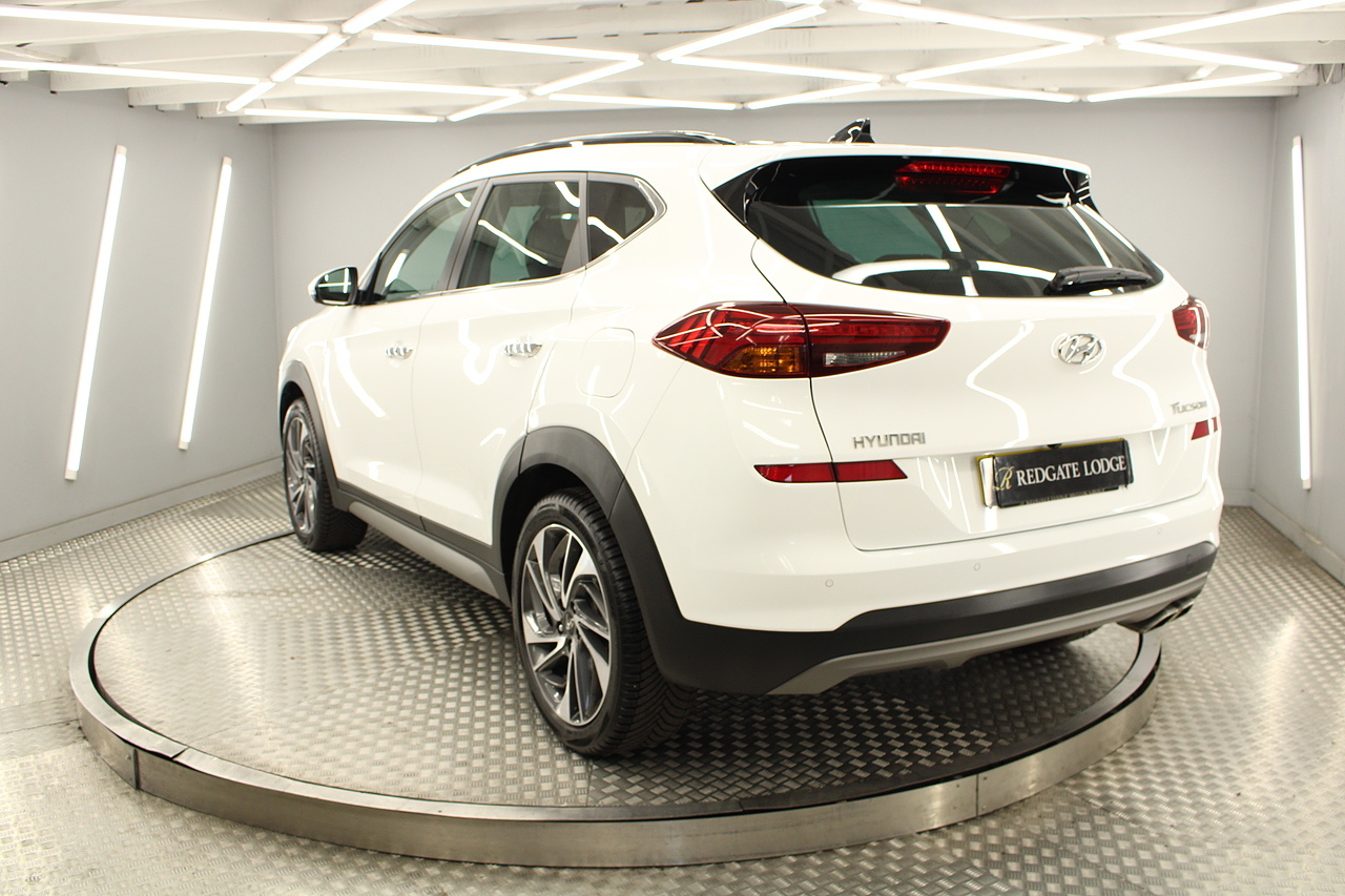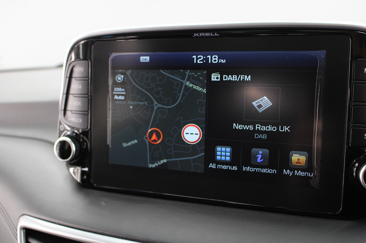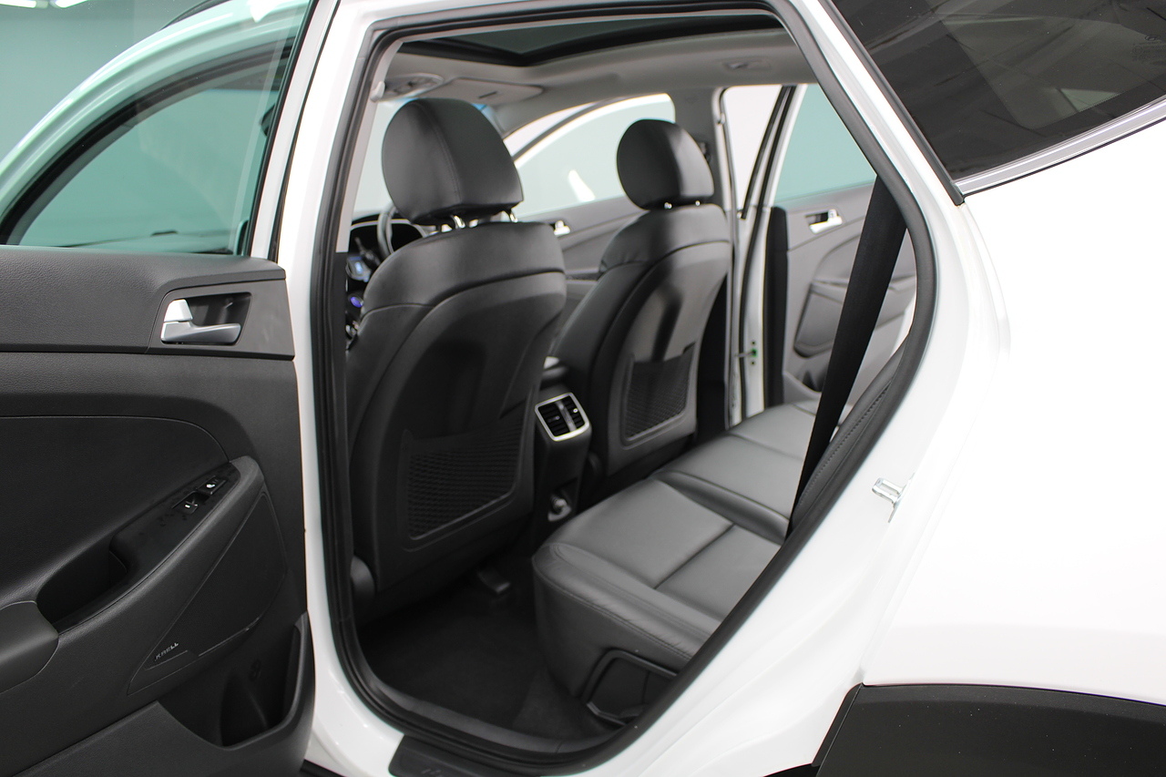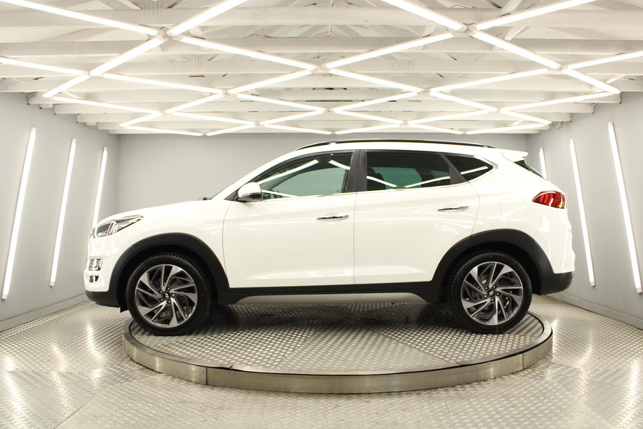 The specifications of this car do include black leather interior trim with heated and cooling front seats along with heated rear seats, climate control, cruise control, front and rear electric windows, a large touch screen unit with Satellite navigation, DAB radio, Bluetooth telephone connectivity, apple car play, android auto, roof rails, steering wheel mounted audio controls, with handy driver aids such as cruise control, hill descent, lane departure warning, parking sensors with rear camera and top view camera and child ISOFIX anchorage points. The Hyundai Tucson may effectively be the bigger brother for the IX35, but it is also much more than that. It represents a huge leap forward for Hyundai in terms of interior quality, exterior design and refinement. Elements such as the distinctive grille and modern cabin design which made their debut in the ix35 and it leads the way in terms of economy and emissions too with impressively efficient and cheap to run engines.