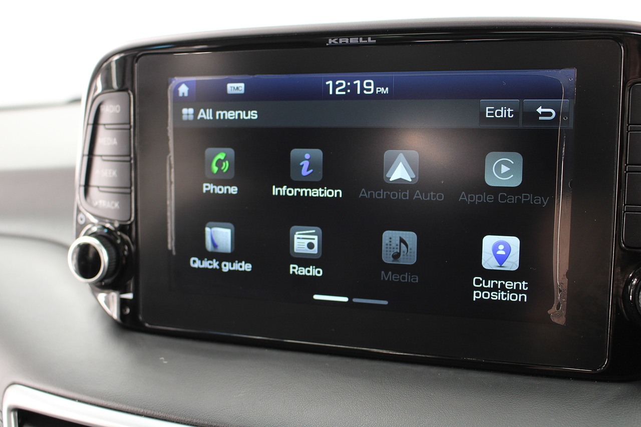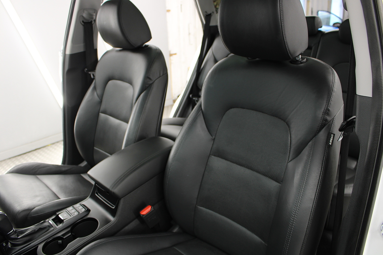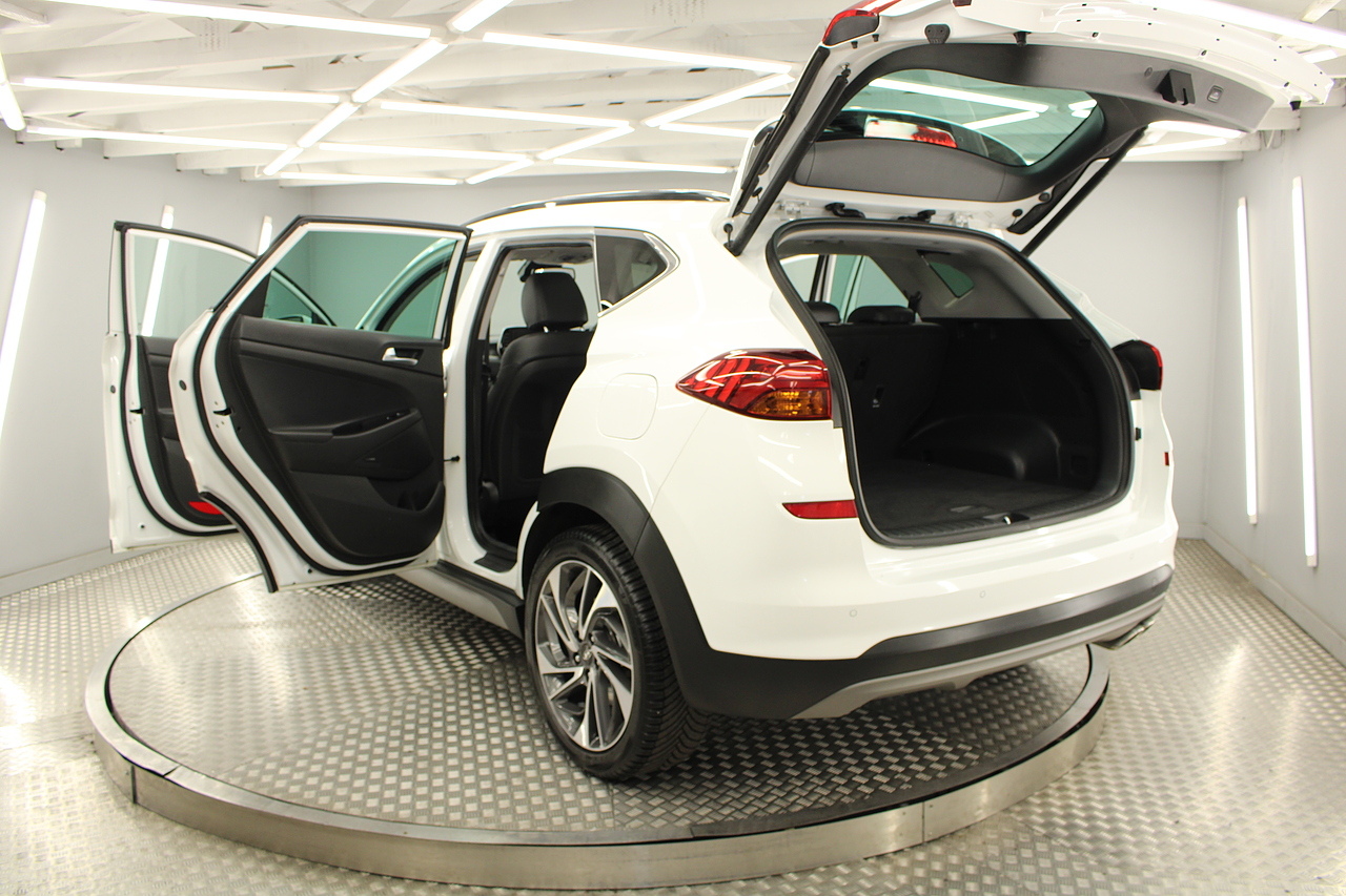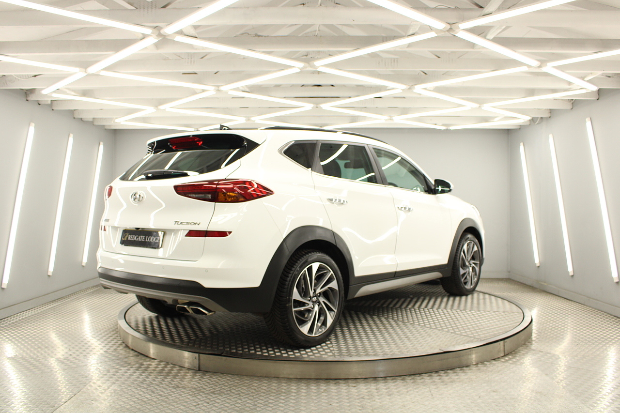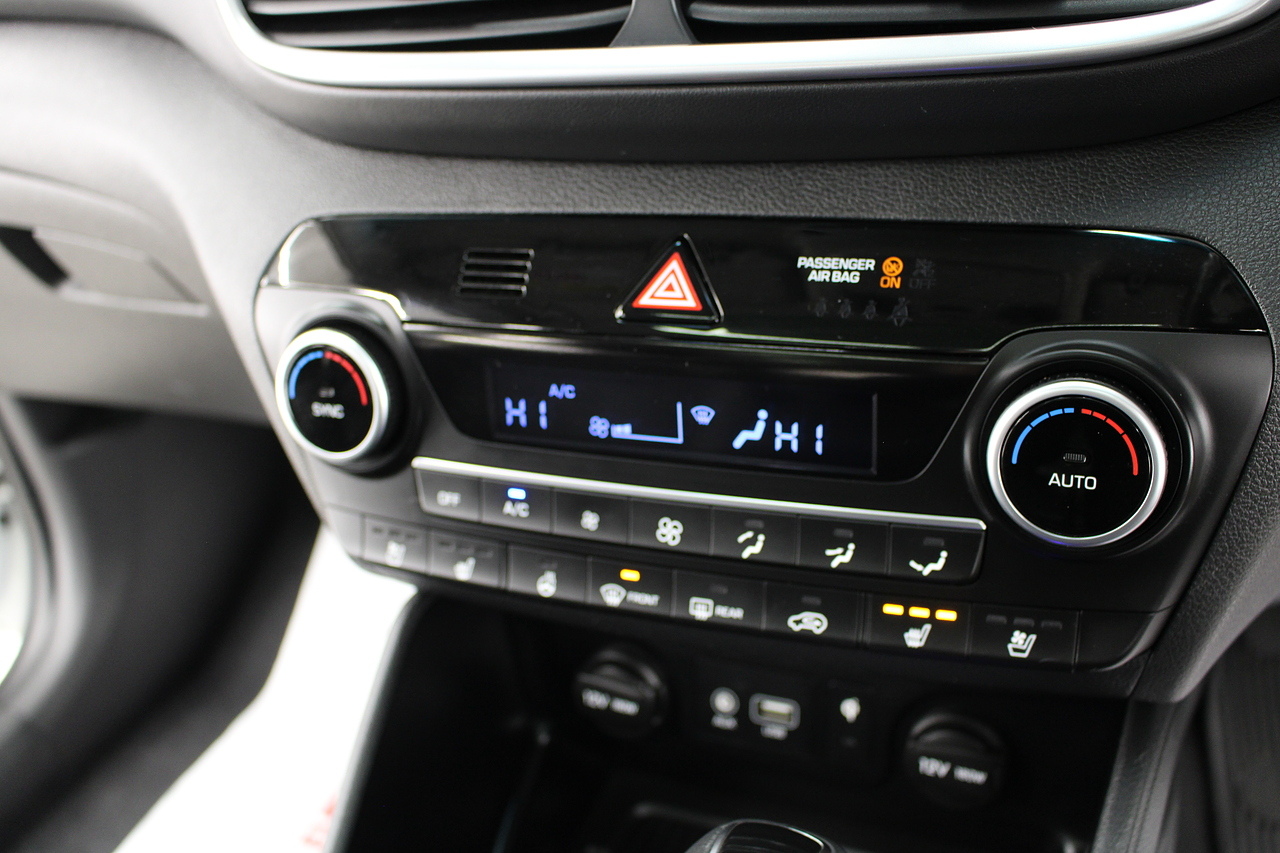The specifications of this car do include black leather interior trim with heated and cooling front seats along with heated rear seats, climate control, cruise control, front and rear electric windows, a large touch screen unit with Satellite navigation, DAB radio, Bluetooth telephone connectivity, apple car play, android auto, roof rails, steering wheel mounted audio controls, with handy driver aids such as cruise control, hill descent, lane departure warning, parking sensors with rear camera and top view camera and child ISOFIX anchorage points. The Hyundai Tucson may effectively be the bigger brother for the IX35, but it is also much more than that. It represents a huge leap forward for Hyundai in terms of interior quality, exterior design and refinement. Elements such as the distinctive grille and modern cabin design which made their debut in the ix35 and it leads the way in terms of economy and emissions too with impressively efficient and cheap to run engines.