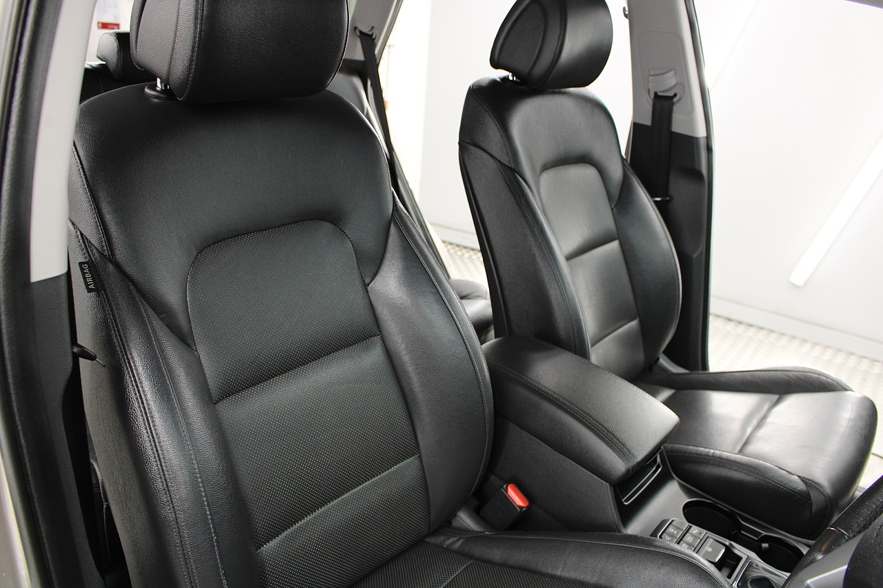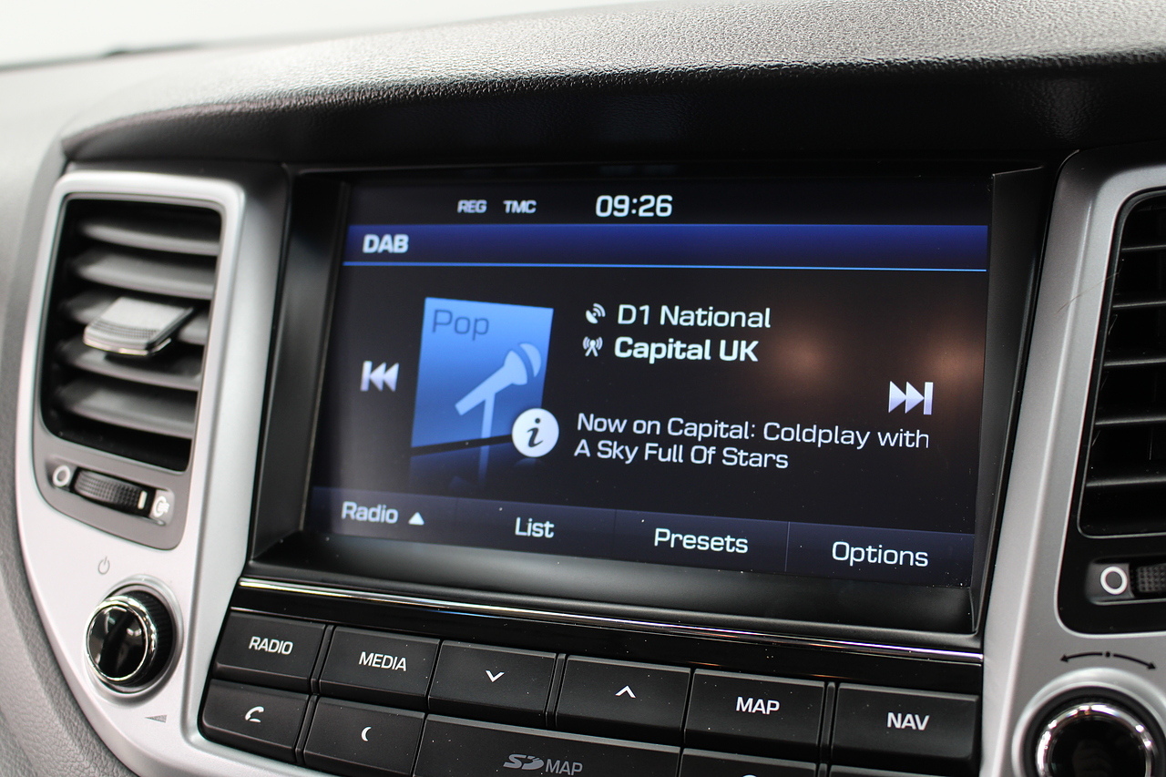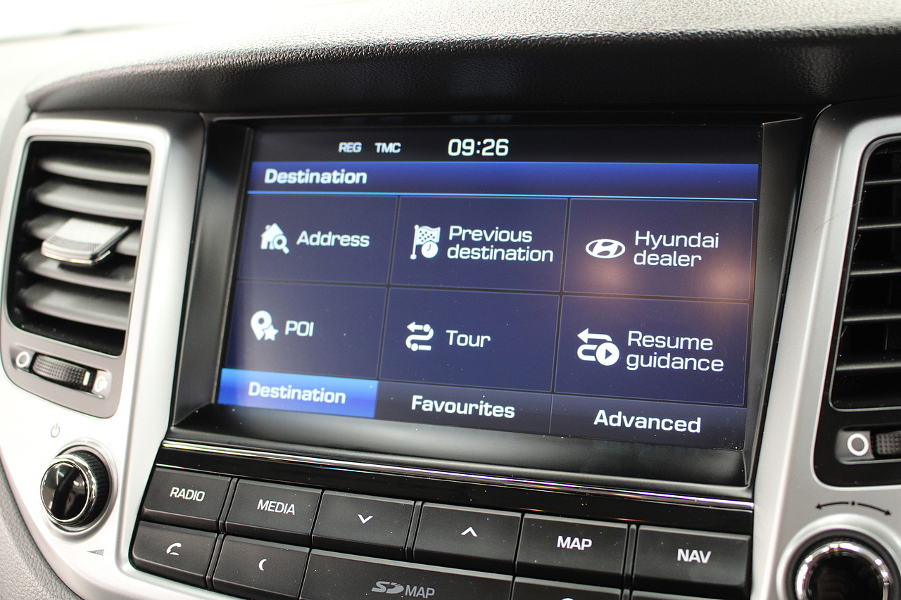 The specifications of this car do include black leather interior trim with heated front seats, climate control, cruise control, front and rear electric windows, DAB radio, Bluetooth telephone connectivity, roof rails, steering wheel mounted audio controls, and child ISOFIX anchorage points. The Hyundai Tucson may effectively be the bigger brother for the IX35, but it is also much more than that. It represents a huge leap forward for Hyundai in terms of interior quality, exterior design and refinement. Elements such as the distinctive grille and modern cabin design which made their debut in the ix35 and it leads the way in terms of economy and emissions too with impressively efficient and cheap to run engines.