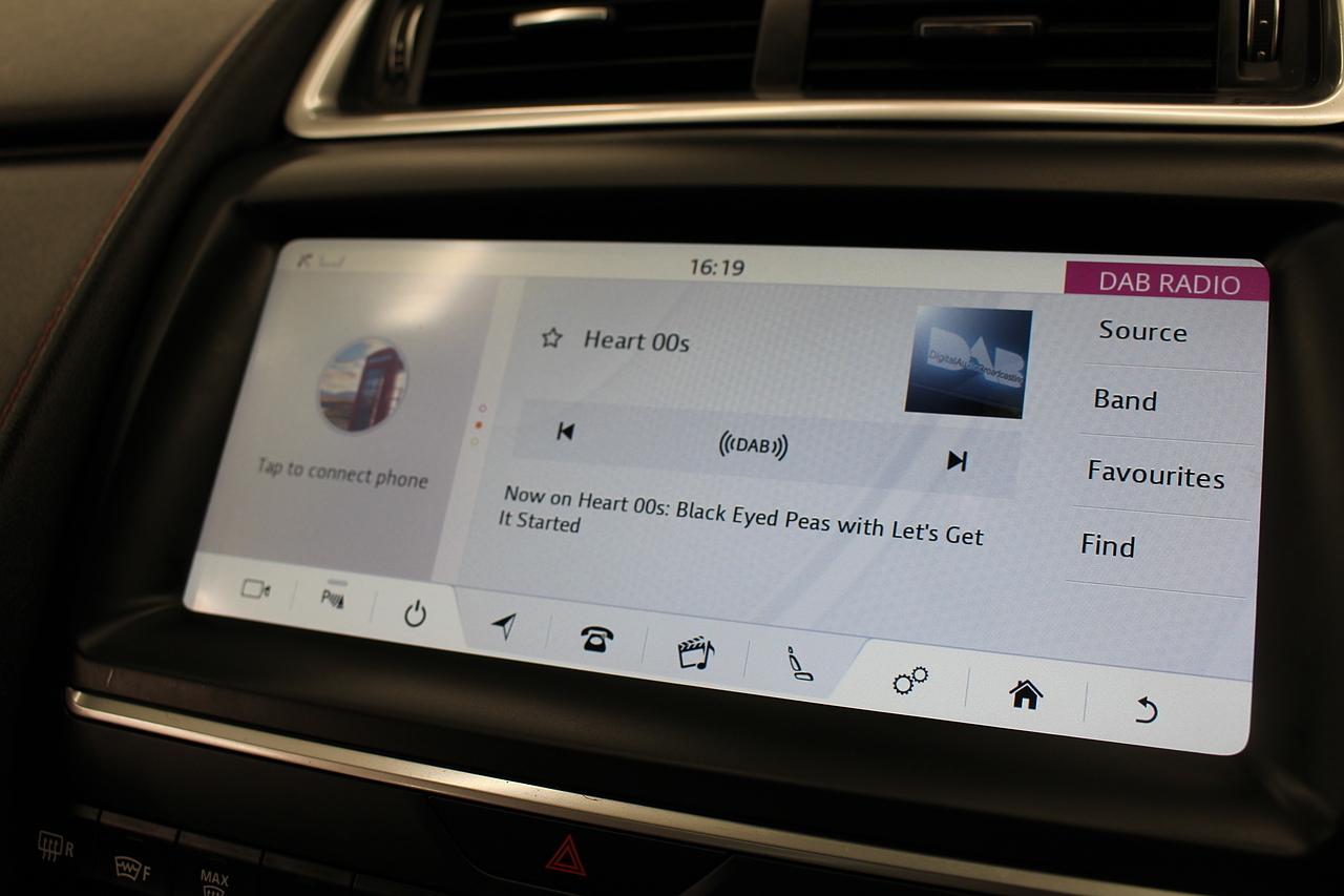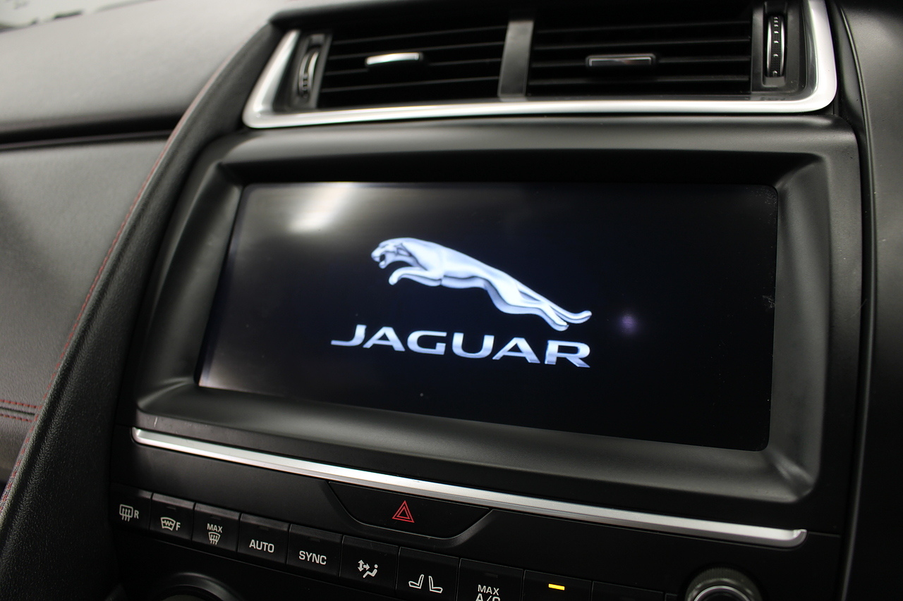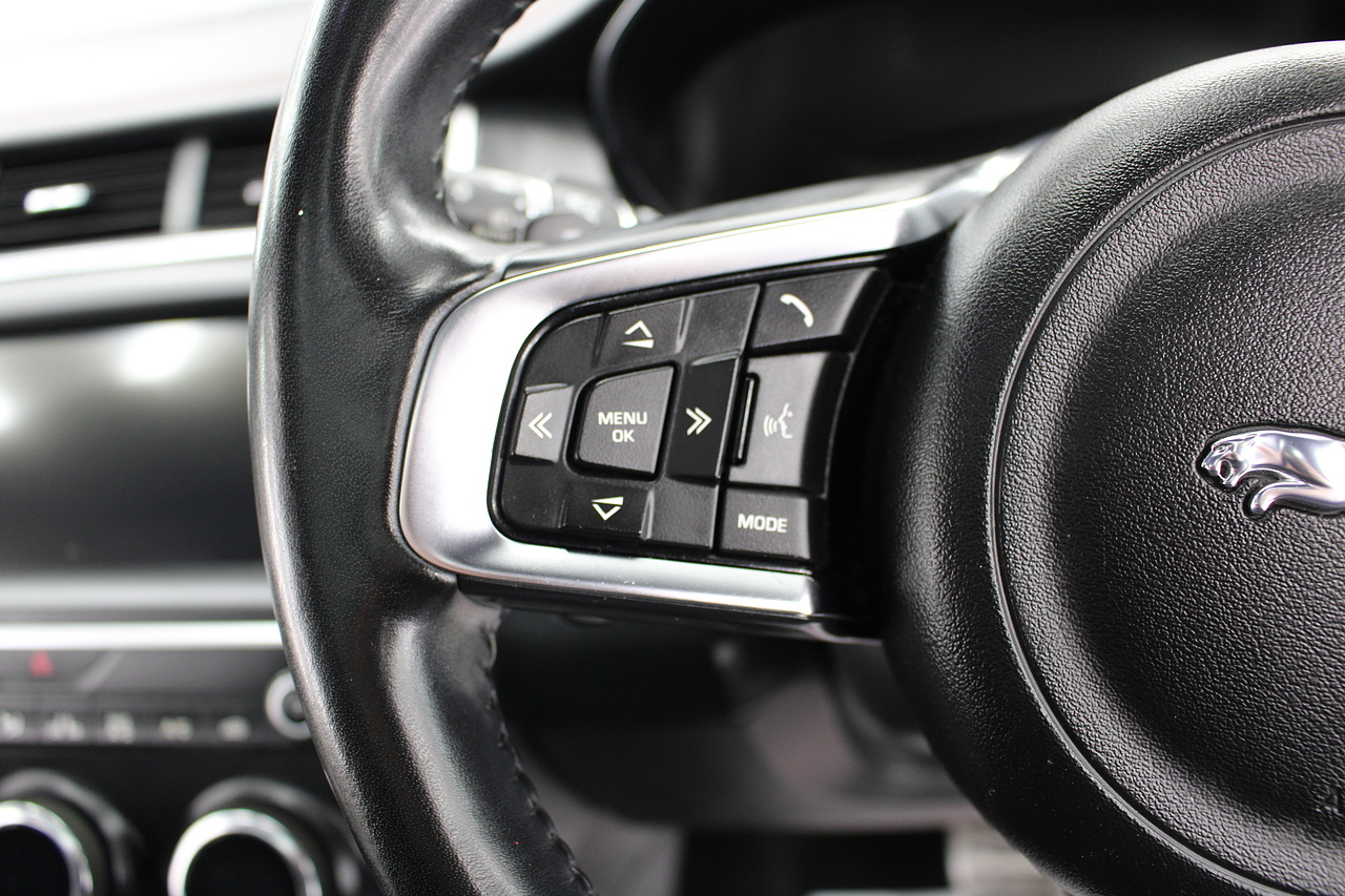 The interior is trimmed in the stunning black leather with stylish sports seats in the front and features a large full Colour screen with, dab radio, satellite navigation, bluetooth telephone connectivity, front and rear parking sensors with rear facing camera. In summary, a very desirable and great looking car. Low running costs, matched with Jaguars awesome reputation for quality and innovation.