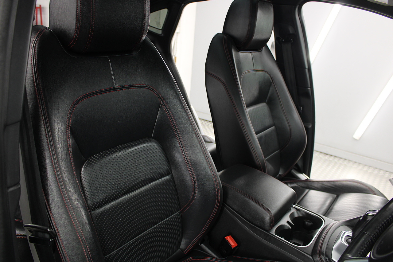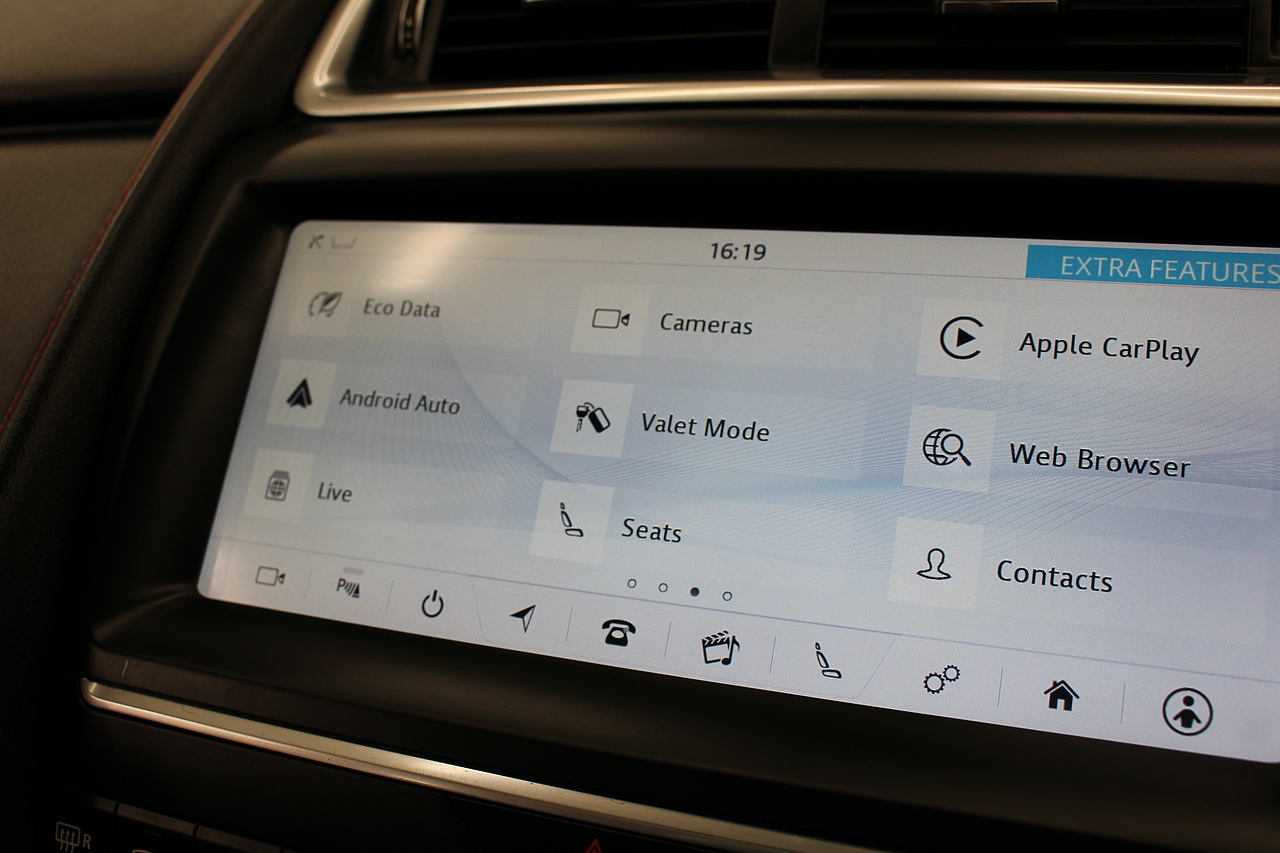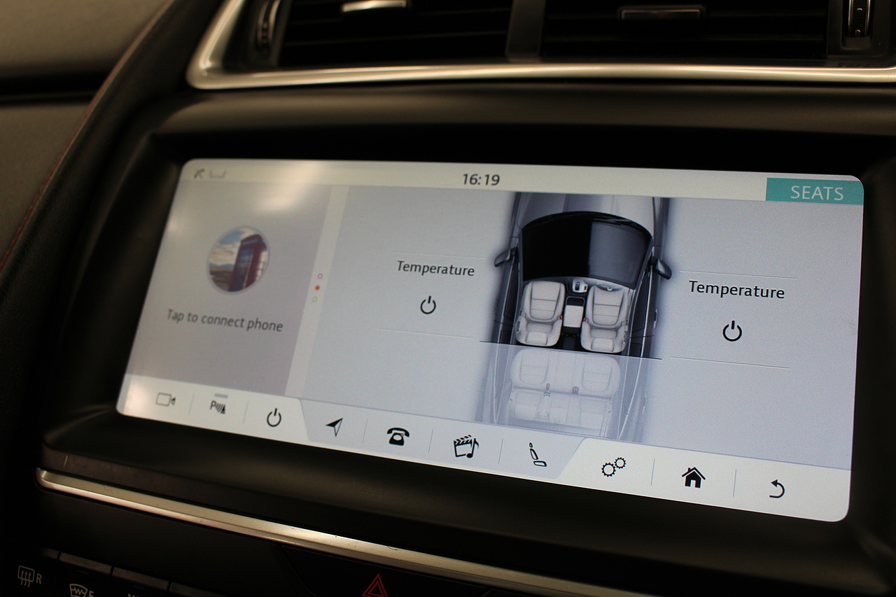 The interior is trimmed in the stunning black leather with stylish sports seats in the front and features a large full Colour screen with, dab radio, satellite navigation, bluetooth telephone connectivity, front and rear parking sensors with rear facing camera. In summary, a very desirable and great looking car. Low running costs, matched with Jaguars awesome reputation for quality and innovation.