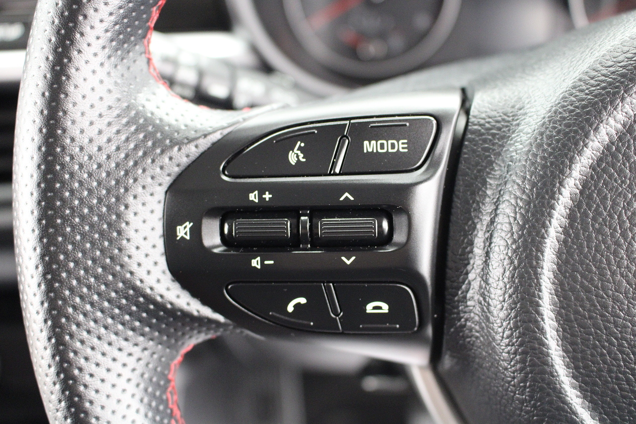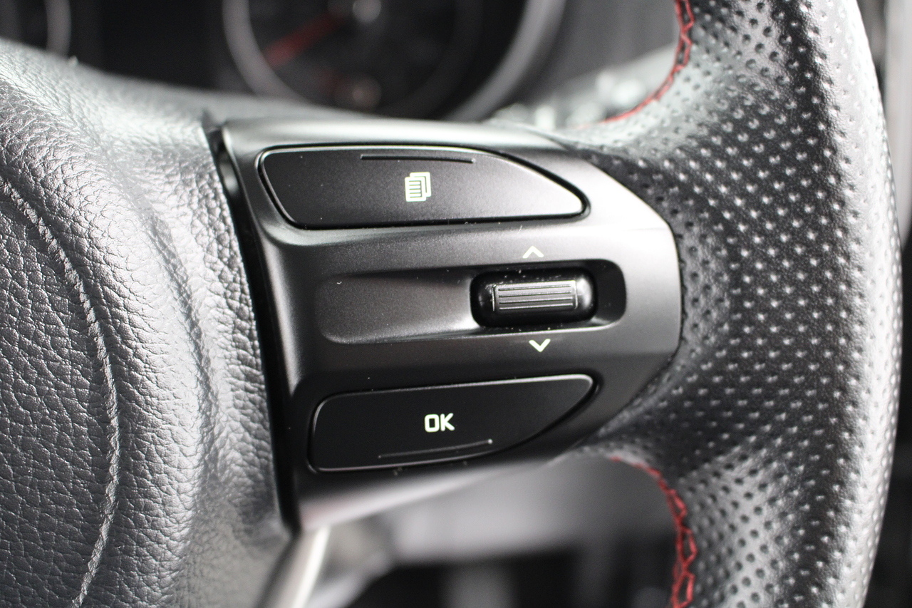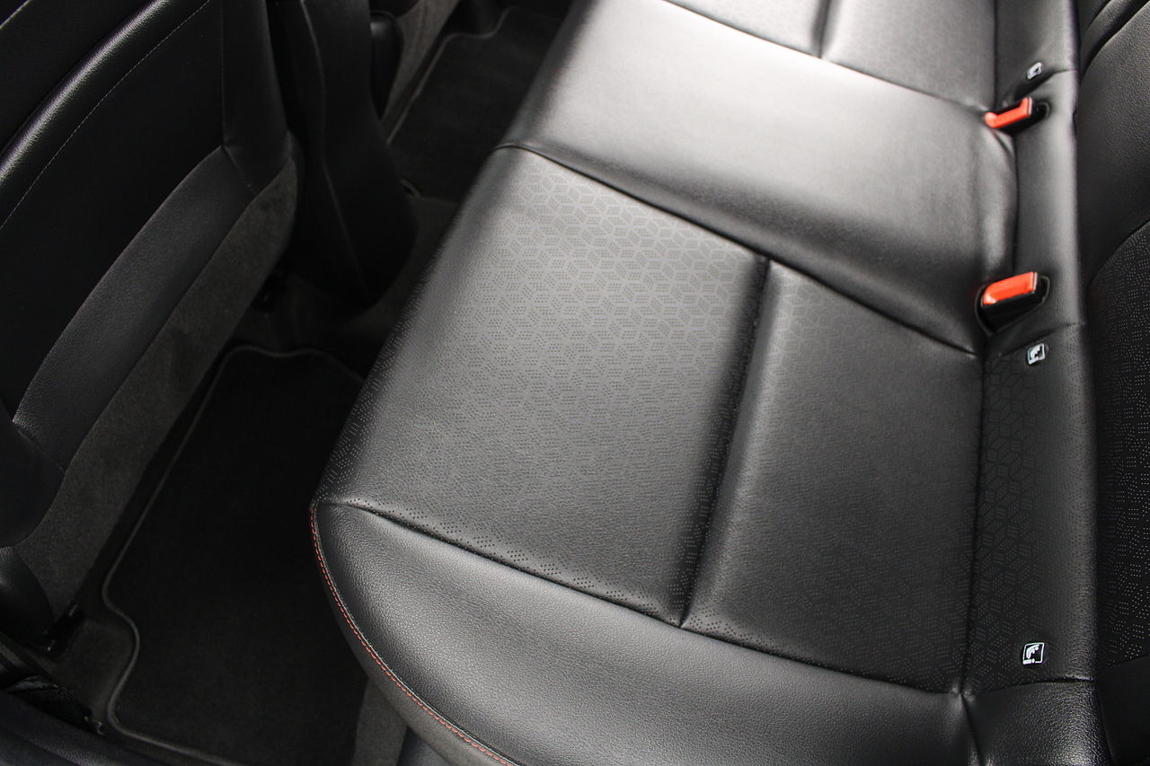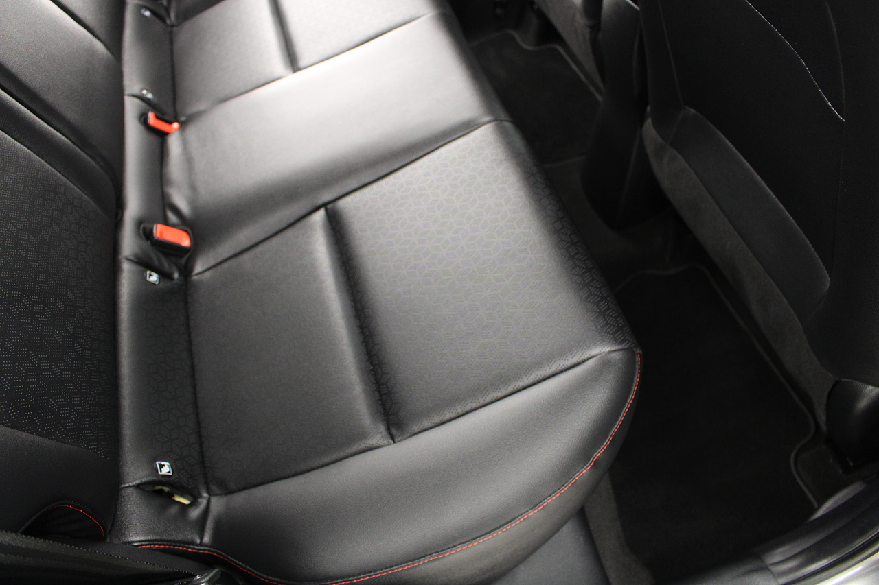 The interior comes trimmed in black leather of course with the subtle read highlights throughout and with plenty of modern tech, with a large touch screen display incorporating DAB radio, bluetooth, Apple car play and Android auto, rear parking sensors with rear camera, air conditioning, multi function steering wheel and ISOFIX child seat points.