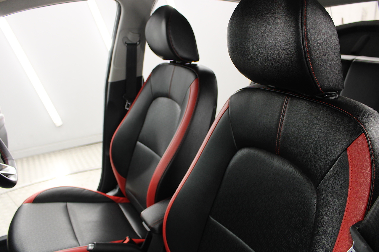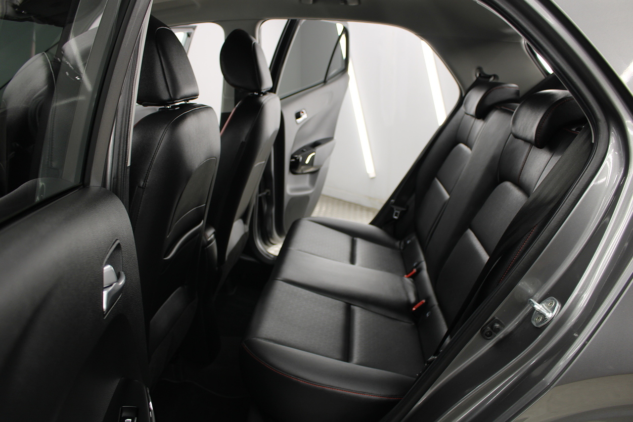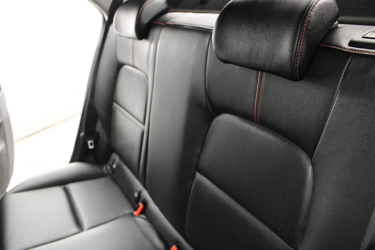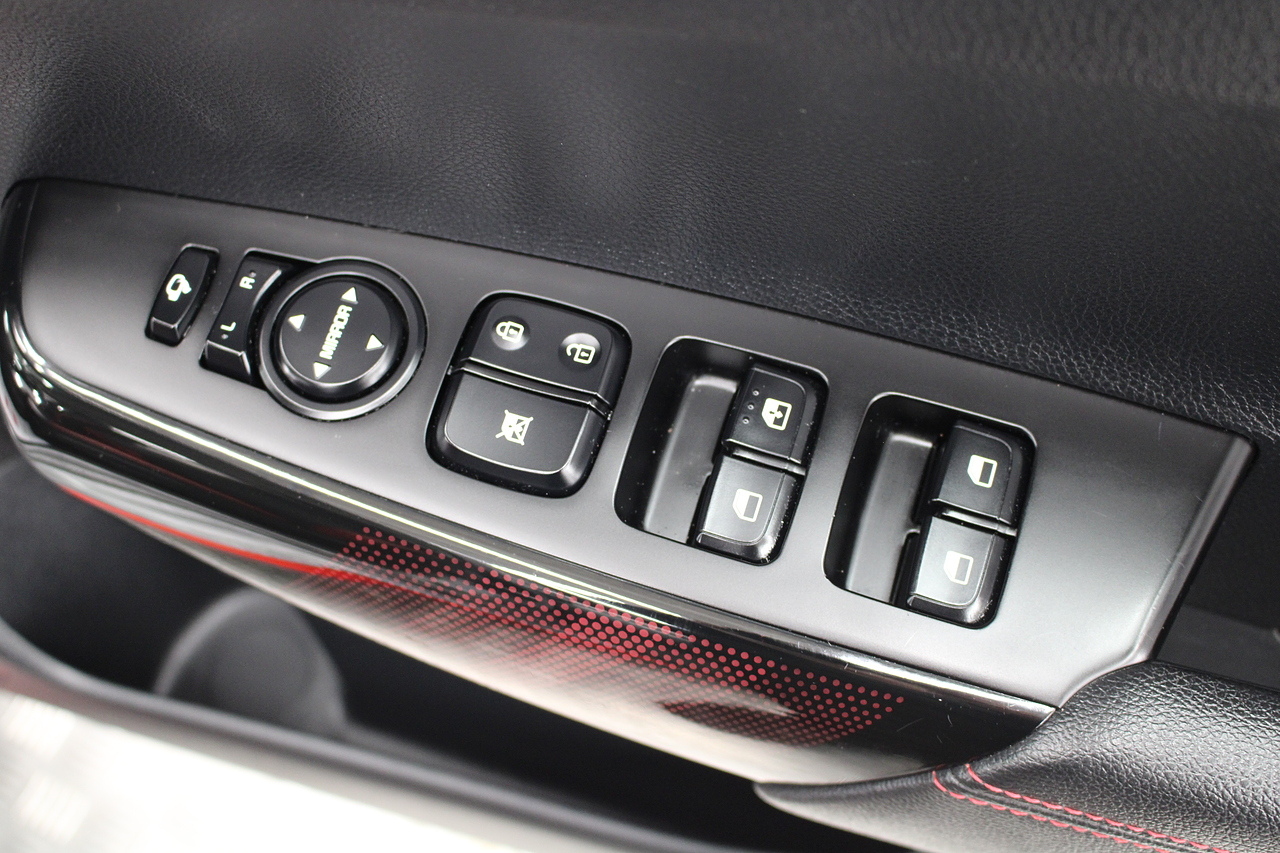 The interior comes trimmed in black leather of course with the subtle read highlights throughout and with plenty of modern tech, with a large touch screen display incorporating DAB radio, bluetooth, Apple car play and Android auto, rear parking sensors with rear camera, air conditioning, multi function steering wheel and ISOFIX child seat points.