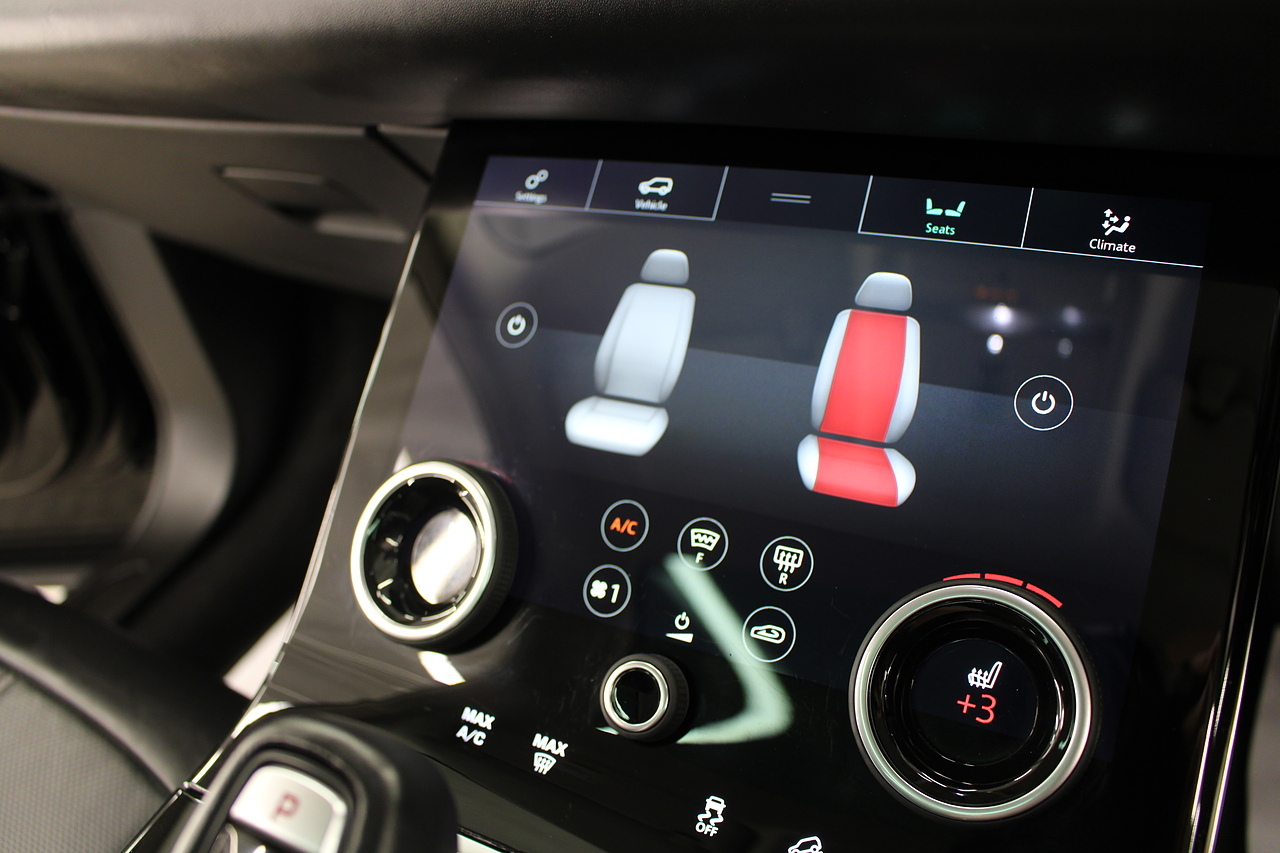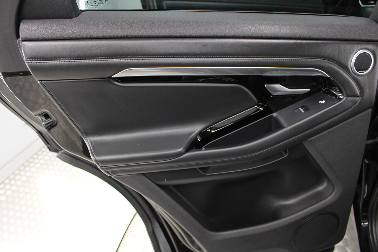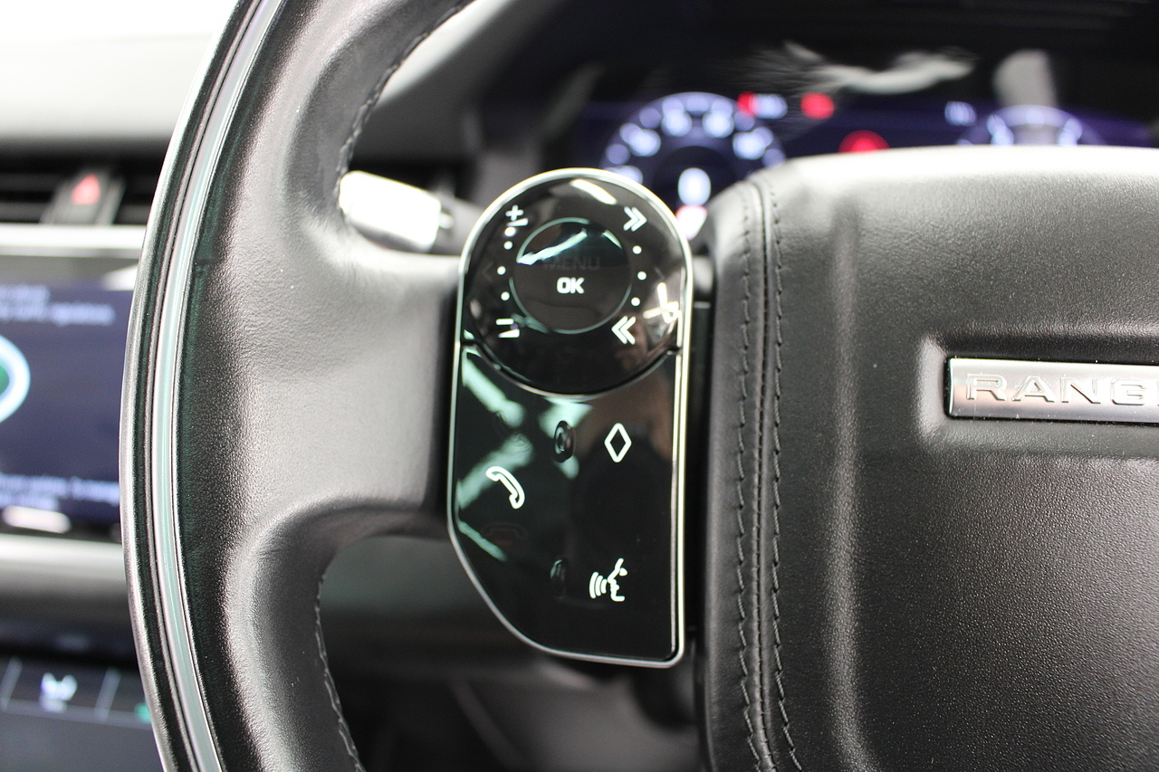 The interior is trimmed in high quality materials finished in black leather, with heated seats in the front, there is a large touch screen double display unit which features full colour screen with the bottom screen controlling the climate control, driving modes and vehicle settings, the top screen has DAB radio, bluetooth telephone connectivity, power tailgate and reverse parking camera. In summary, a very very desirable and great looking car. Low running costs, matched with Range Rovers awesome reputation for quality and innovation.