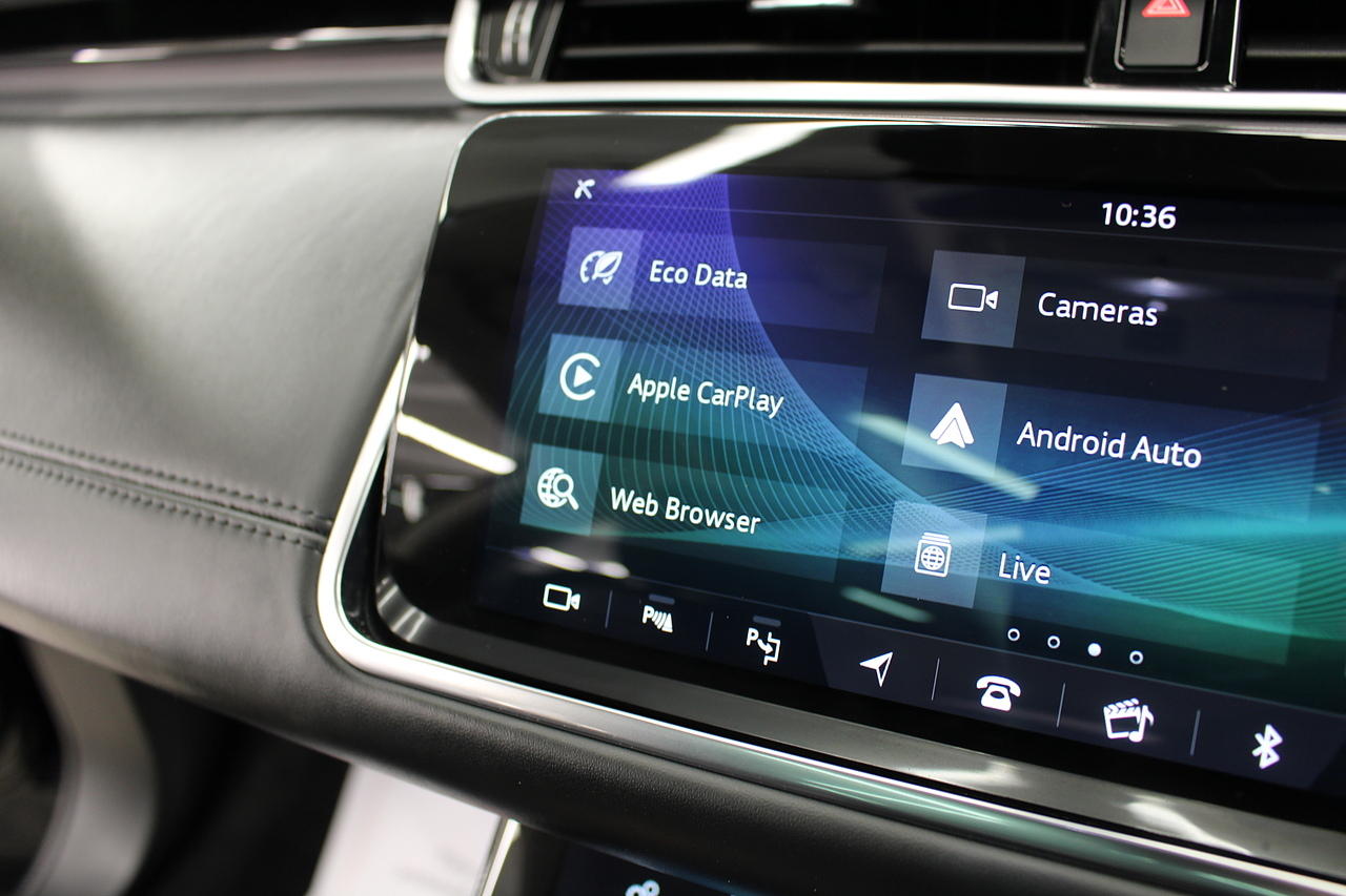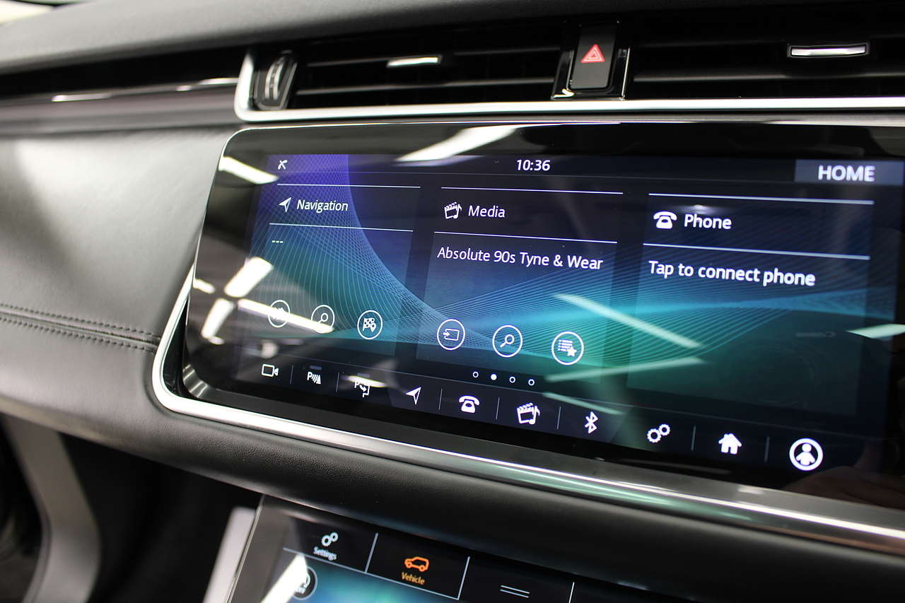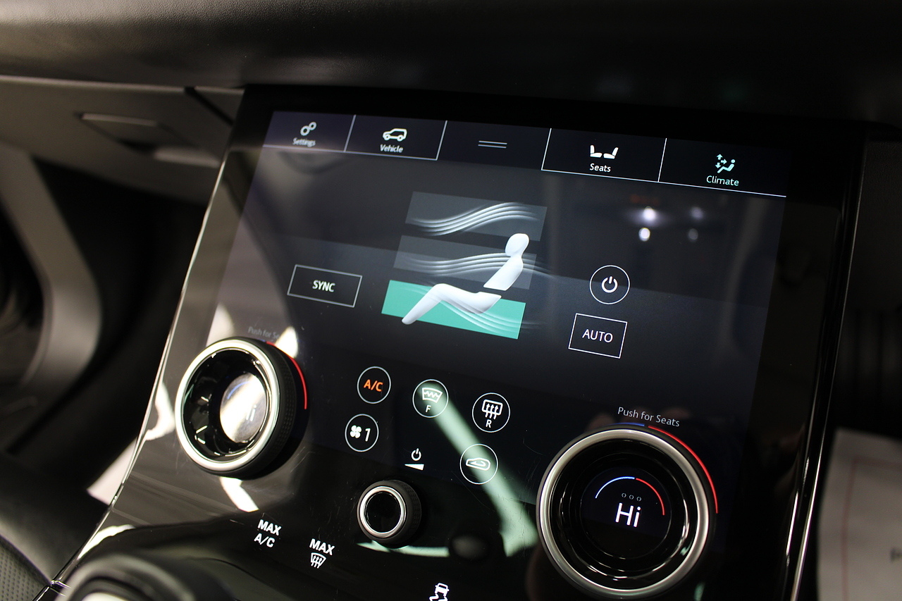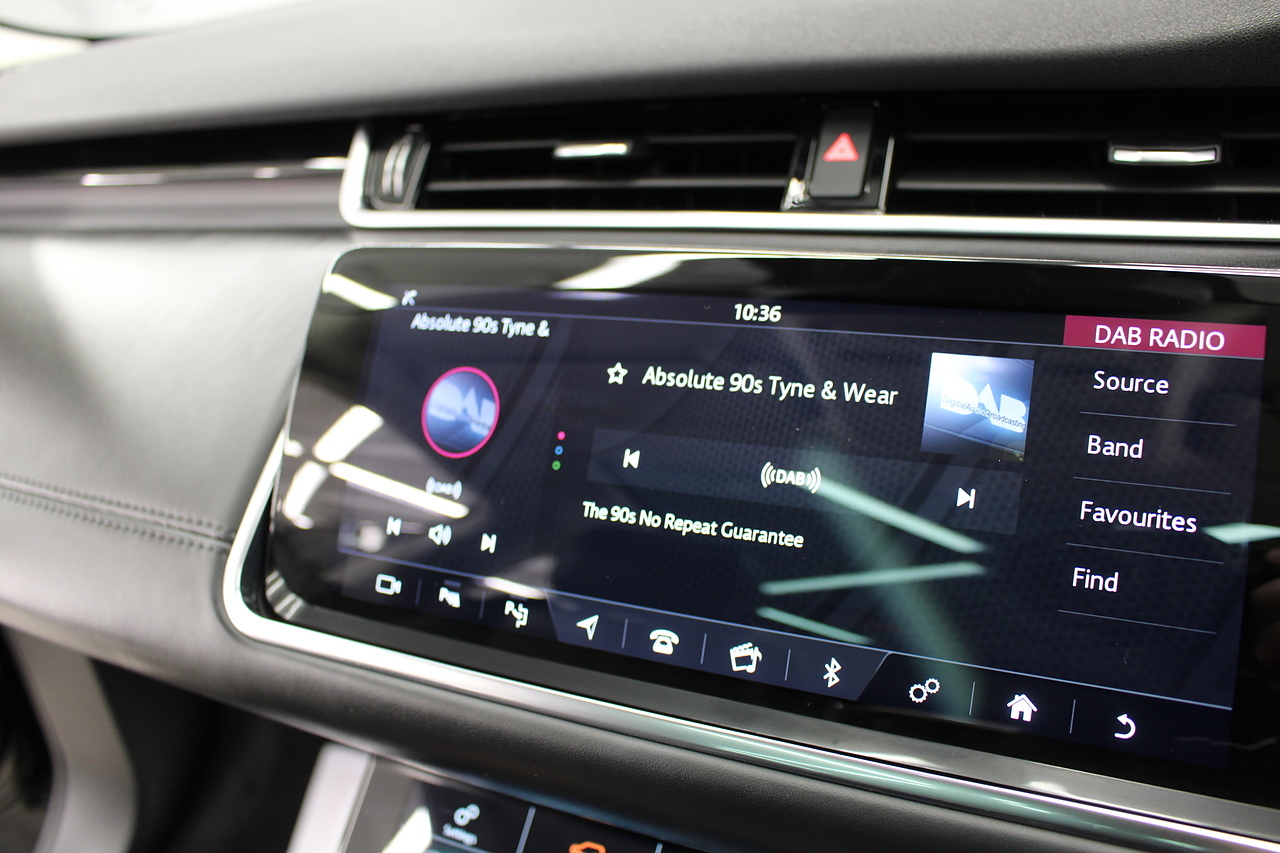 The interior is trimmed in high quality materials finished in black leather, with heated seats in the front, there is a large touch screen double display unit which features full colour screen with the bottom screen controlling the climate control, driving modes and vehicle settings, the top screen has DAB radio, bluetooth telephone connectivity, power tailgate and reverse parking camera. In summary, a very very desirable and great looking car. Low running costs, matched with Range Rovers awesome reputation for quality and innovation.