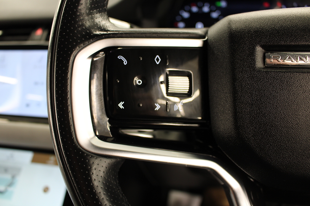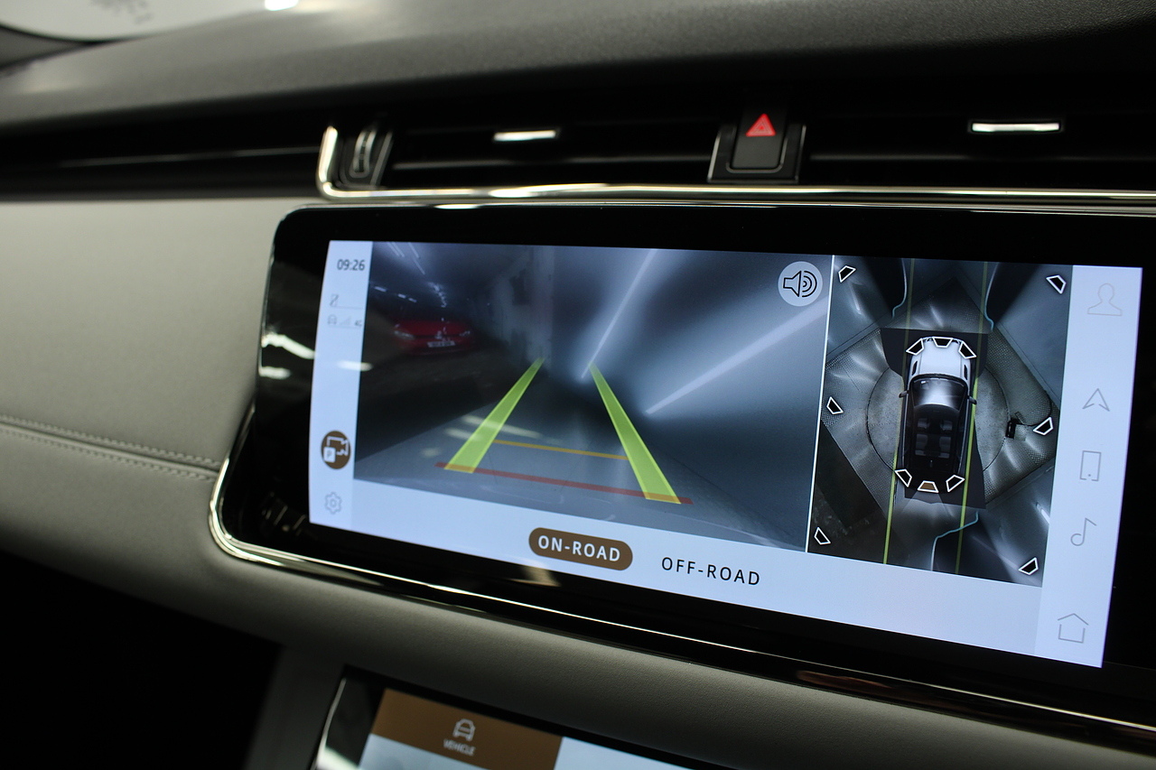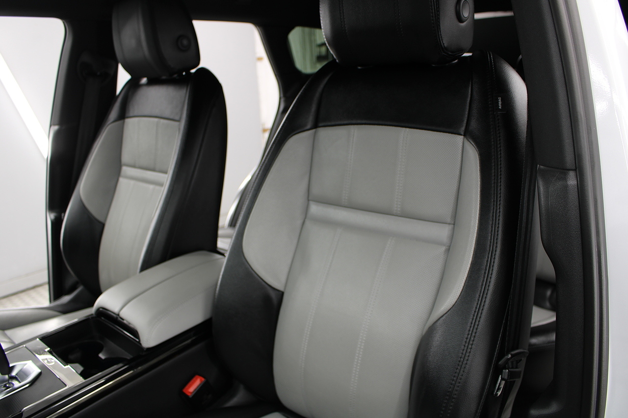 The interior is trimmed in high quality materials finished in black and grey leather, with heated seats in the front, there is a large touch screen double display unit which features full colour screen with the bottom screen controlling the climate control, driving modes and vehicle settings, the top screen has 3d satellite navigation, DAB radio, bluetooth telephone connectivity, power tailgate and reverse parking camera with top view camera. In summary, a very very desirable and great looking car. Low running costs, matched with Range Rovers awesome reputation for quality and innovation.
