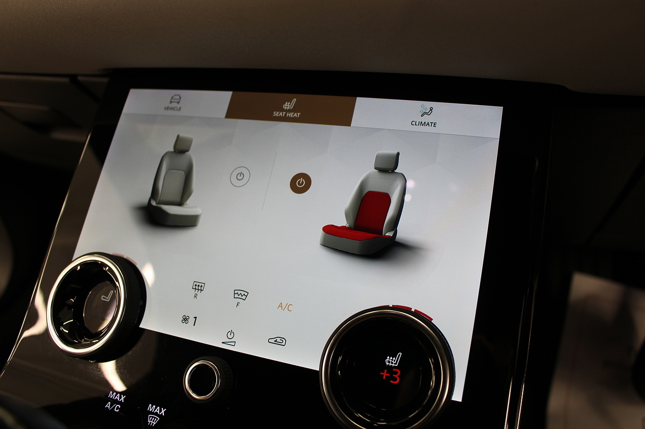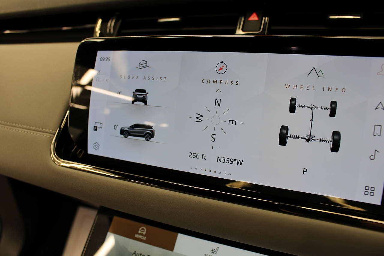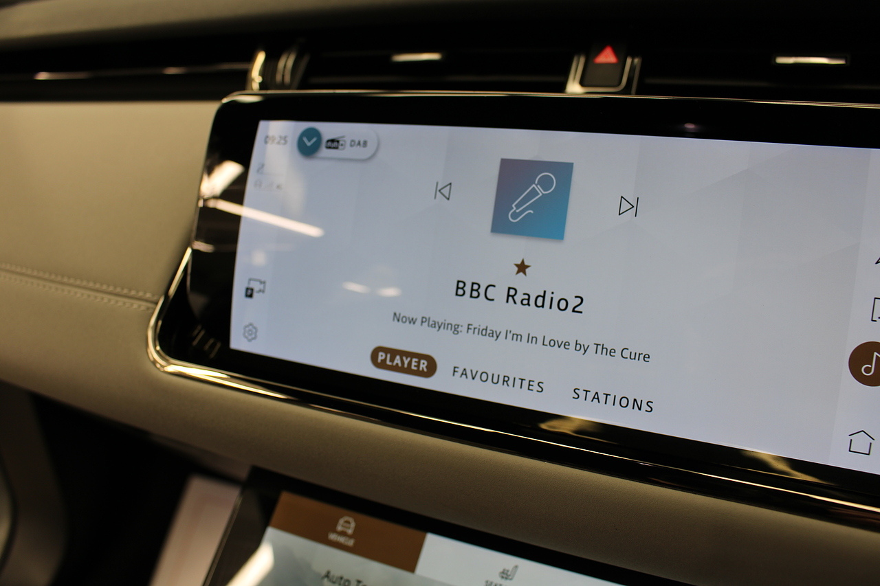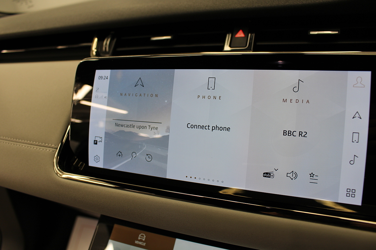 The interior is trimmed in high quality materials finished in black and grey leather, with heated seats in the front, there is a large touch screen double display unit which features full colour screen with the bottom screen controlling the climate control, driving modes and vehicle settings, the top screen has 3d satellite navigation, DAB radio, bluetooth telephone connectivity, power tailgate and reverse parking camera with top view camera. In summary, a very very desirable and great looking car. Low running costs, matched with Range Rovers awesome reputation for quality and innovation.