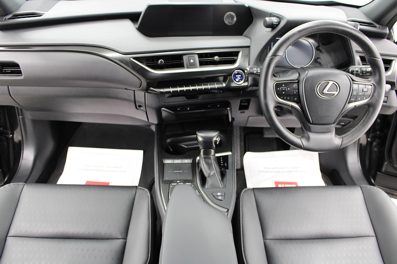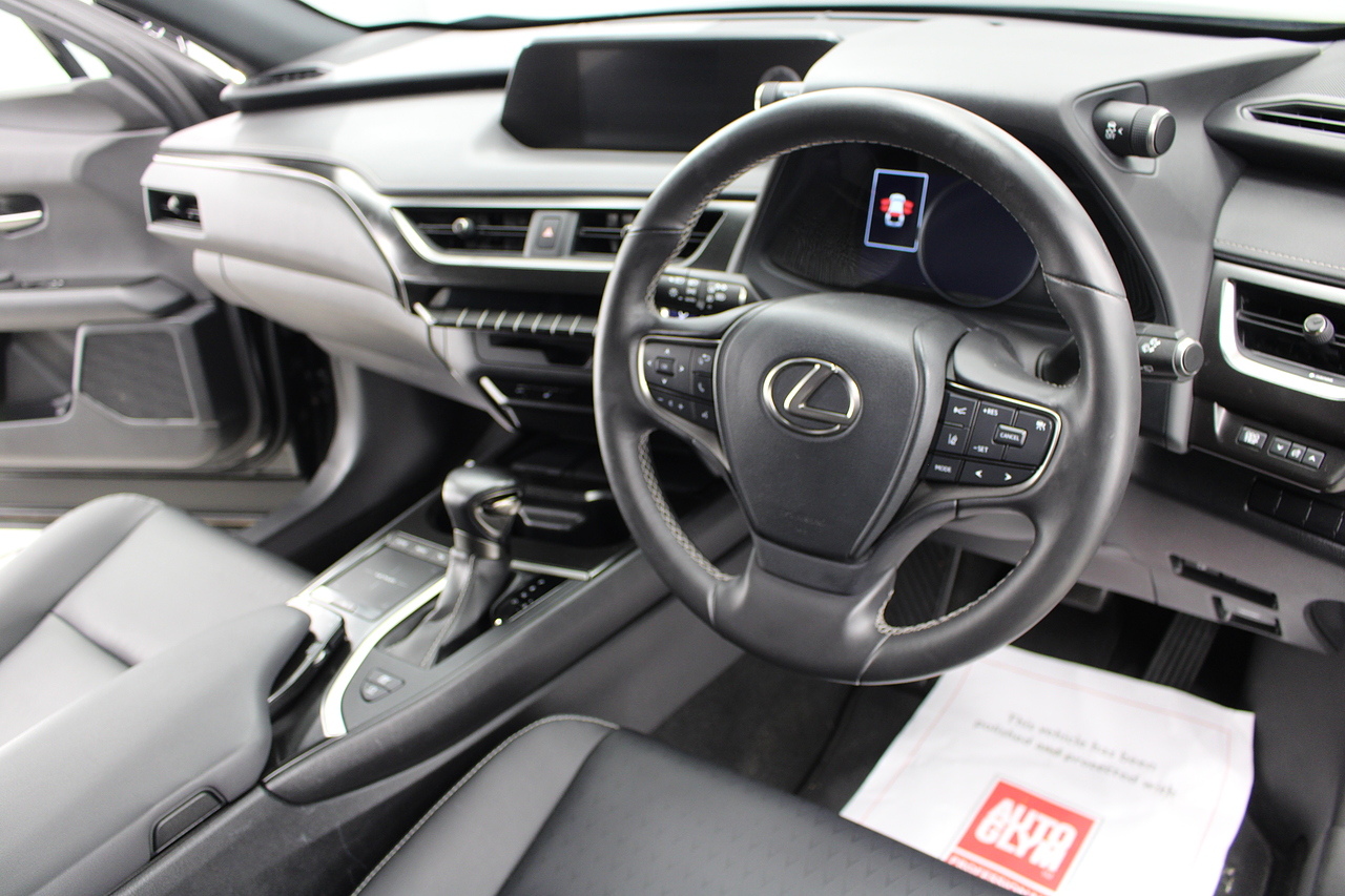 To the inside, you'll find the black leather interior with heated seats and steering wheel, the centre of the dashboard houses a large full colour screen display with your DAB radio, Bluetooth connections, front and rear parking sensors display in addition to the full colour rear camera, as well as satellite navigation function. Multifunction control steering wheel, which includes your cruise control as well as your onboard computer controls. The interior, as well as being full leather has the heated front seats.! The Lexus UX is something a little different in the SUV market, it offers a fantastic specification, amazing looks and a superb power-plant with the hybrid system, it certainly ticks all the boxes !!!