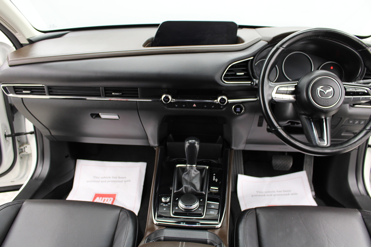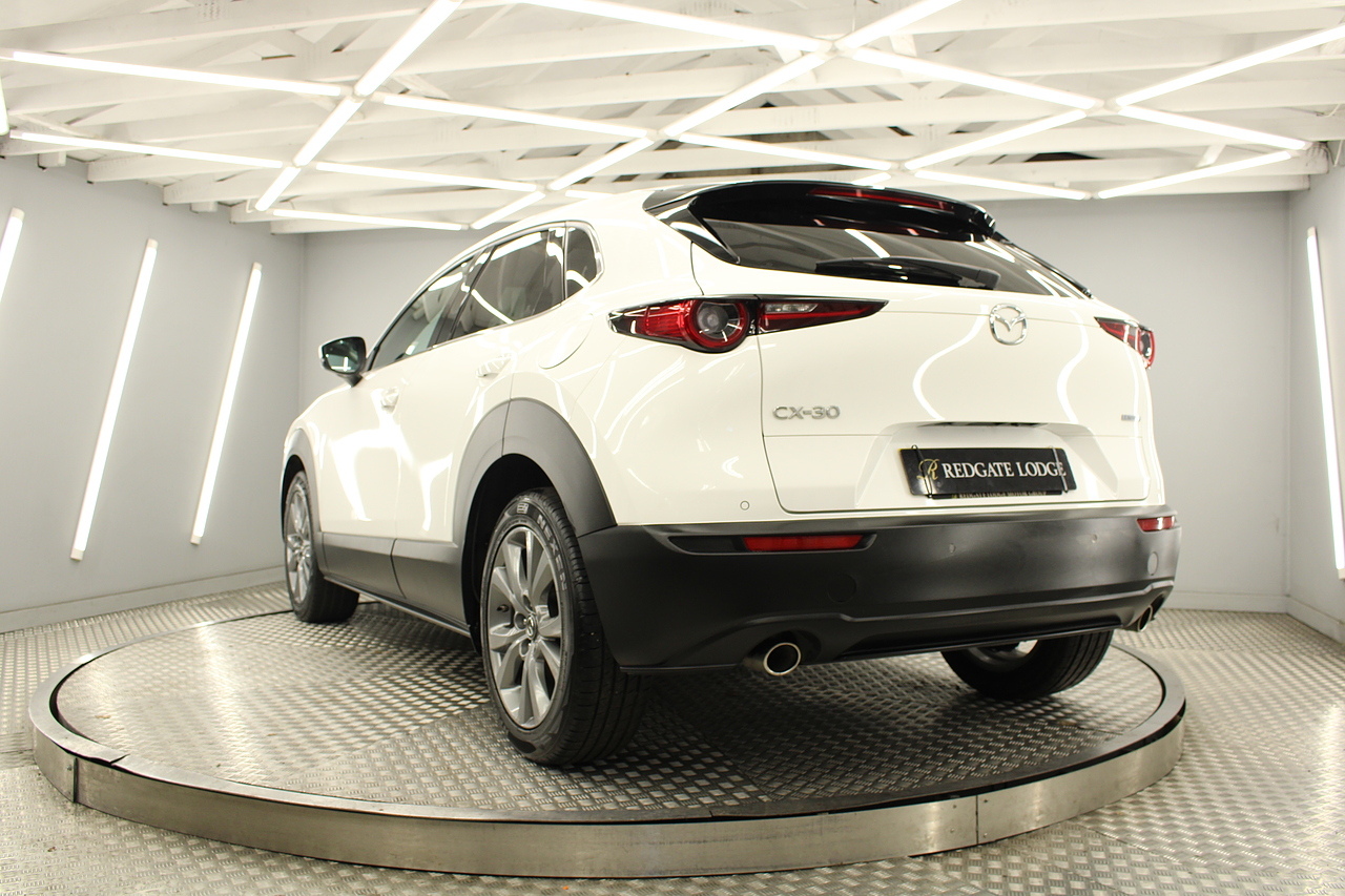 To the interior, you'll see the very comfortable and supportive sport styled seats trimmed in leather with heated front seats, Bluetooth connectivity, Sat Nav, full colour touch screen with DAB radio with Apple Car Play and Android Auto, as well as also benefitting from front and rear parking sensors and full colour reverse camera. The CX-30 is a brilliant contender for the popular Audi Q2, Hyundai Kona etc yet offers a lot more spec and more value.