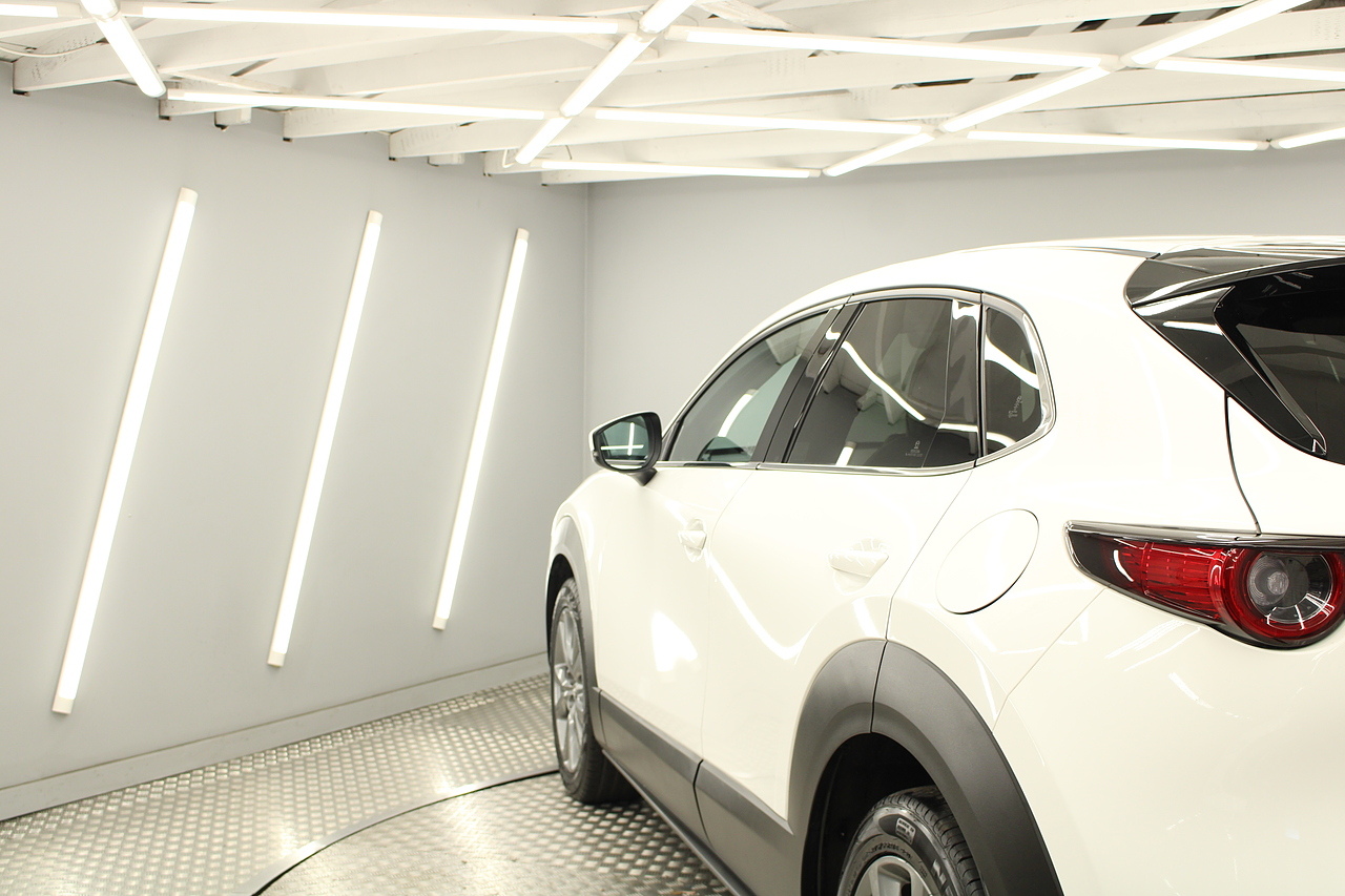 Finished in arctic white with sporty SUV body styling, 18'' wheels and privacy glass this Mazda is a real looker.