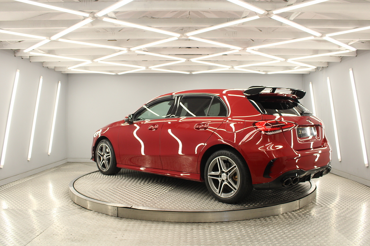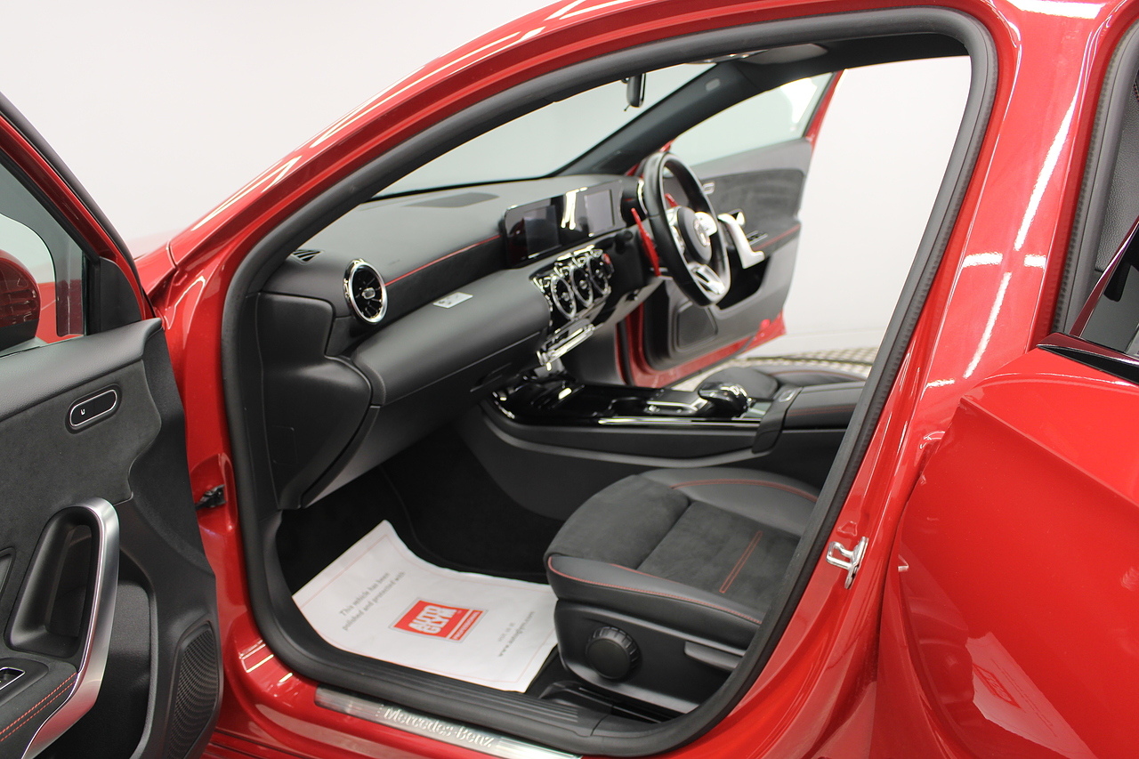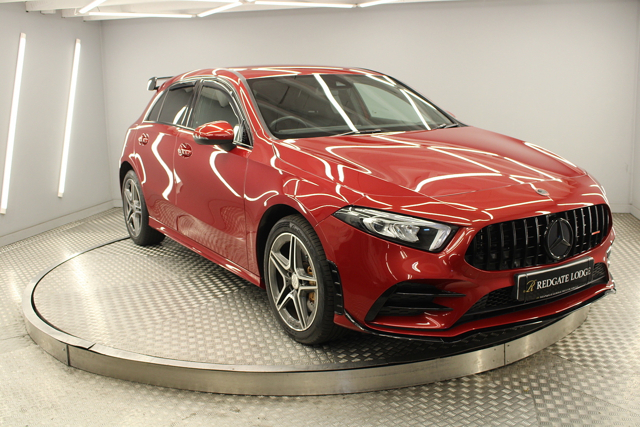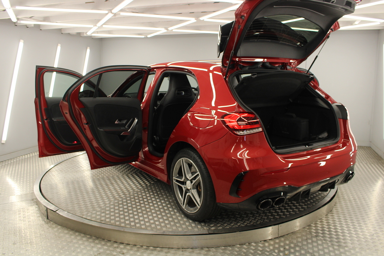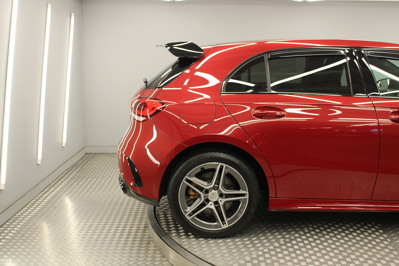 Finished in the beautiful Patagonia red with the 18'' AMG wheels, also comes equipped with the gloss black rear spoiler, styling additions and privacy glass, this sporty and stylish hatchback gives the buyer a refreshing change over the ever popular Audi A3 and BMW 1 series models.
