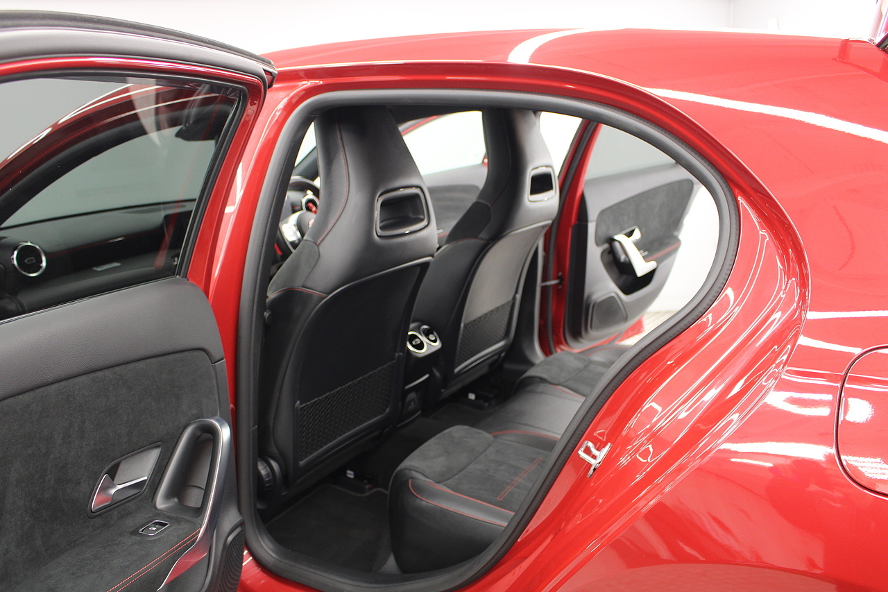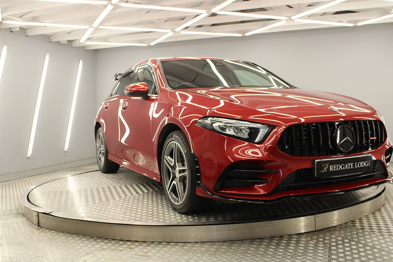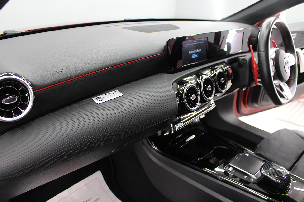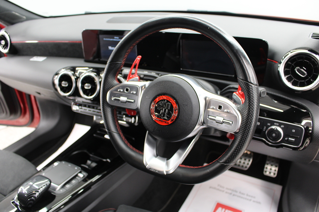 Finished in the beautiful Patagonia red with the 18'' AMG wheels, also comes equipped with the gloss black rear spoiler, styling additions and privacy glass, this sporty and stylish hatchback gives the buyer a refreshing change over the ever popular Audi A3 and BMW 1 series models.