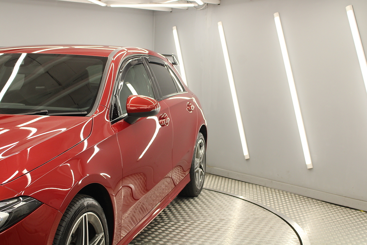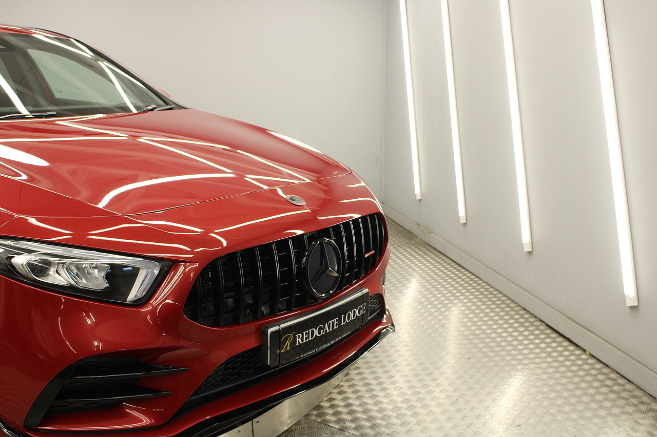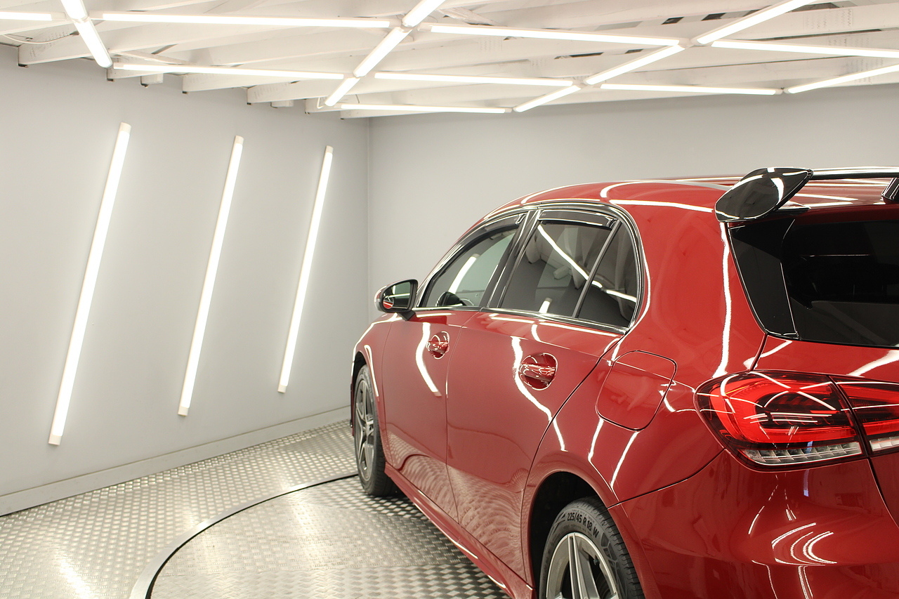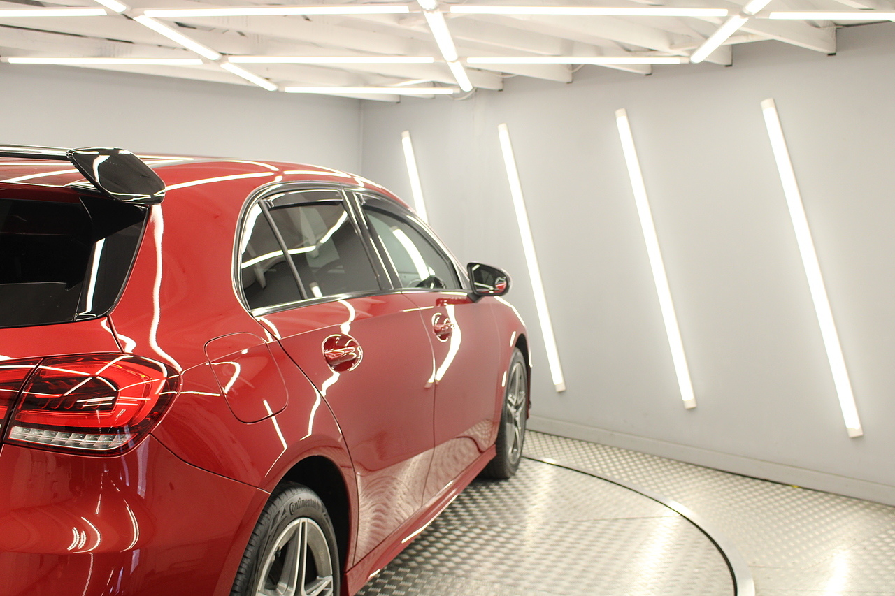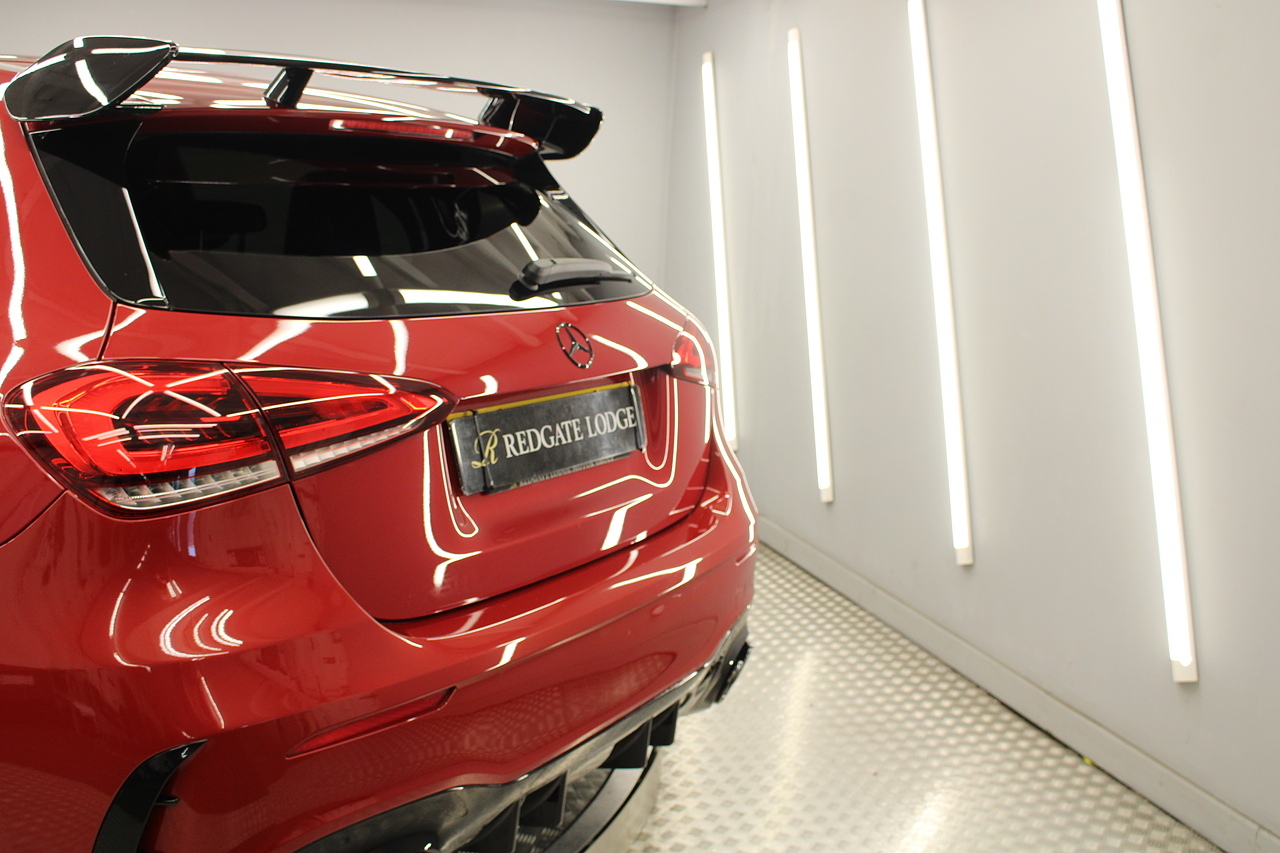 Finished in the beautiful Patagonia red with the 18'' AMG wheels, also comes equipped with the gloss black rear spoiler, styling additions and privacy glass, this sporty and stylish hatchback gives the buyer a refreshing change over the ever popular Audi A3 and BMW 1 series models.