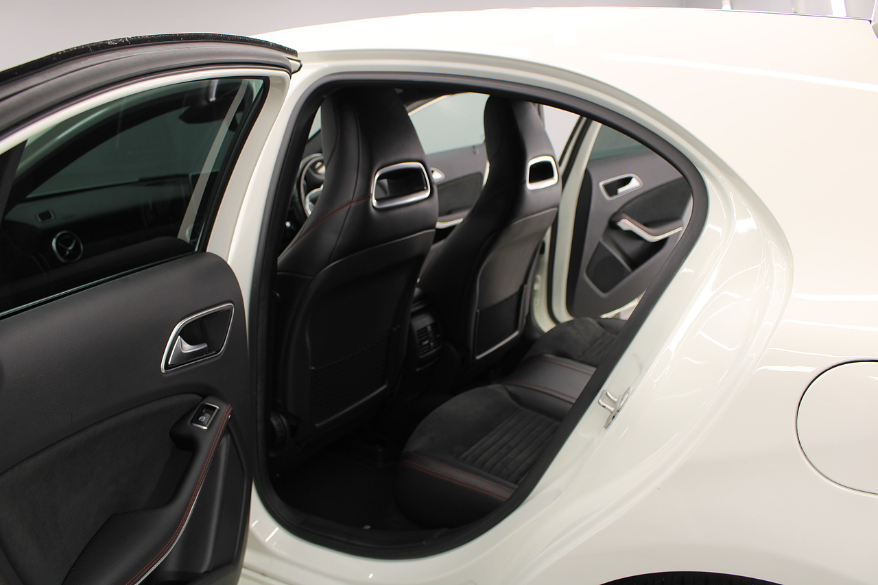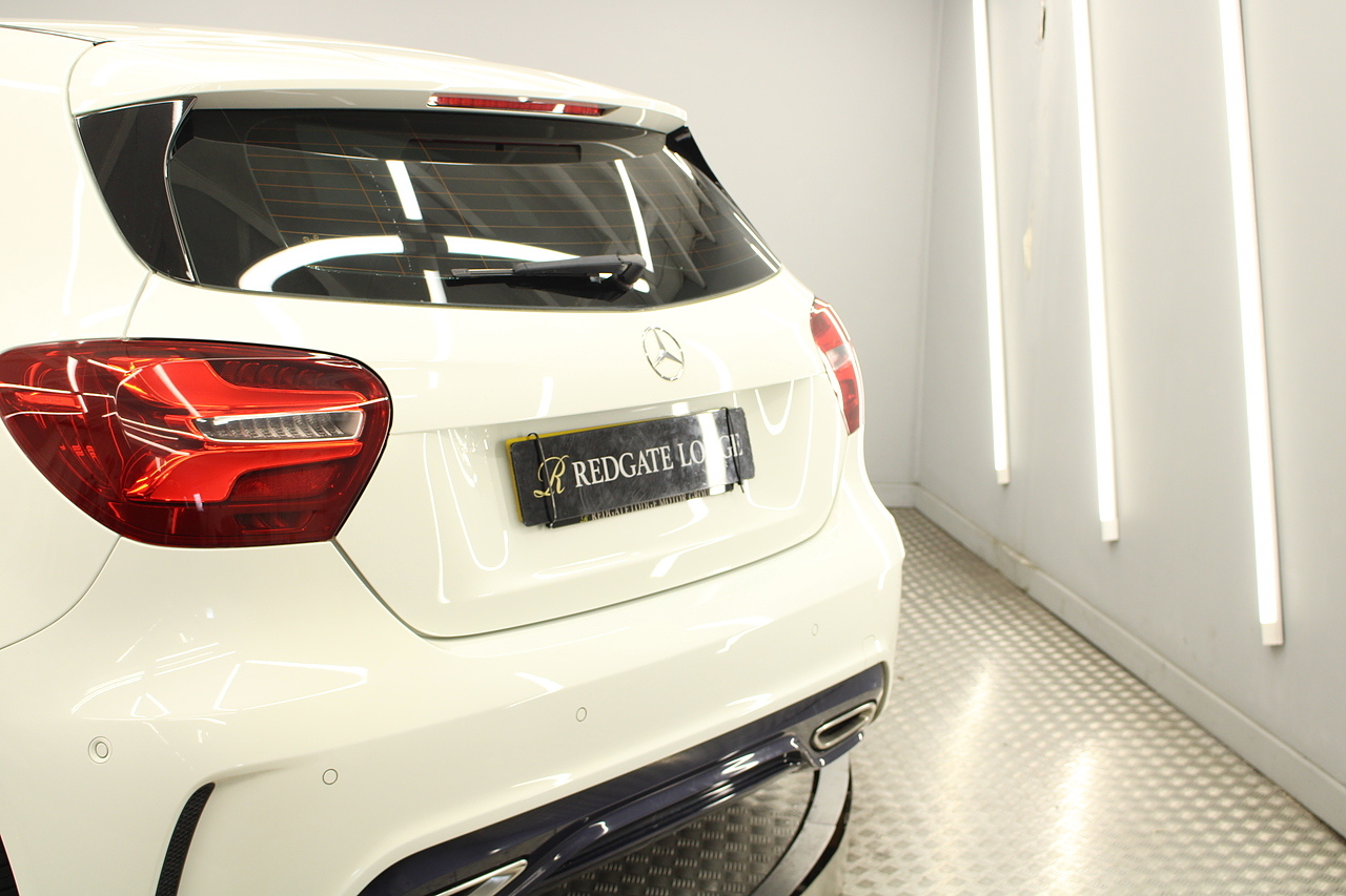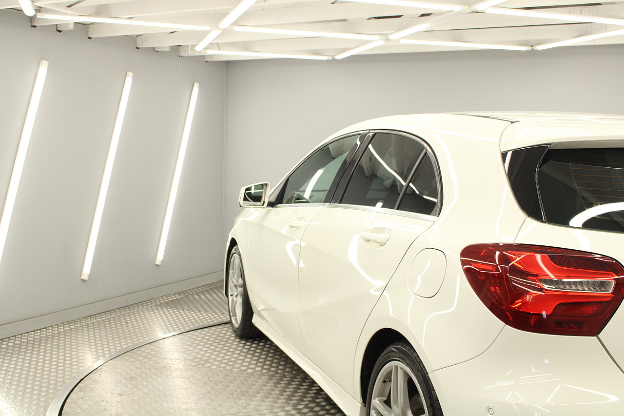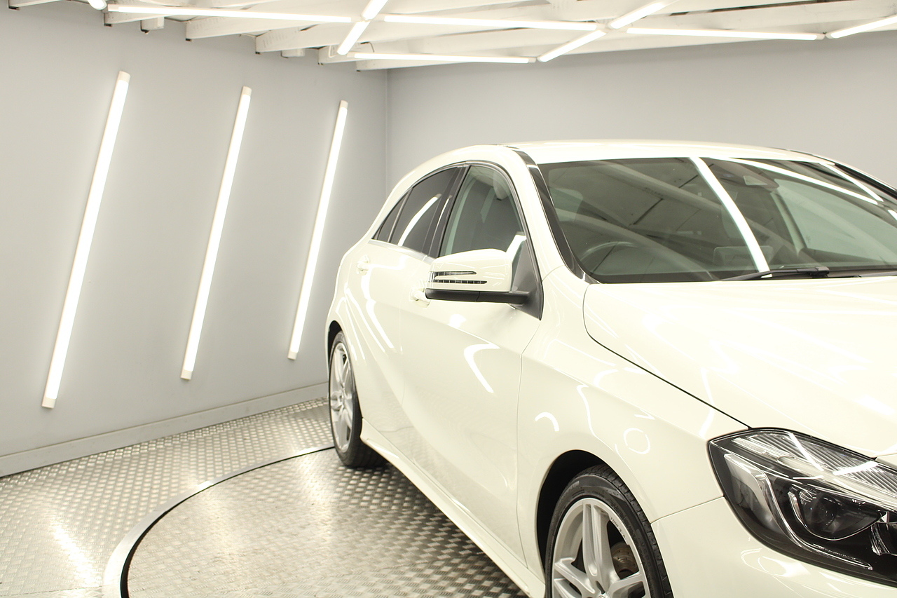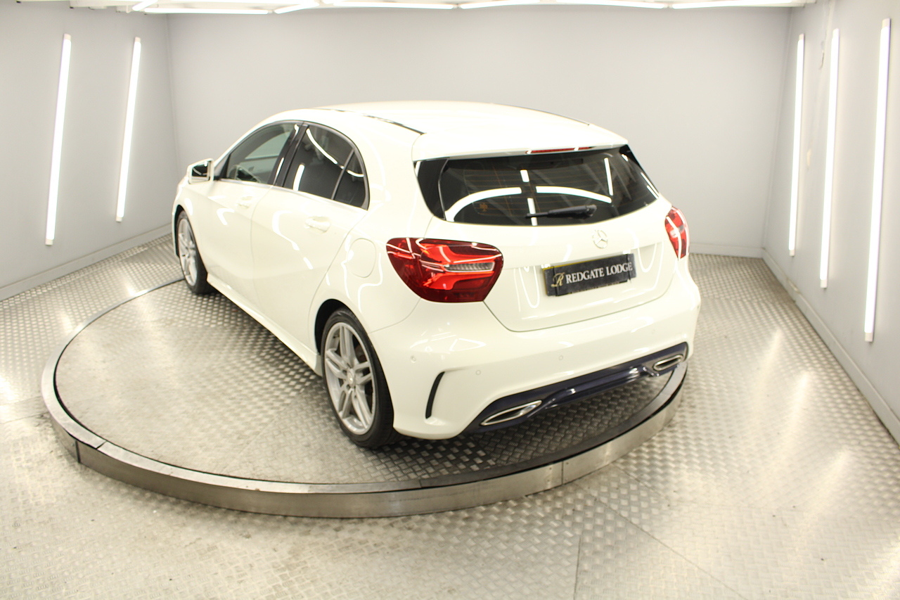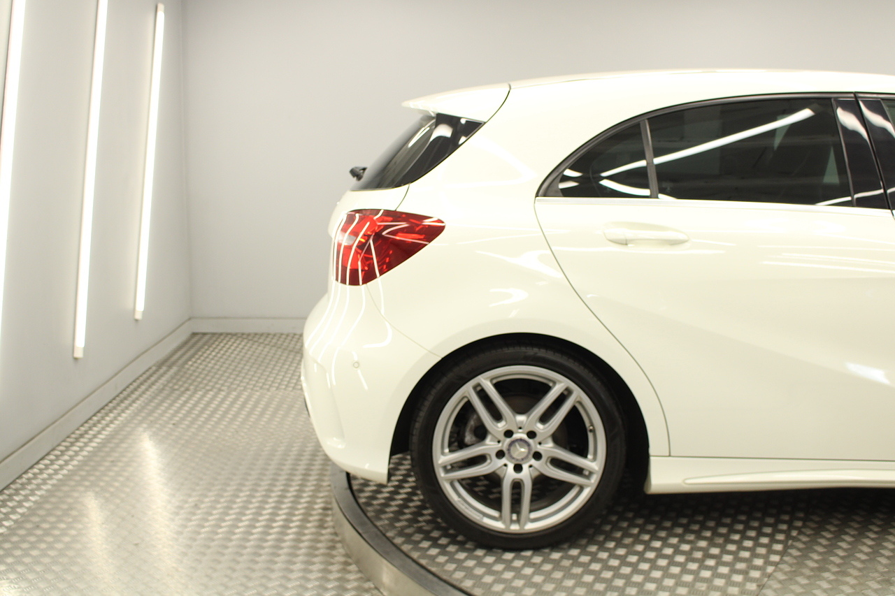 To the inside premium materials are used as you'd expect, with supportive and seats trimmed in black artico leather and alcantara with heated seats, the centre of the dash houses a large full colour screen located in the middle of the dash with satellite navigation, reverse parking camera display, FM radio, Bluetooth connectivity with audio streaming, and also cruise control, this generation of the Mercedes Benz A Class is sleeker and longer, with styling that could turn the heads of traditional Volkswagen Golf buyers.