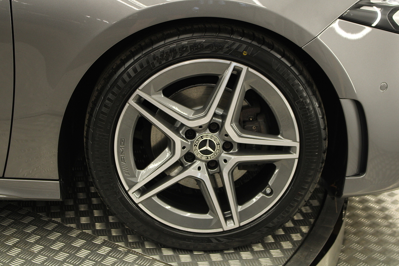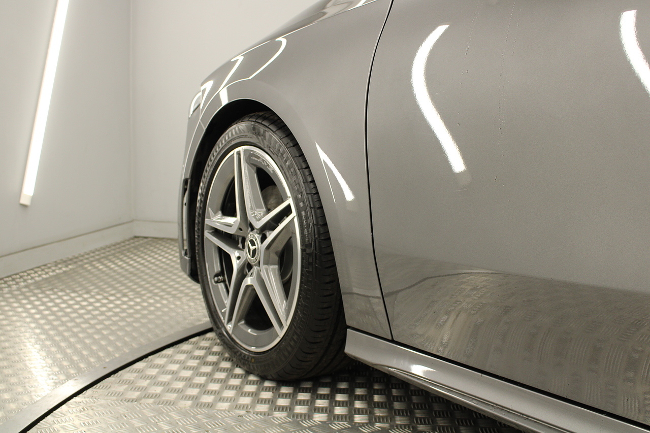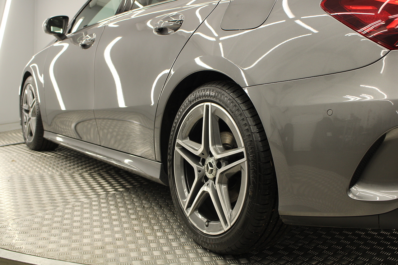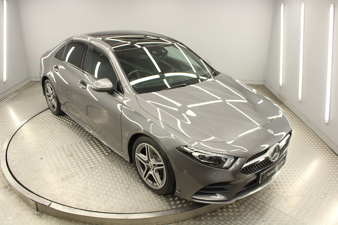 Finished in the beautiful mountain grey with the 18'' AMG wheels and panoramic sunroof, this sporty and stylish saloon gives the buyer a refreshing change over the ever popular Audi A3 saloon and BMW 2 series models.