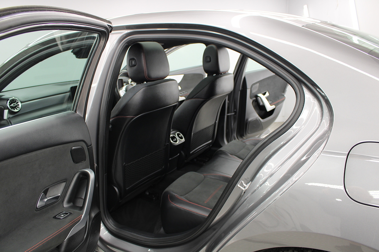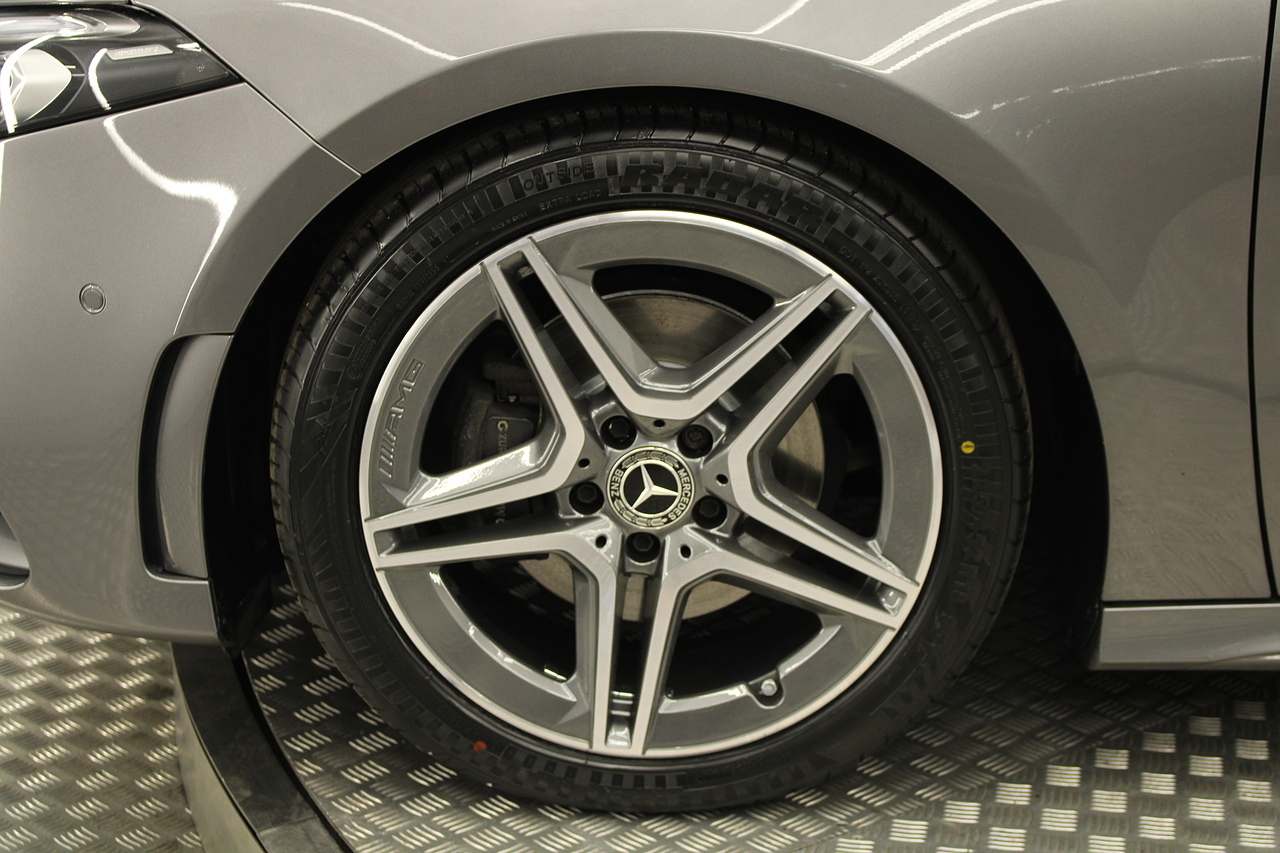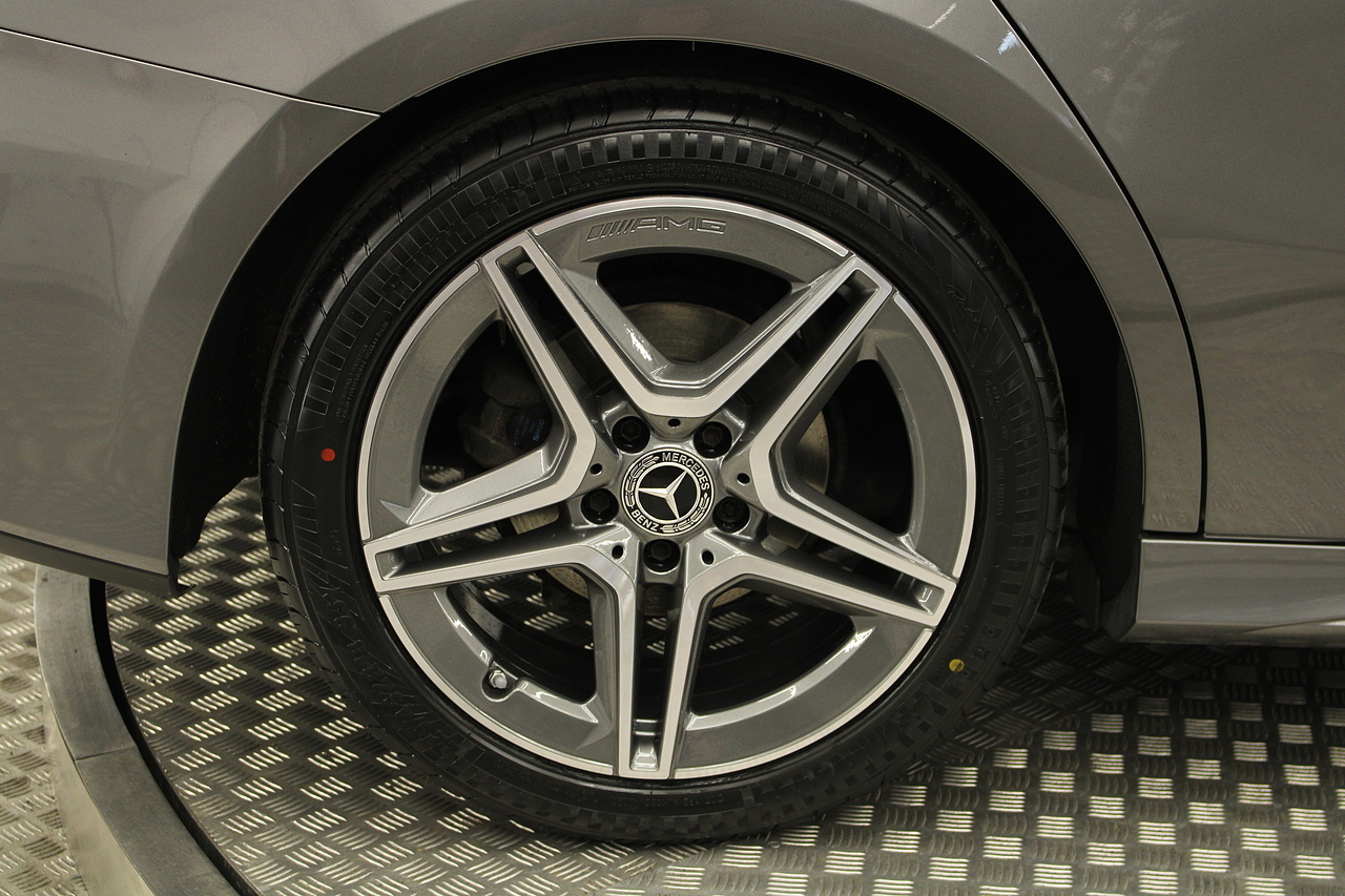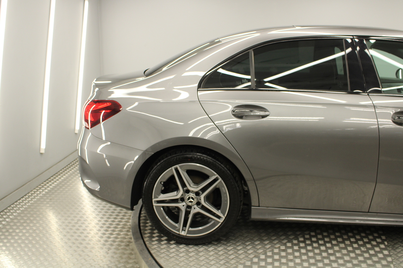 Finished in the beautiful mountain grey with the 18'' AMG wheels and panoramic sunroof, this sporty and stylish saloon gives the buyer a refreshing change over the ever popular Audi A3 saloon and BMW 2 series models.