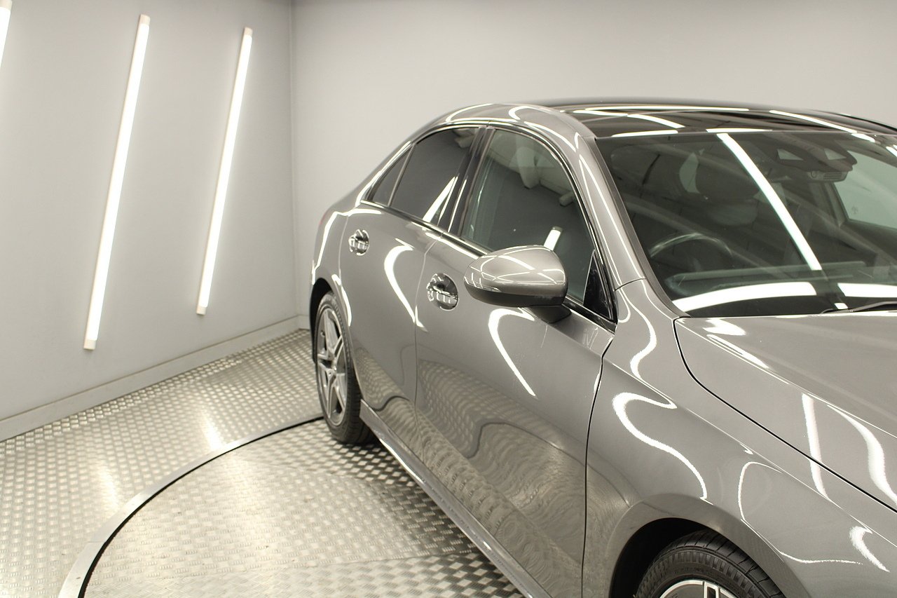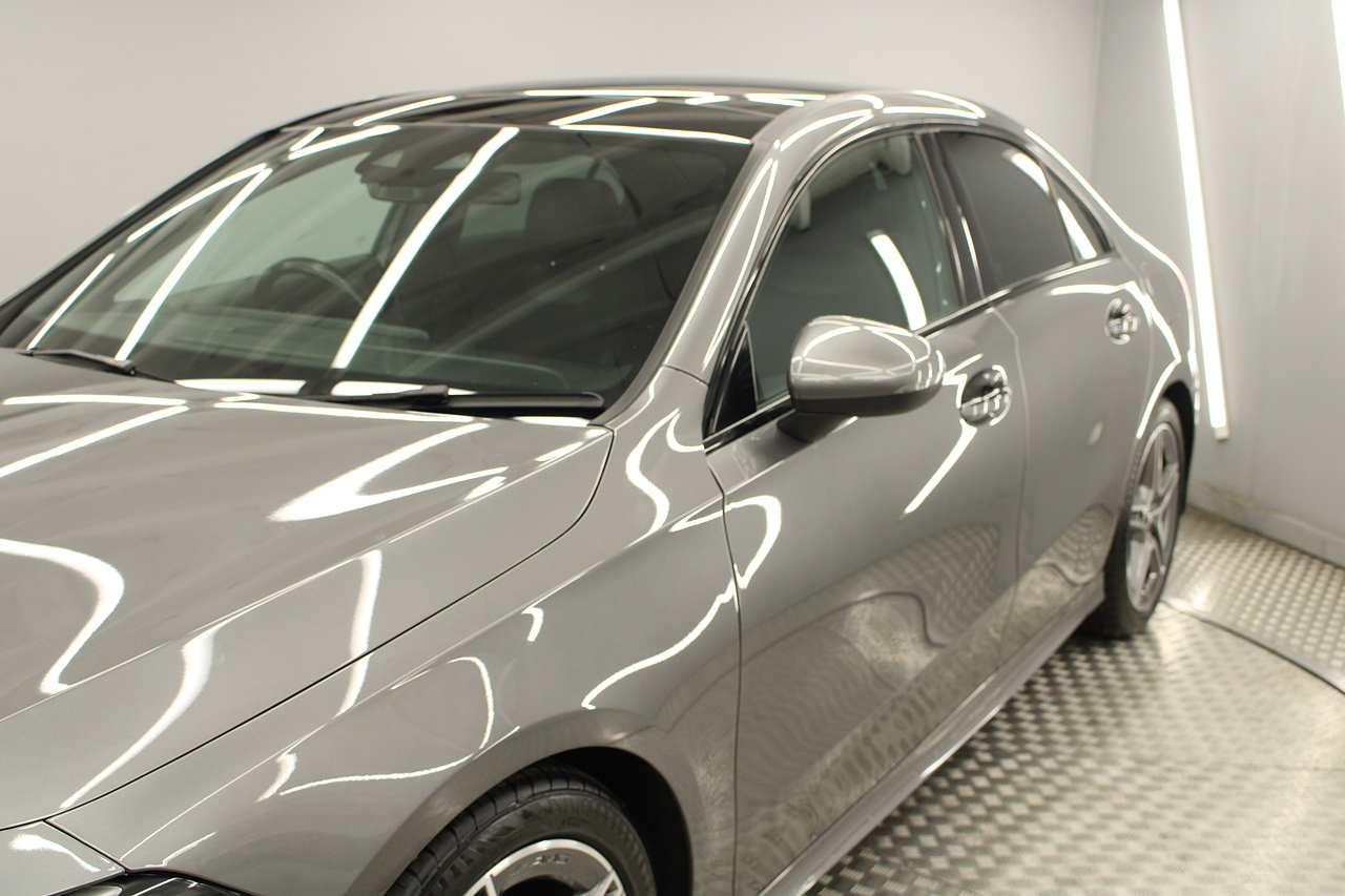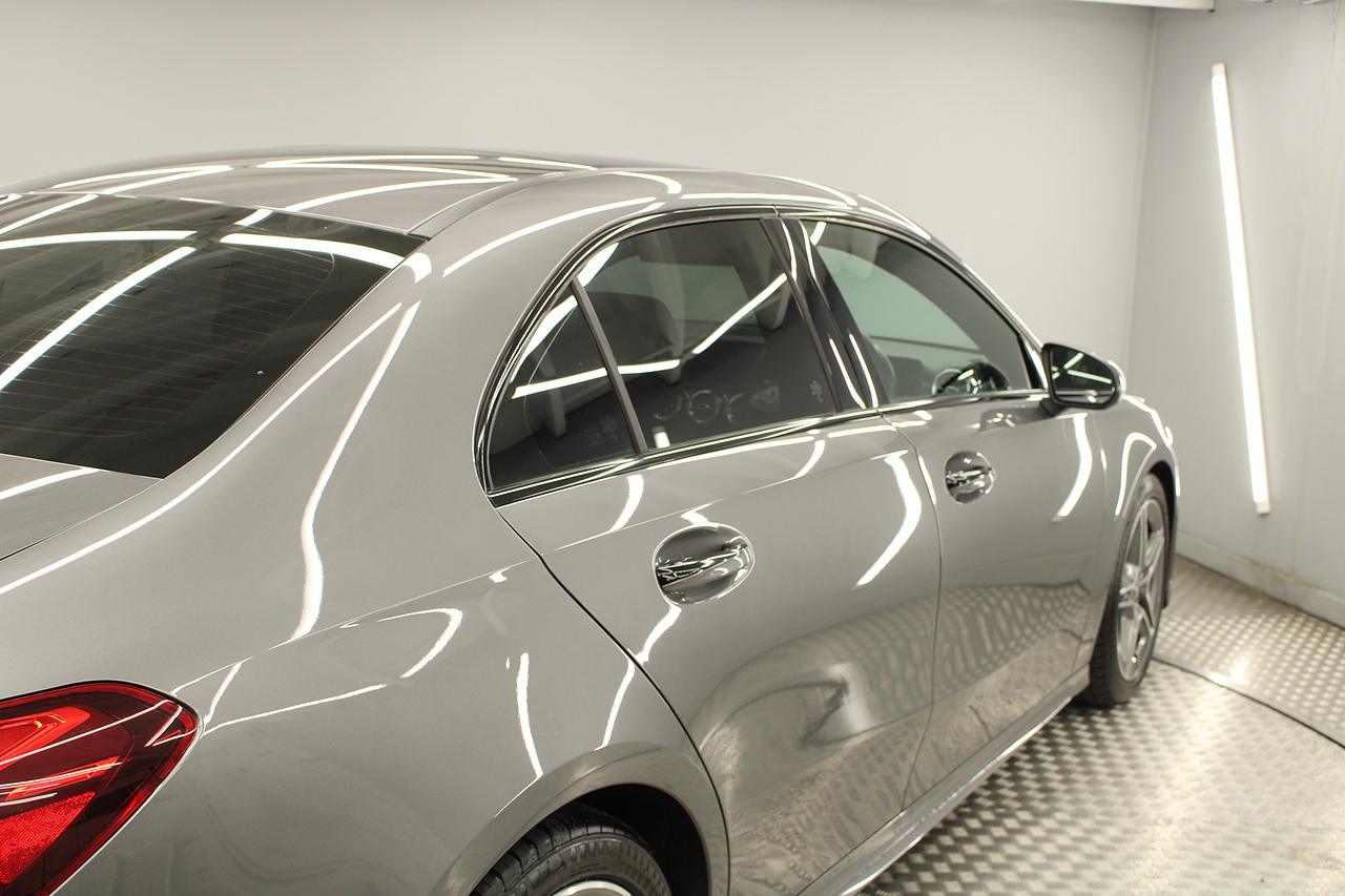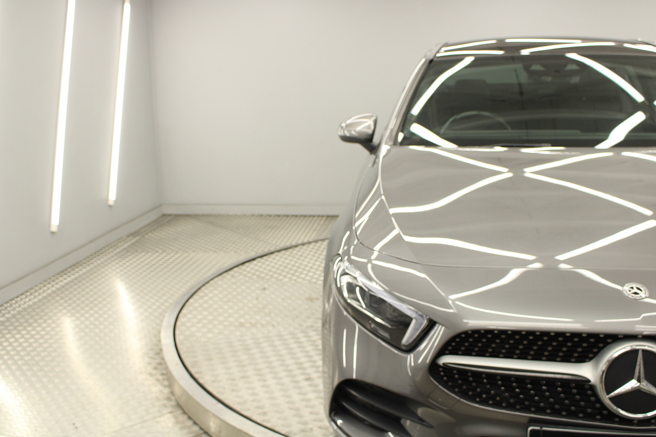 Finished in the beautiful mountain grey with the 18'' AMG wheels and panoramic sunroof, this sporty and stylish saloon gives the buyer a refreshing change over the ever popular Audi A3 saloon and BMW 2 series models.