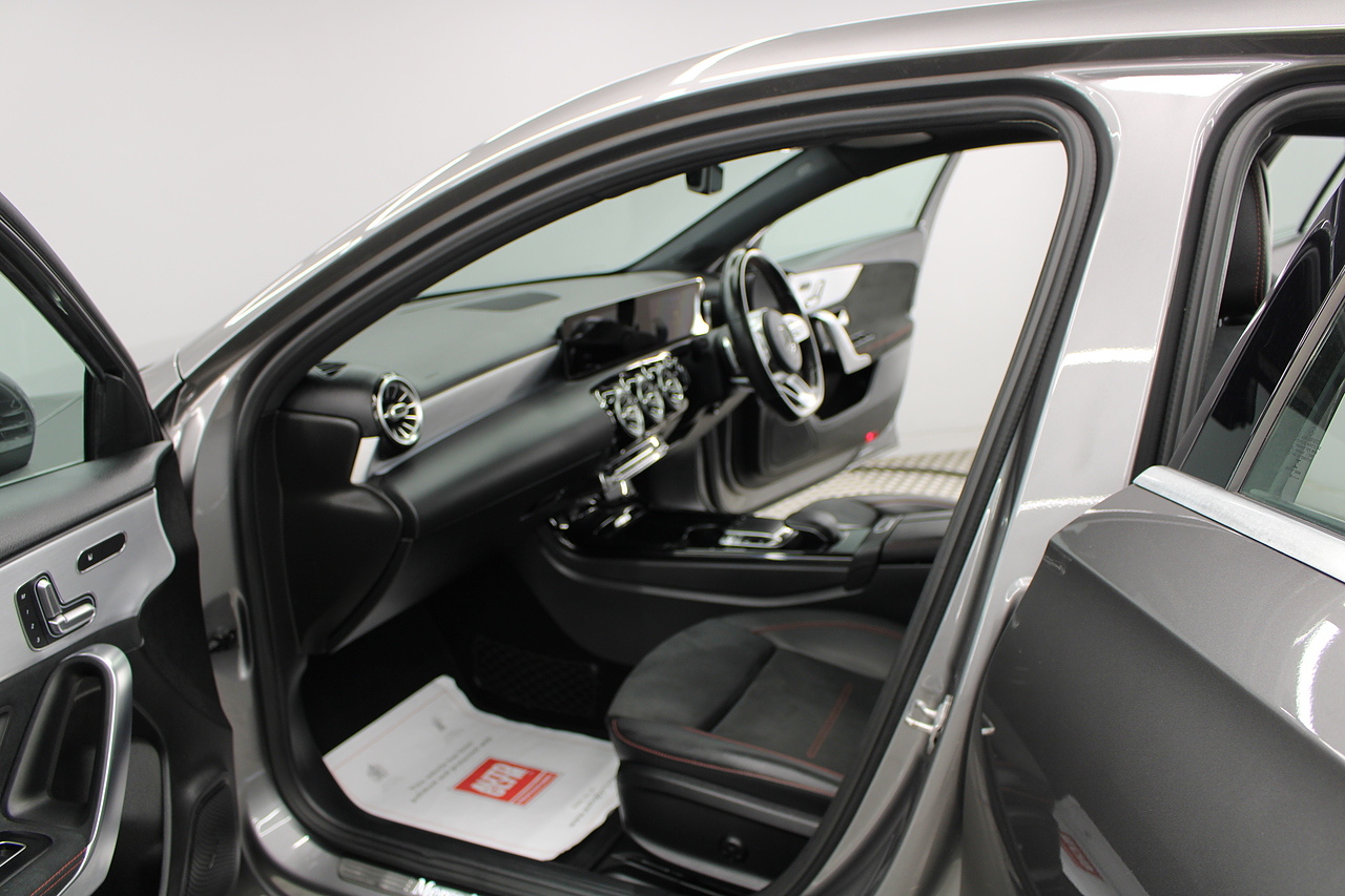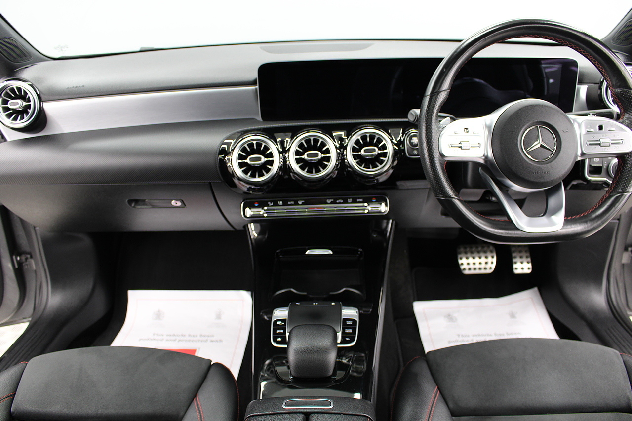 This is our great looking 2019 Mercedes-Benz A Class A180d Saloon AMG Line Premium Plus. This particular model is the economical diesel engine powered 1.5 model producing 114 BHP, This A Class can manage an excellent average MPG of 64 up to an amazing 74 on a motorway journey.