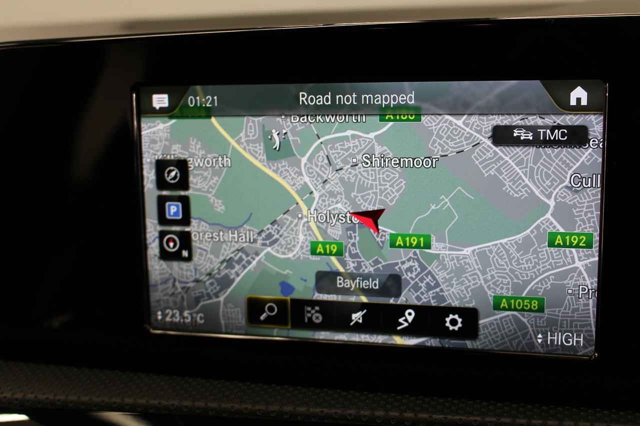 This A class does come with heated leather and alcantara sports seats with rear ISOFIX anchorage points, quality entertainment system with a lovely large display screen, DAB radio, Bluetooth preparation, headlight and rain sensors, heated and electric door mirrors, rear camera, steering wheel mounted controls, digital dash, air conditioning, daytime running lights, the previous two generations' MPV like, high roofed looks, the third iteration of the Mercedes Benz A Class is sleeker and longer, with styling that could turn the heads of traditional Volkswagen Golf buyers.