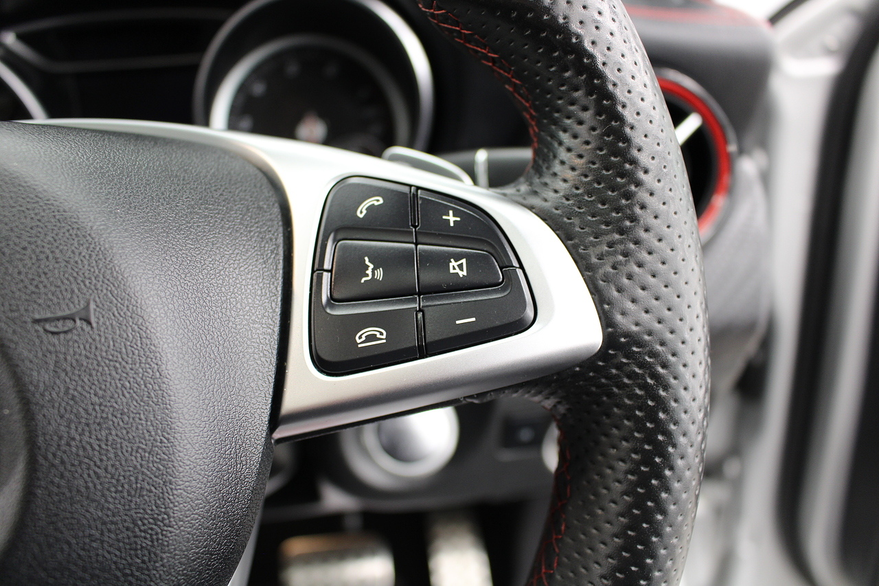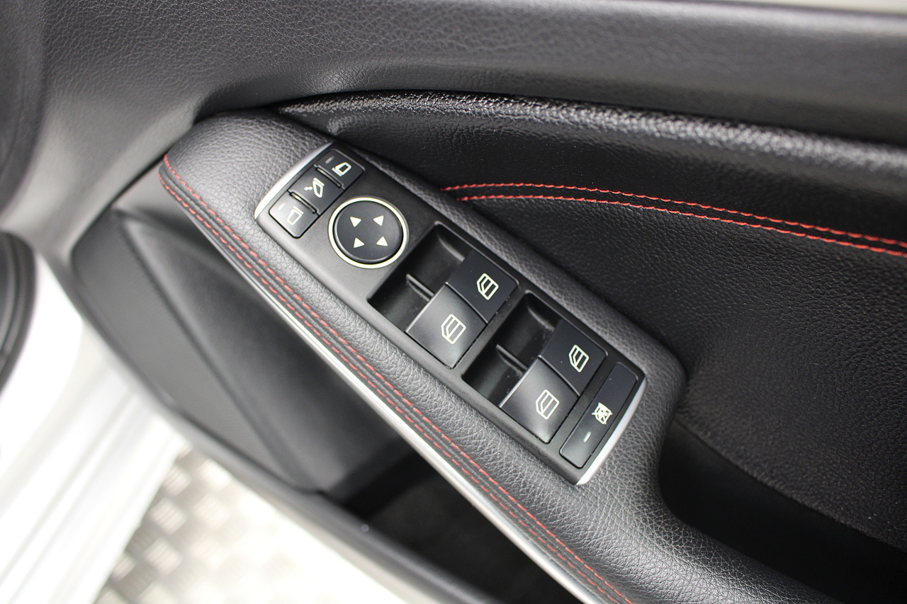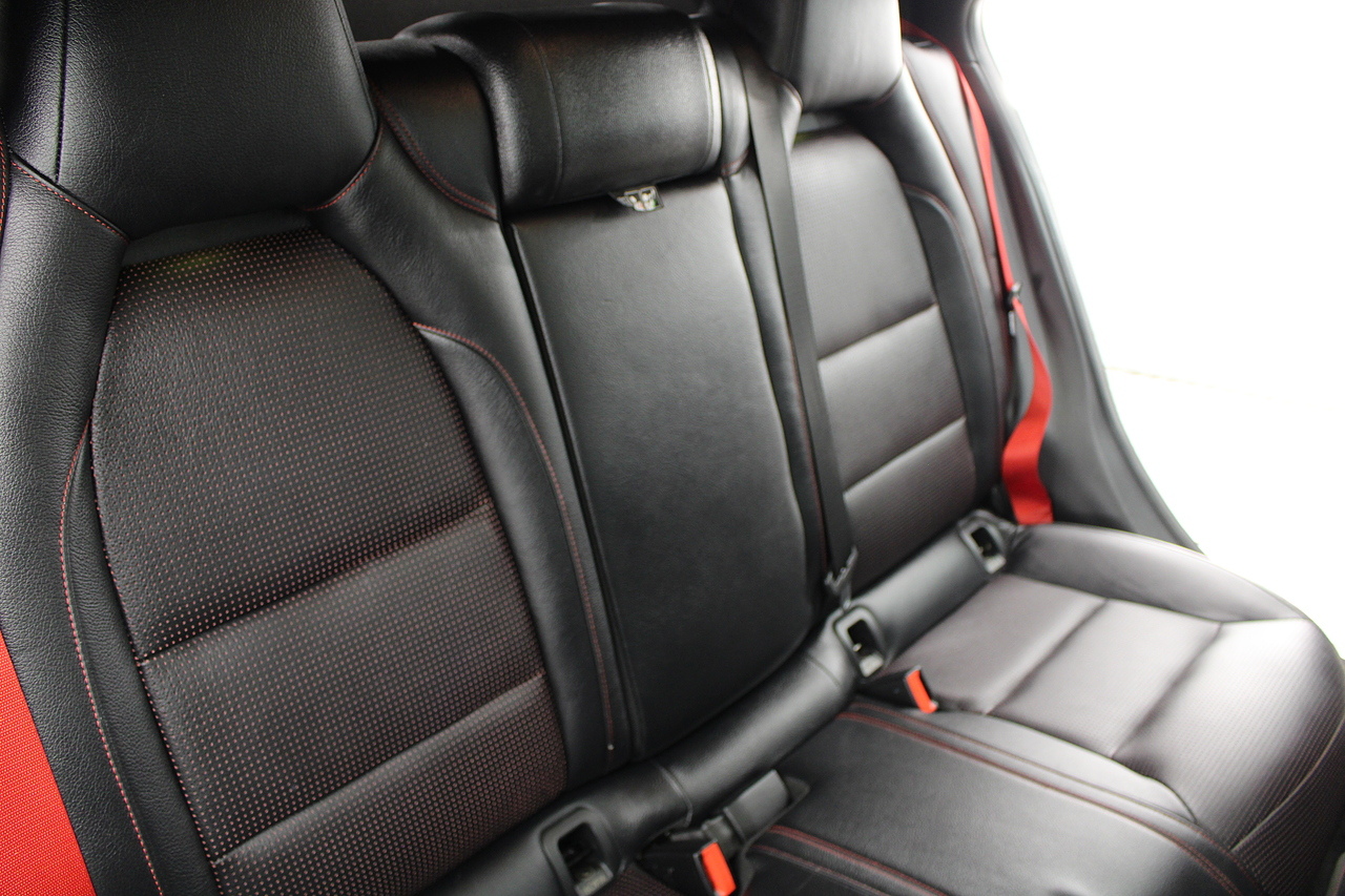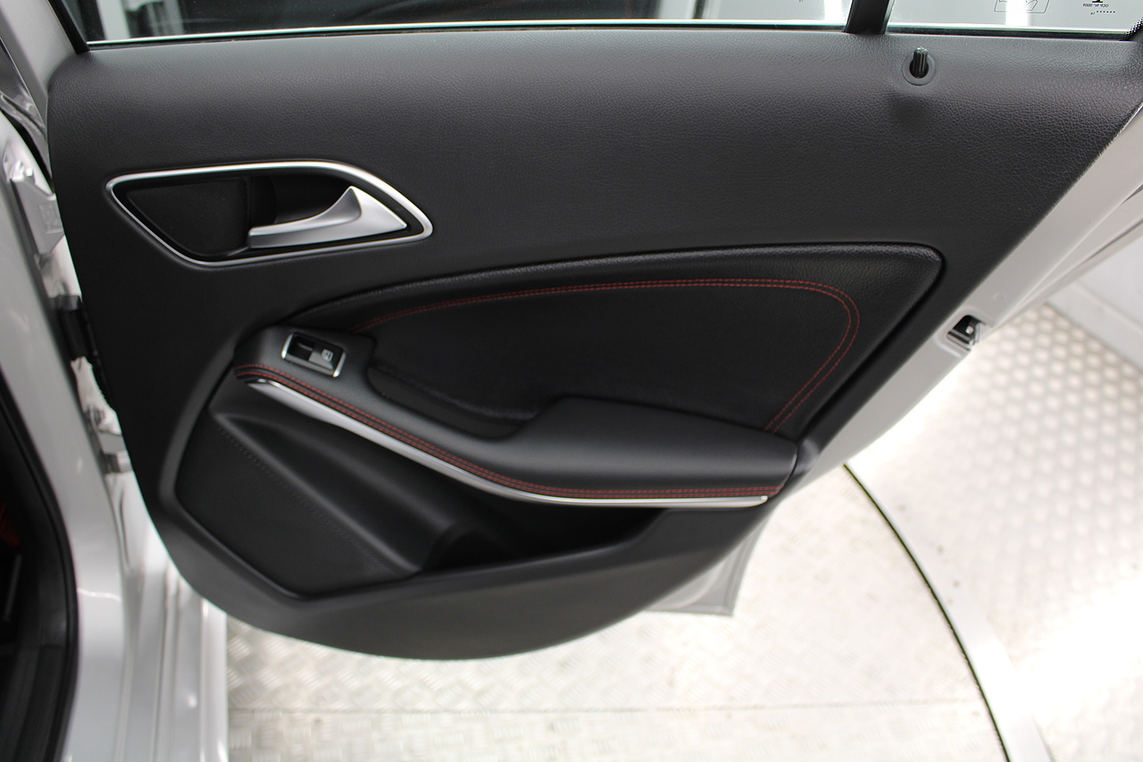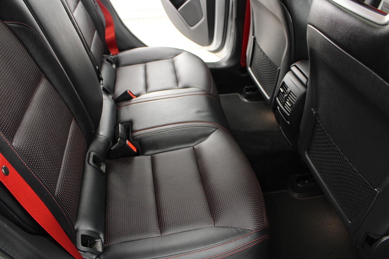 To the inside premium materials are used as you'd expect, with supportive and seats trimmed in the upgraded black leather with red perforations, with the front seats being heated, the centre of the dash houses a large full colour screen located in the middle of the dash with satellite navigation, reverse parking camera display, FM radio, Bluetooth connectivity with audio streaming, and also cruise control, this generation of the Mercedes Benz A Class is sleeker and longer, with styling that could turn the heads of traditional Volkswagen Golf buyers.