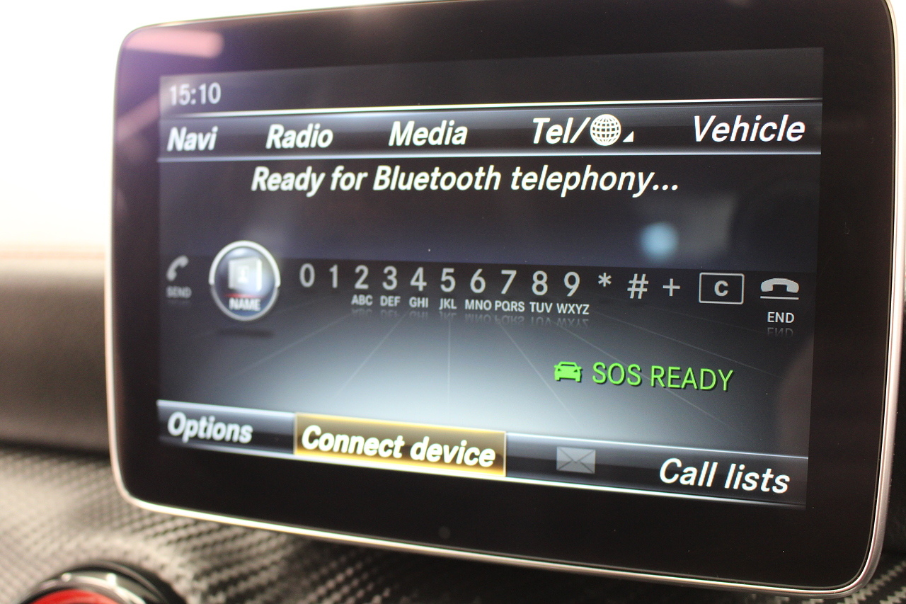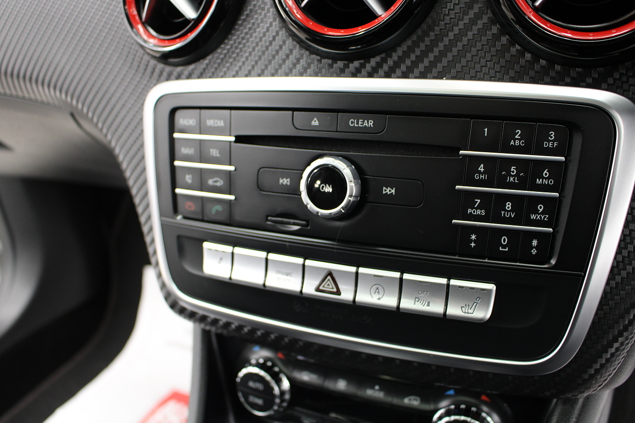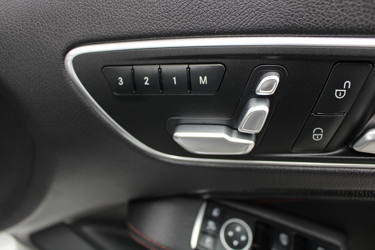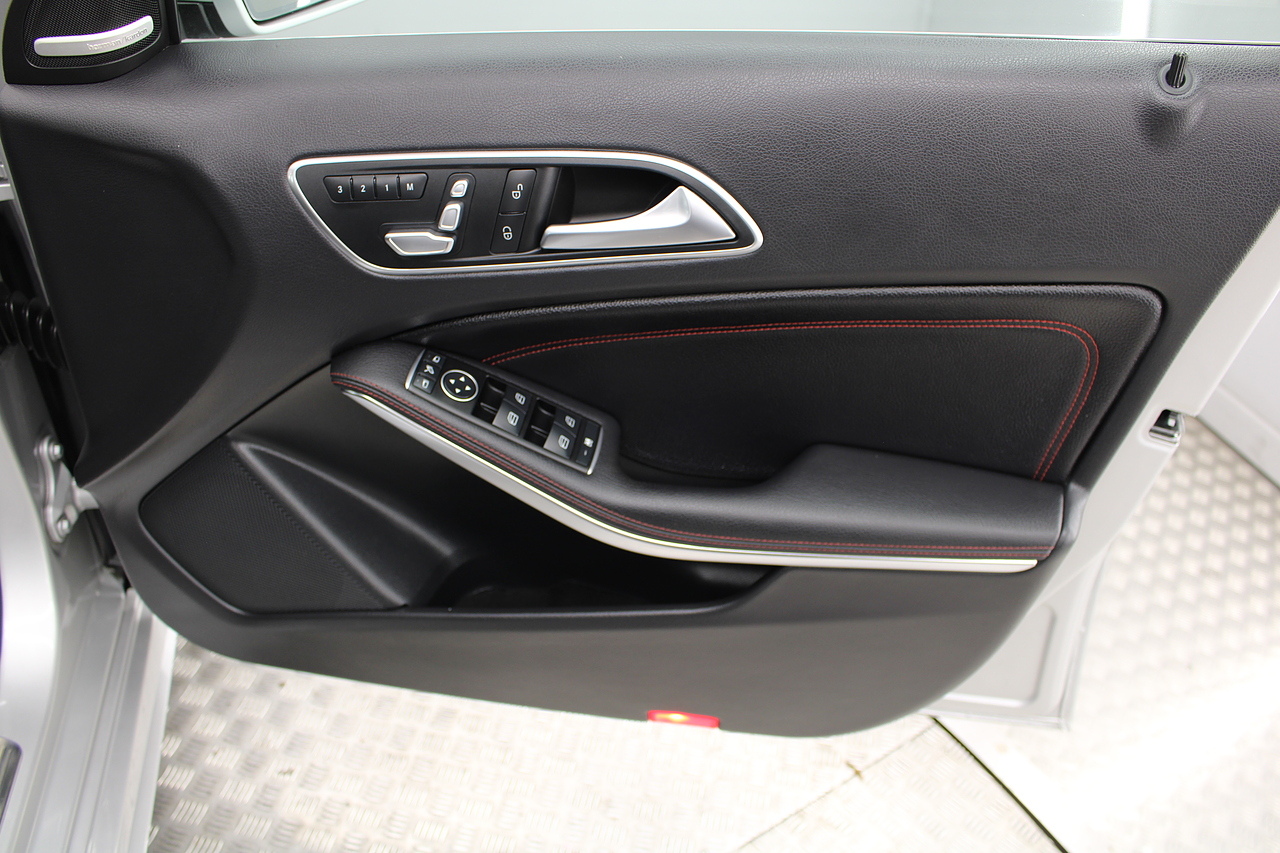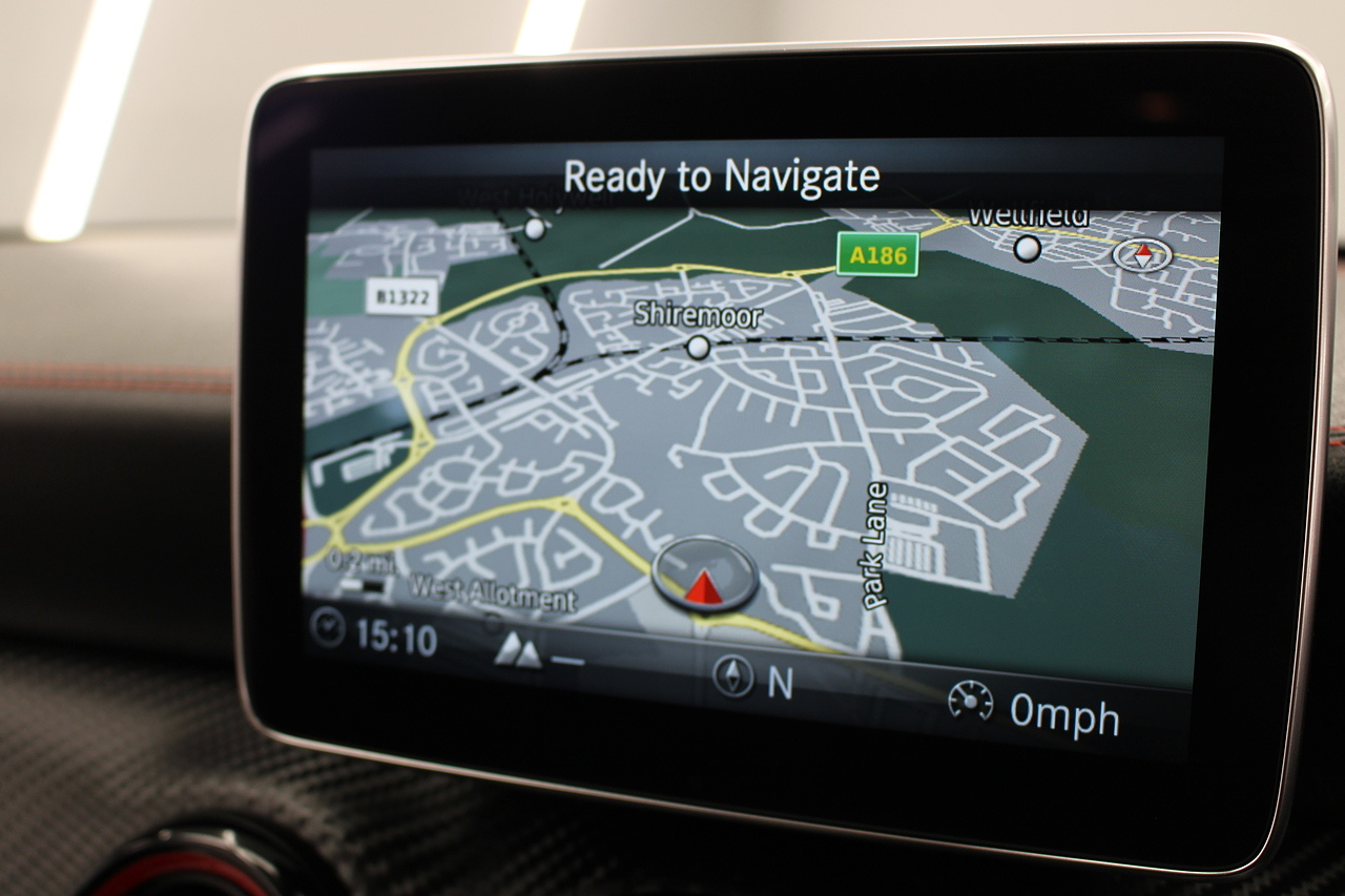 To the inside premium materials are used as you'd expect, with supportive and seats trimmed in the upgraded black leather with red perforations, with the front seats being heated, the centre of the dash houses a large full colour screen located in the middle of the dash with satellite navigation, reverse parking camera display, FM radio, Bluetooth connectivity with audio streaming, and also cruise control, this generation of the Mercedes Benz A Class is sleeker and longer, with styling that could turn the heads of traditional Volkswagen Golf buyers.