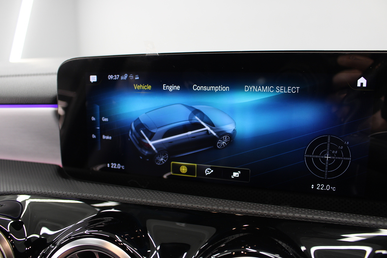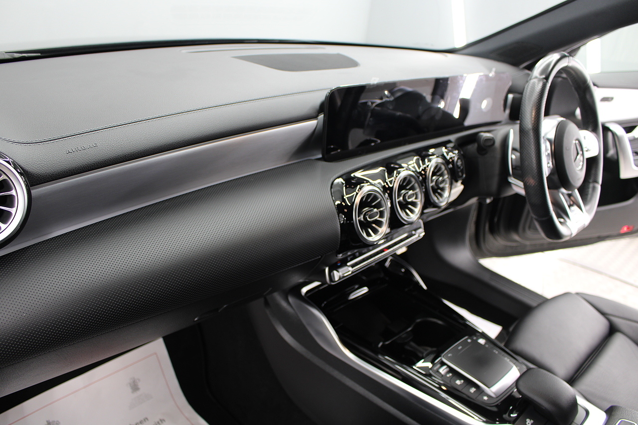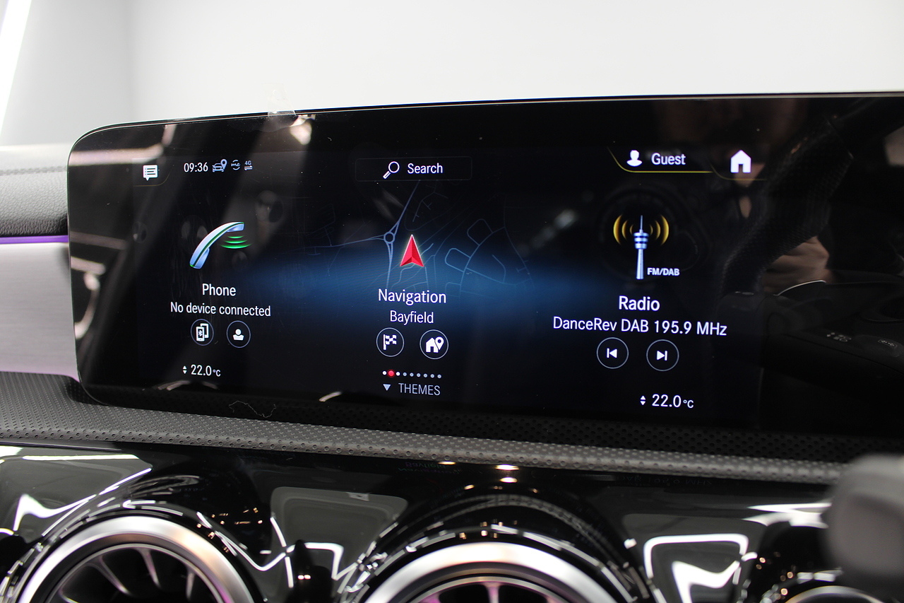 The interior comes trimmed with the beautiful heated AMG sport seats trimmed in black leather with brushed aluminium dash trims, and plenty of tech with a large double display screen with satellite navigation, DAB radio, bluetooth telephone and media, cruise control, rear parking camera and virtual cockpit display.