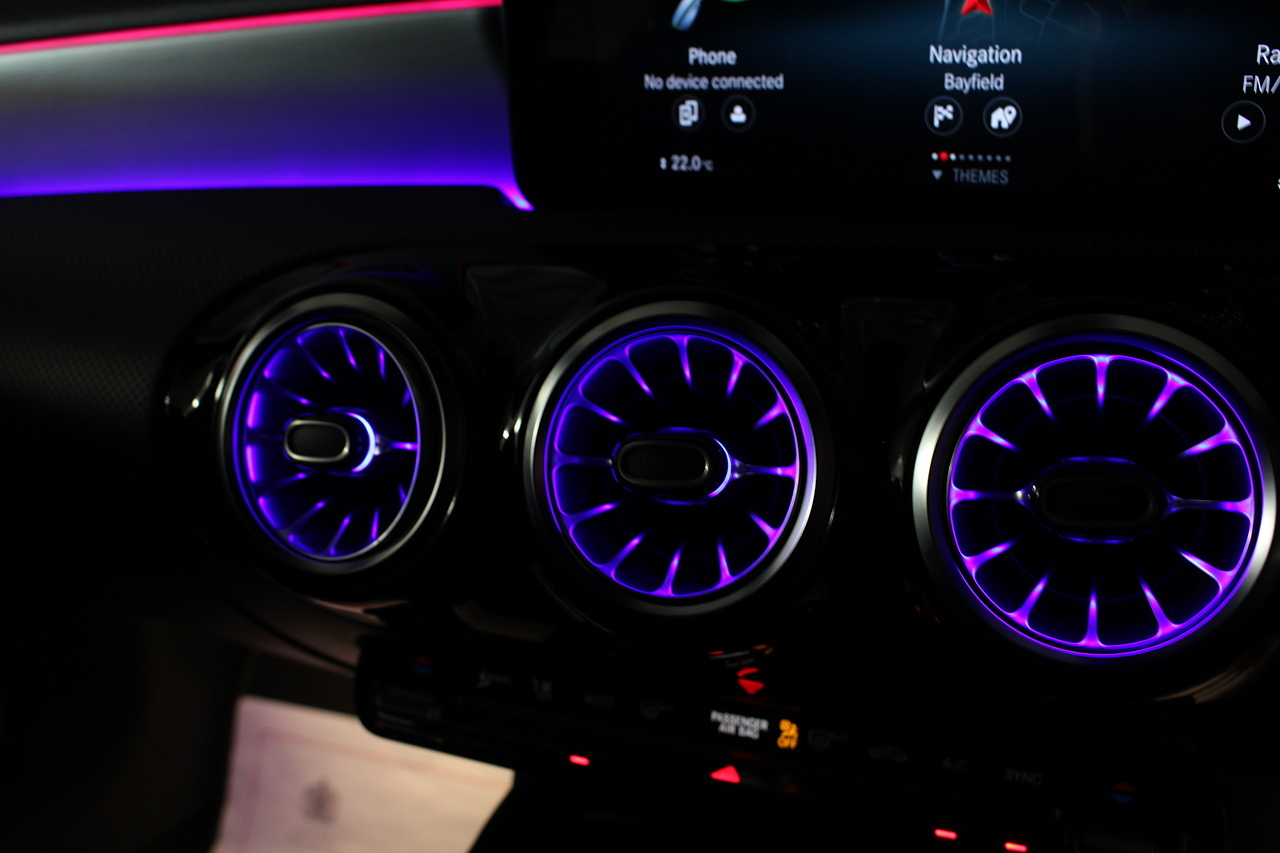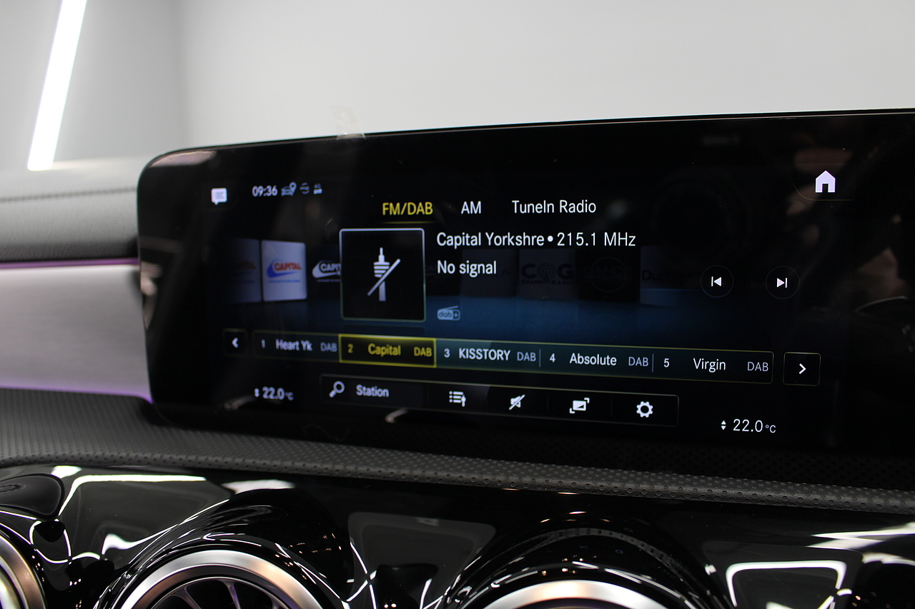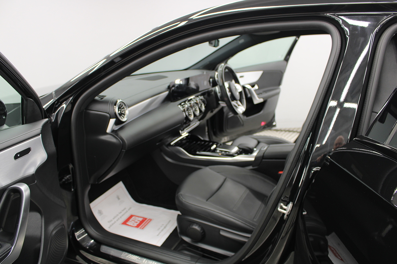 The interior comes trimmed with the beautiful heated AMG sport seats trimmed in black leather with brushed aluminium dash trims, and plenty of tech with a large double display screen with satellite navigation, DAB radio, bluetooth telephone and media, cruise control, rear parking camera and virtual cockpit display.