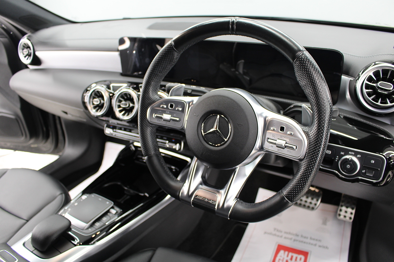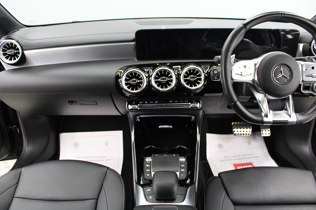 This is our fantastic 2021 Mercedes Benz AMG A35 Premium, this is a beautiful example, having covered only 23,000 miles by 1 owner. This A35 AMG comes equipped with the 2.0 litre turbo charged petrol engine producing an excellent 302 bhp coupled with the 4matic all wheel drive system, making this Mercedes a proper hot-hatch with 0-60 in 4.7 and limited to 155 mph, all whilst still returning decent MPG figures, It combines hatchback family car practicality with breath-taking performance and looks of a hot hatch, incredible levels of grip and running costs which are fairly low consider the performance this car is capable of.